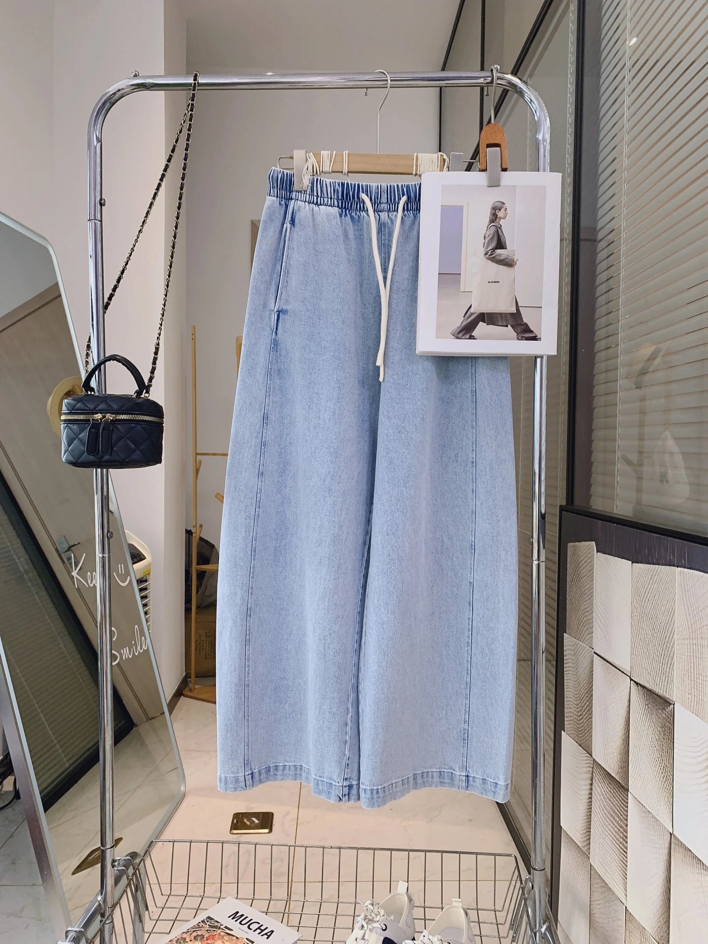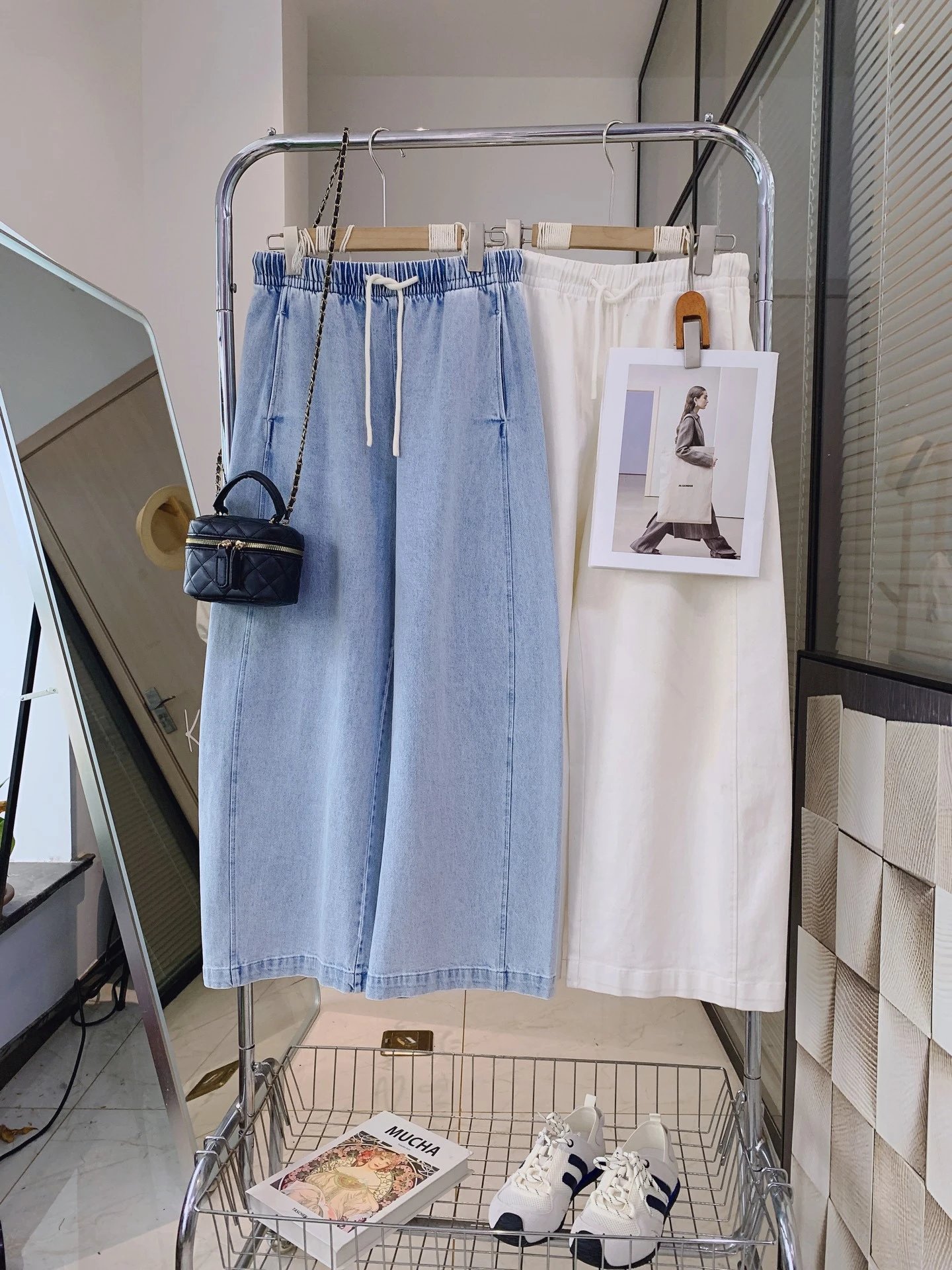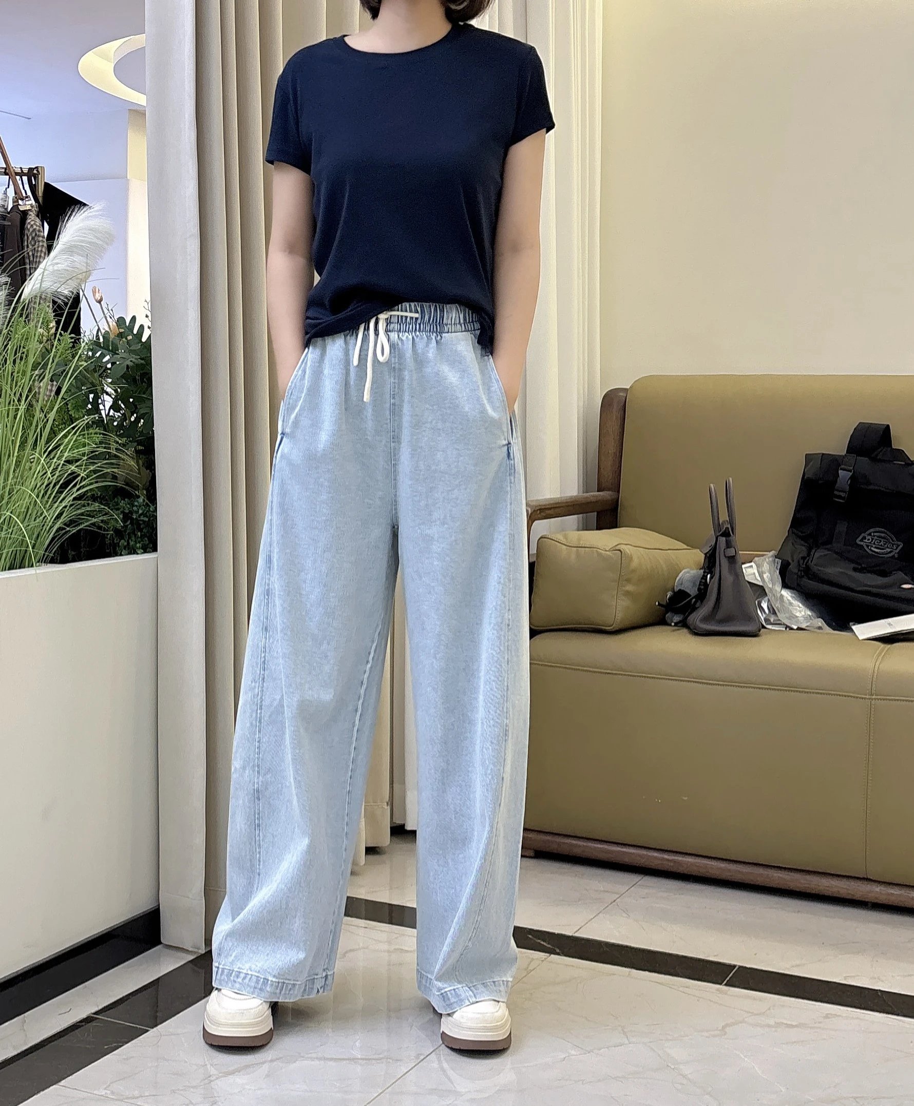 水洗牛仔棉软乎乎的,贴肤巨舒服,垂感绝了,走路都带风!浅蓝清爽、奶白干净,随便搭个白T就超韩系~