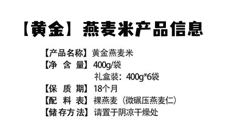 黄金燕麦米,6袋组合,国家地理标志产品,0色素,高膳食纤维,健康粗粮,原生美食M