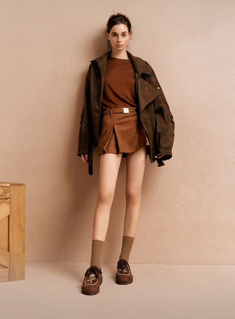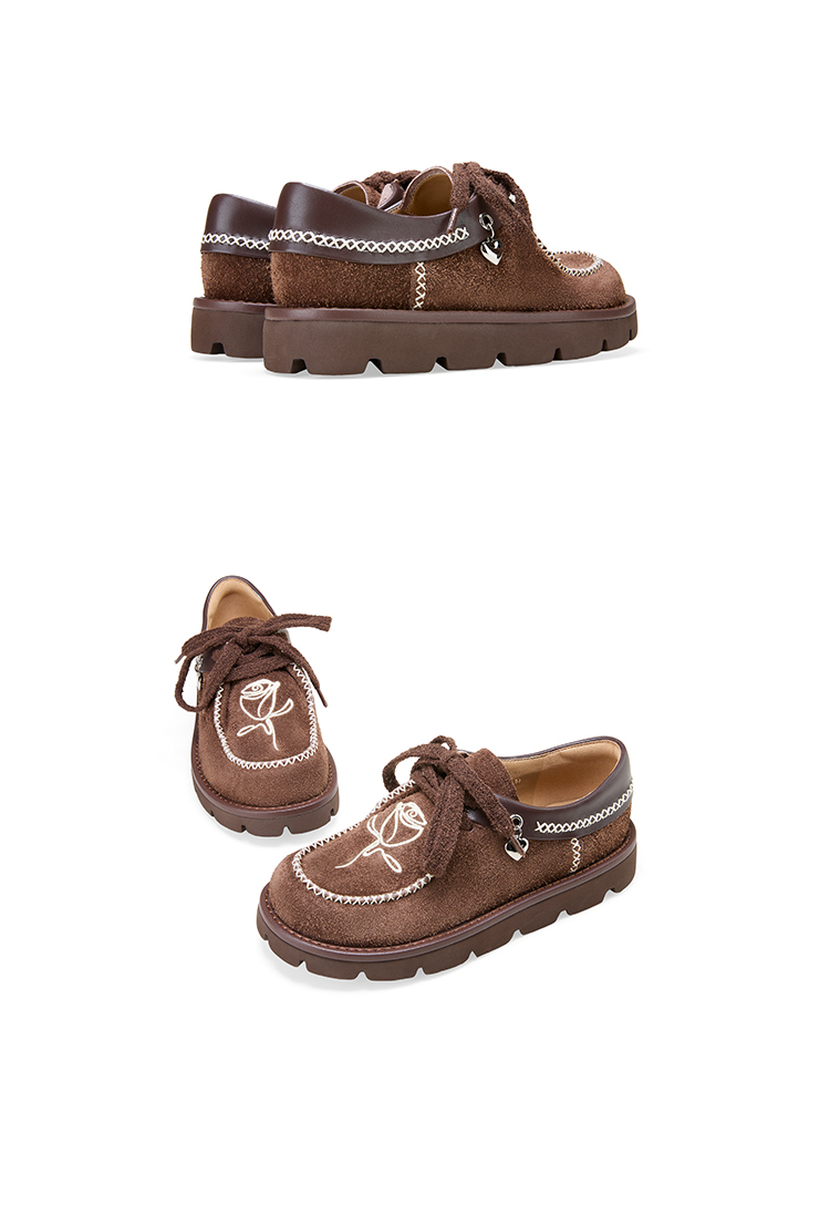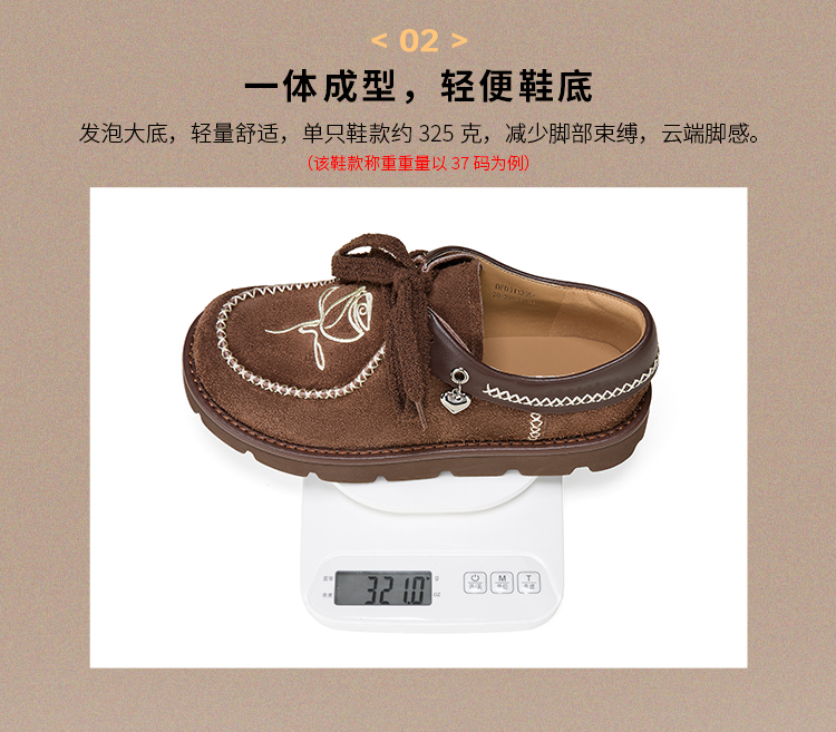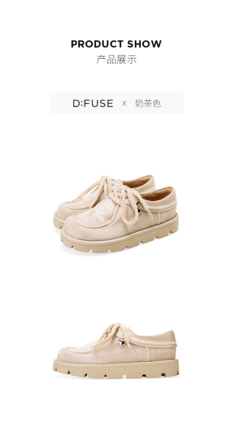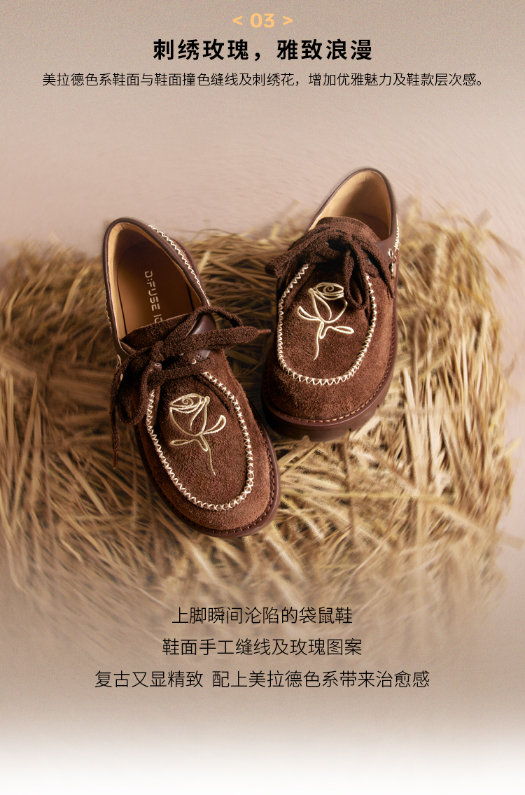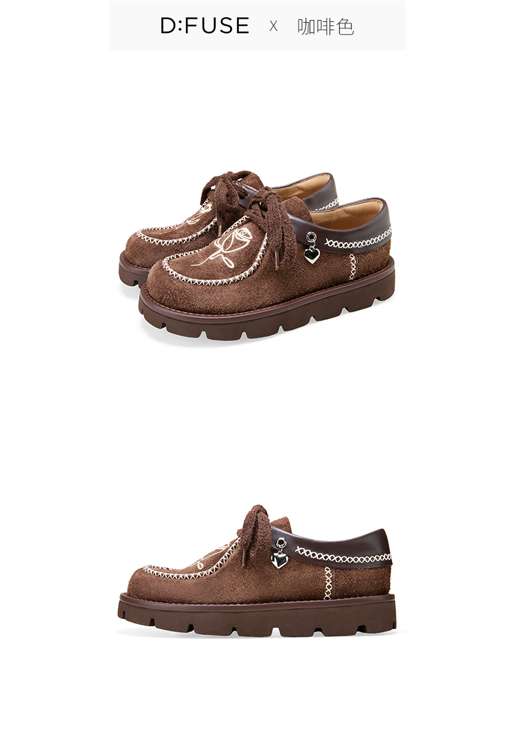 Dfuse迪芙斯2025秋季新款复古休闲乐福鞋玫瑰花心形扣系带袋鼠鞋DFD3112054