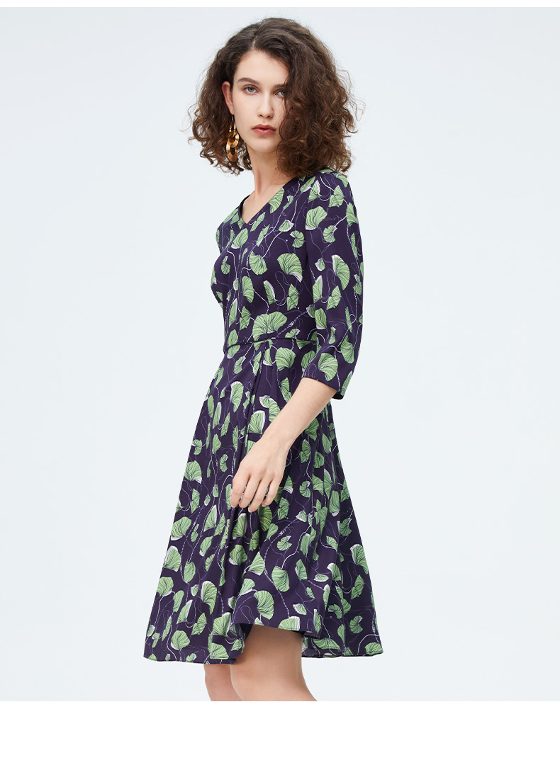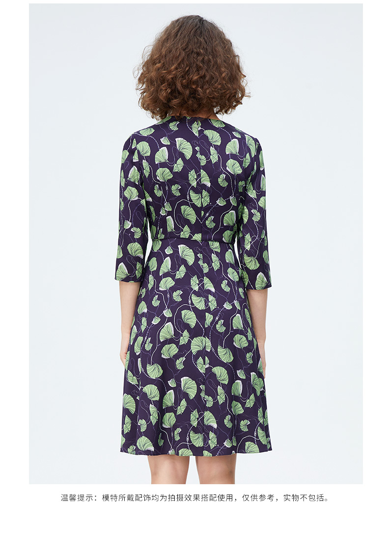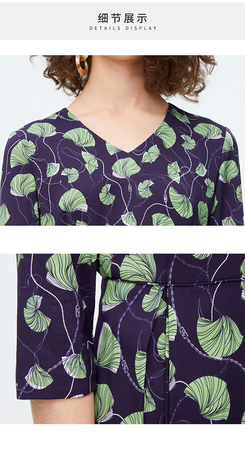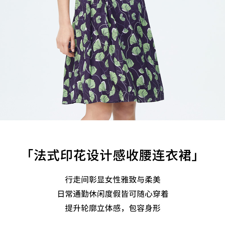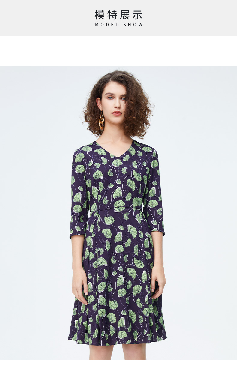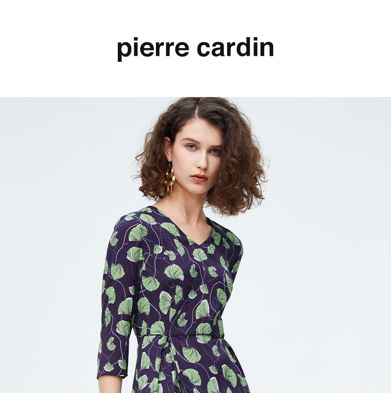 皮尔卡丹女装新款清新淡雅印花修身连衣裙P4125E4030G3