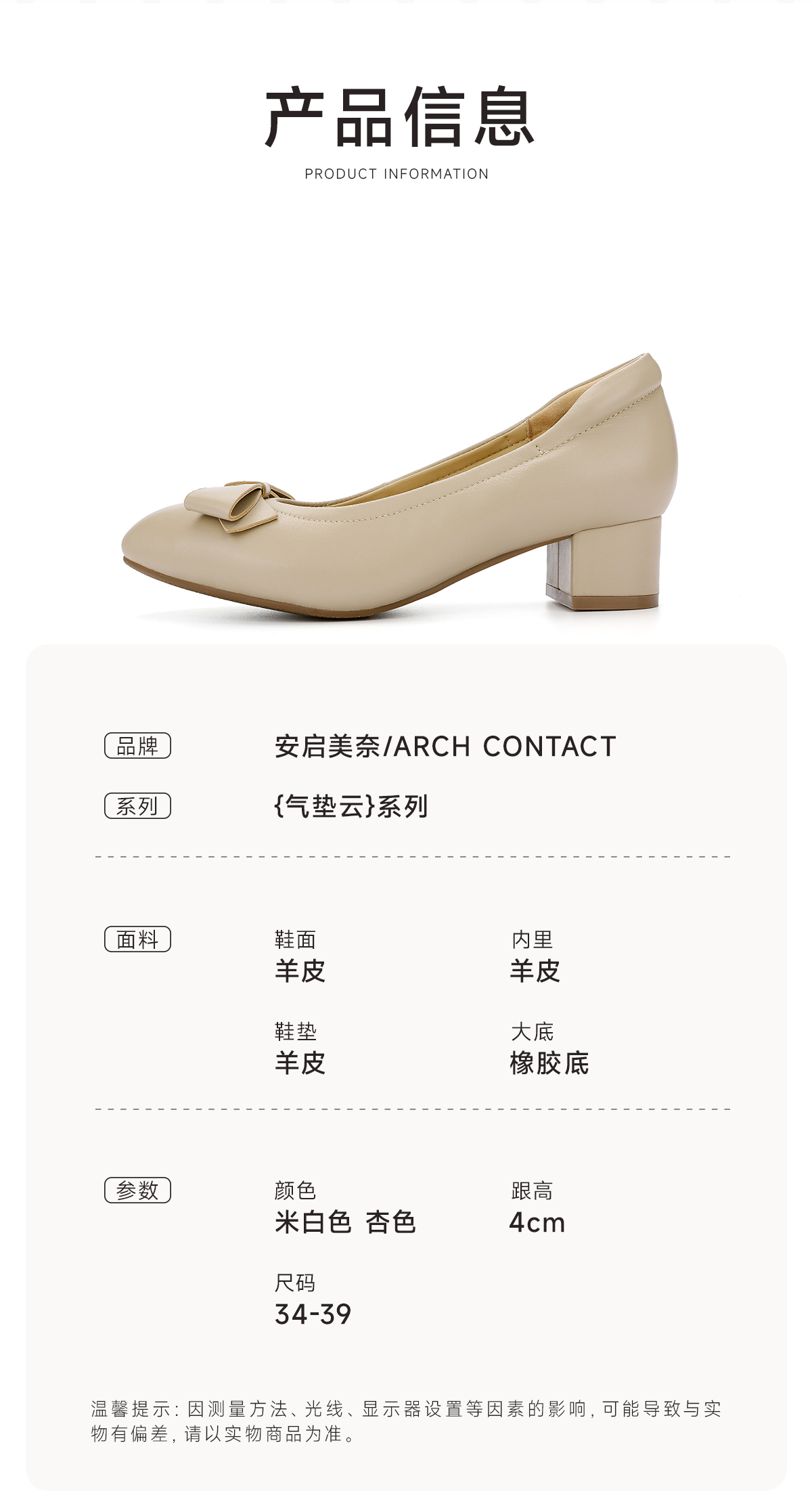 【焕新季】【预售15天】ARCH CONTACT安启美奈蝴蝶结粗跟浅口百搭通勤不累脚女单鞋53121