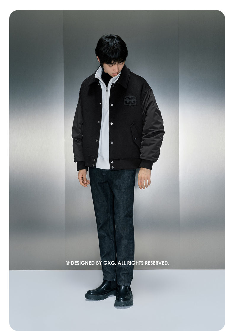 GXG男装 黑色落肩宽松翻领夹克 冬季热卖GEX12127594