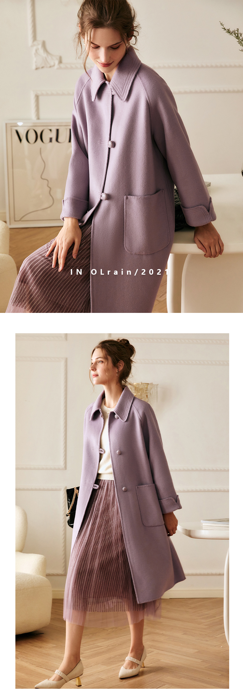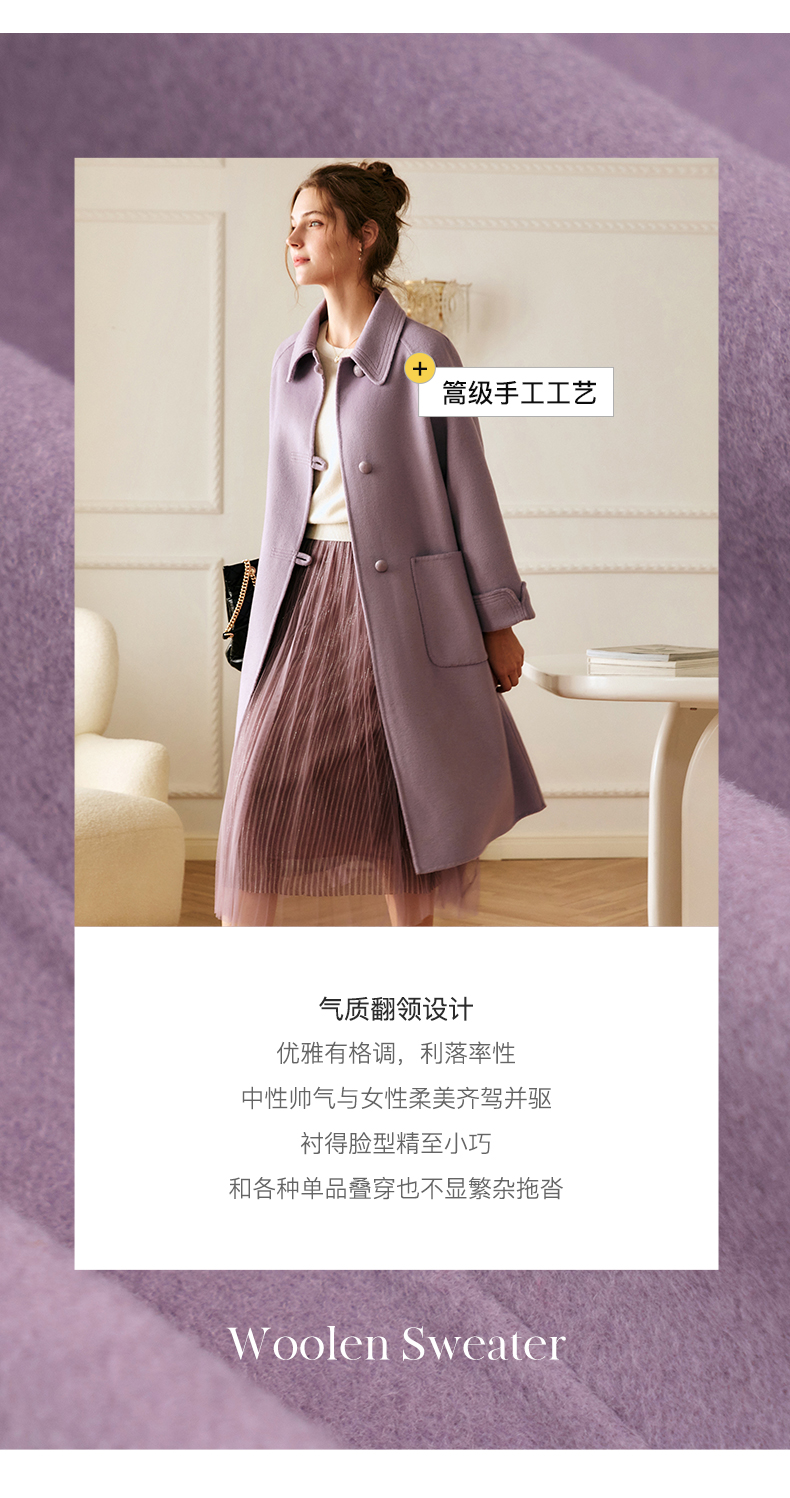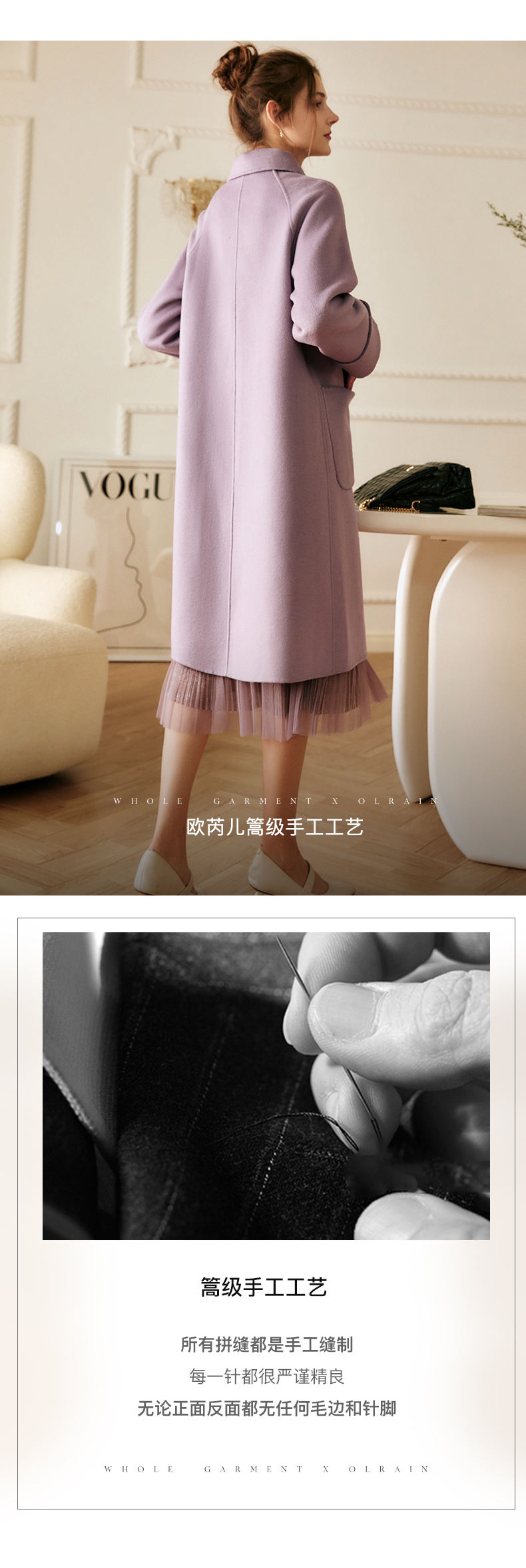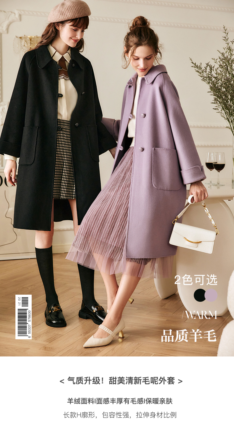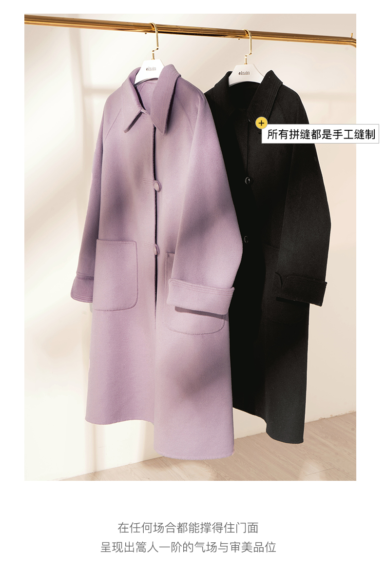 欧芮儿中长双面毛呢外套女冬季新款2021宽松显瘦时尚百搭羊绒大衣