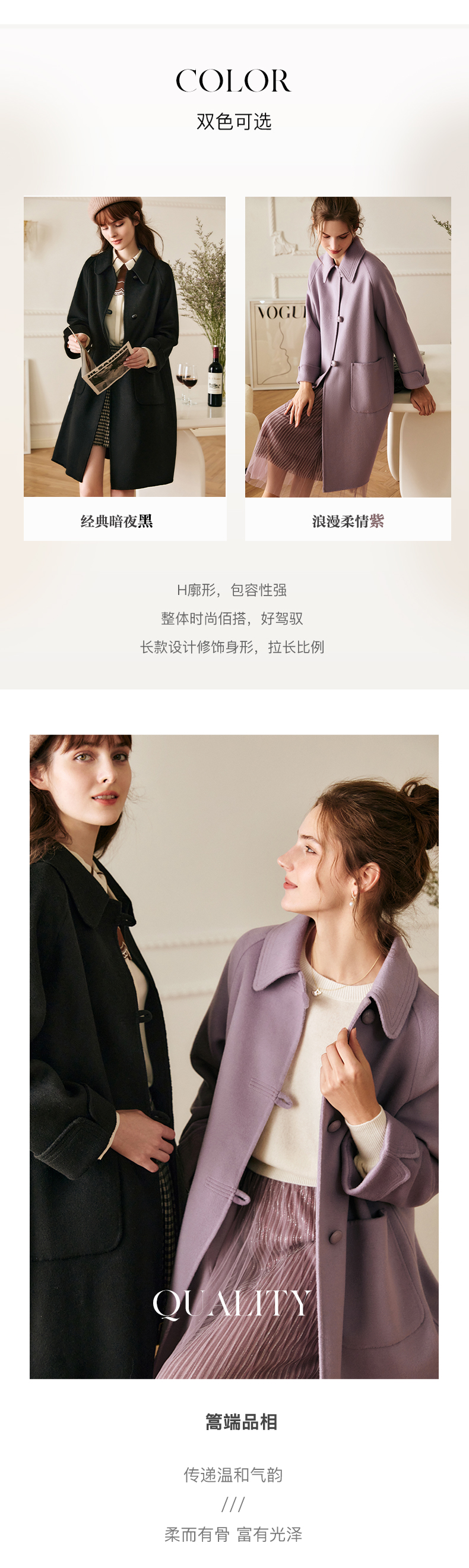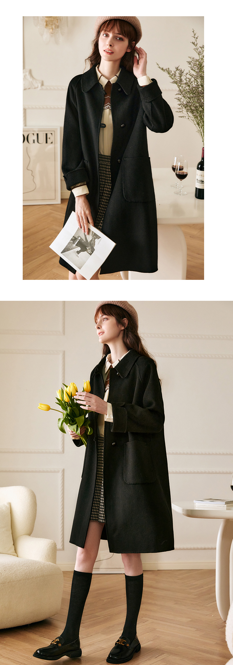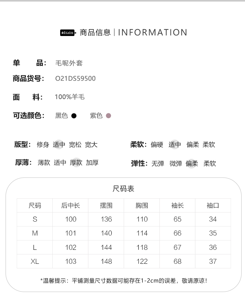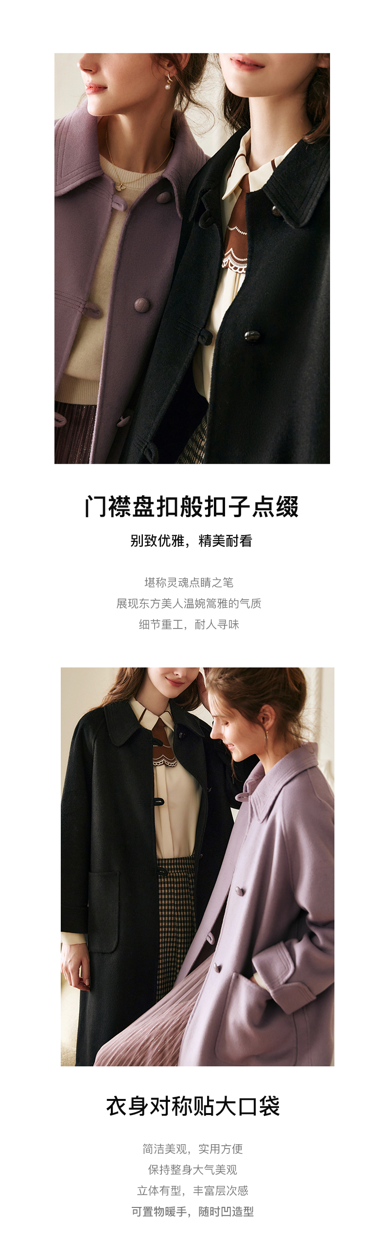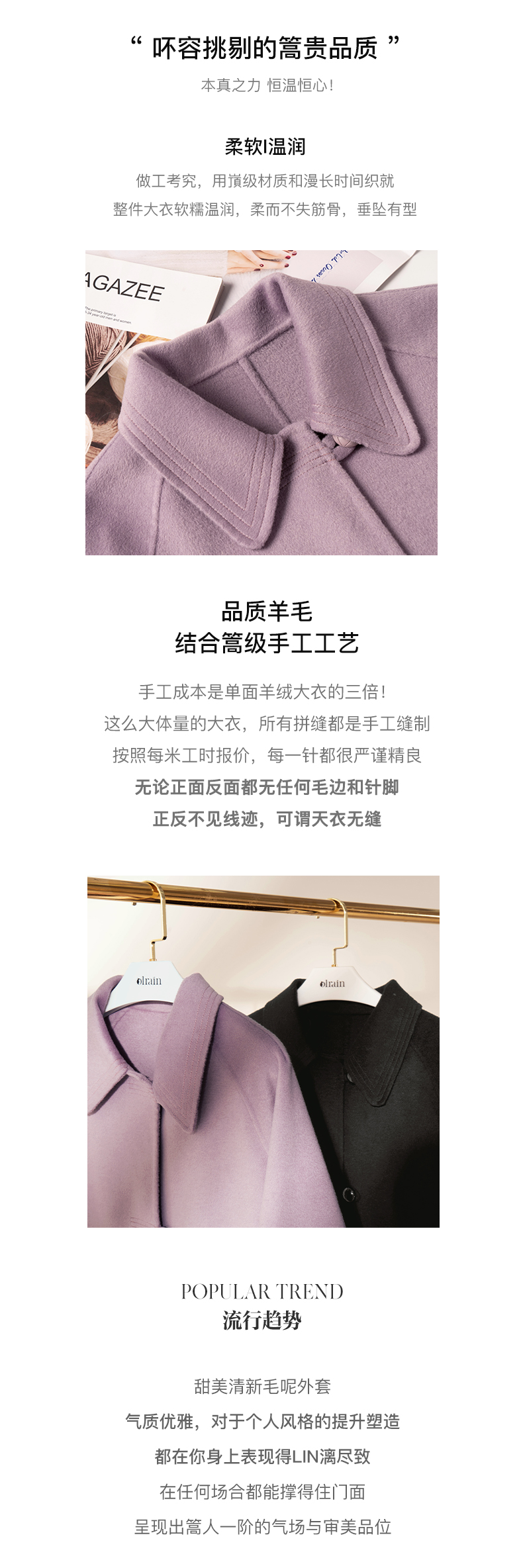 欧芮儿中长双面毛呢外套女冬季新款2021宽松显瘦时尚百搭羊绒大衣