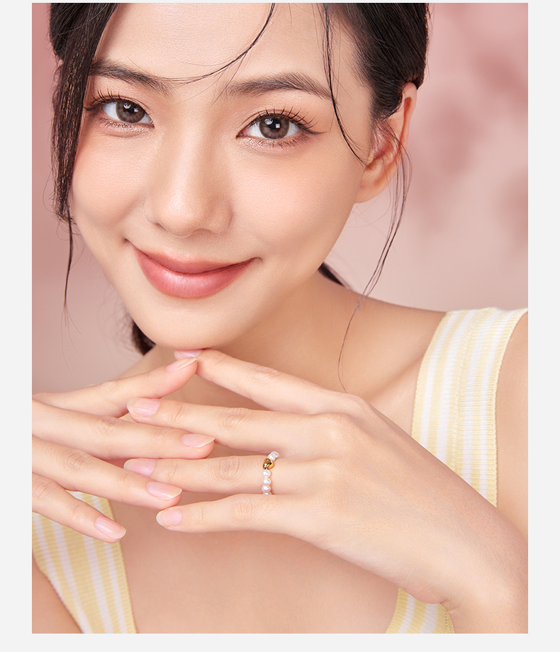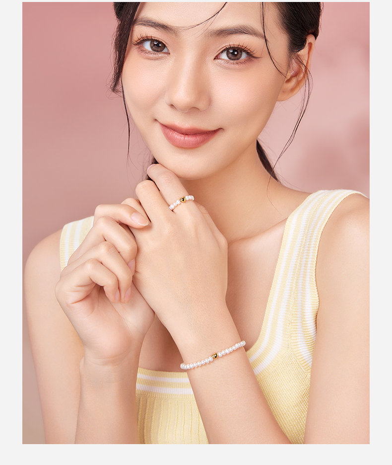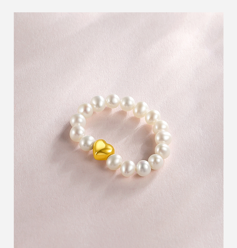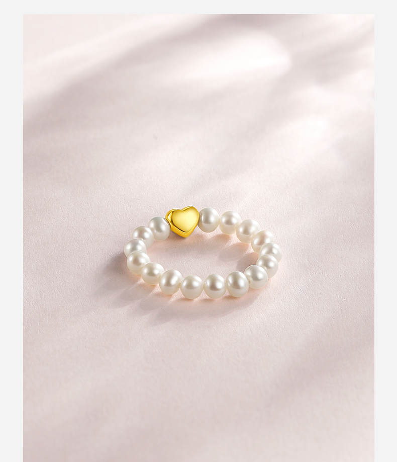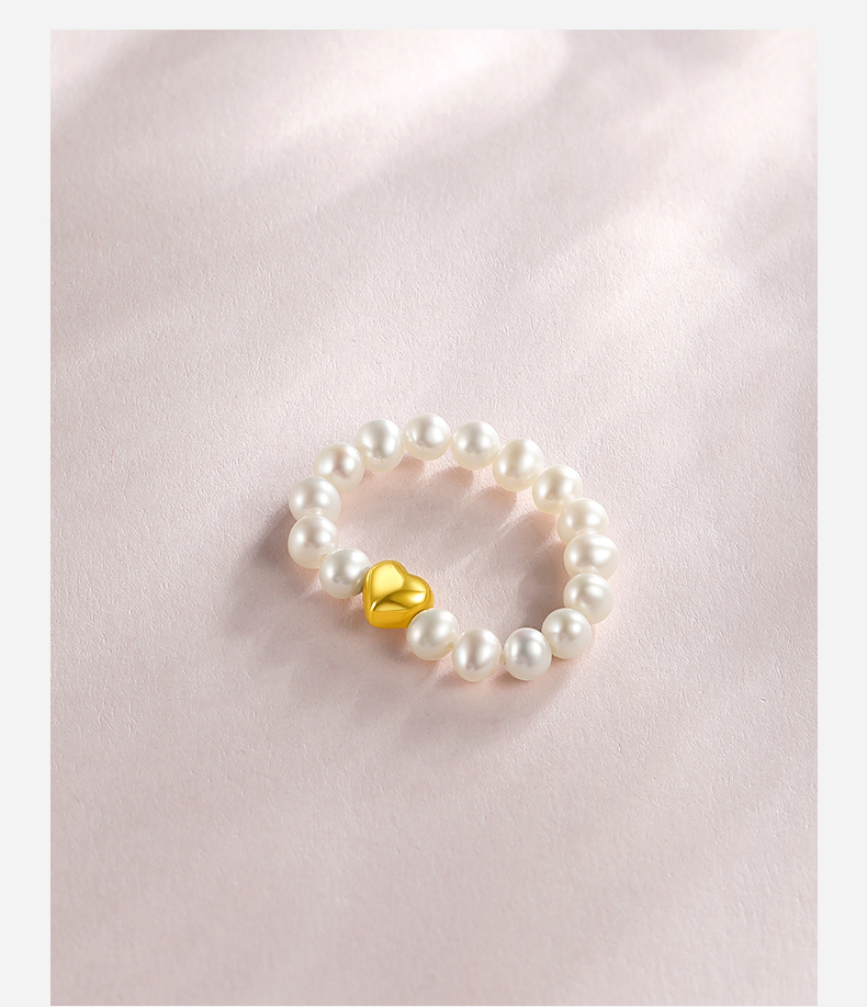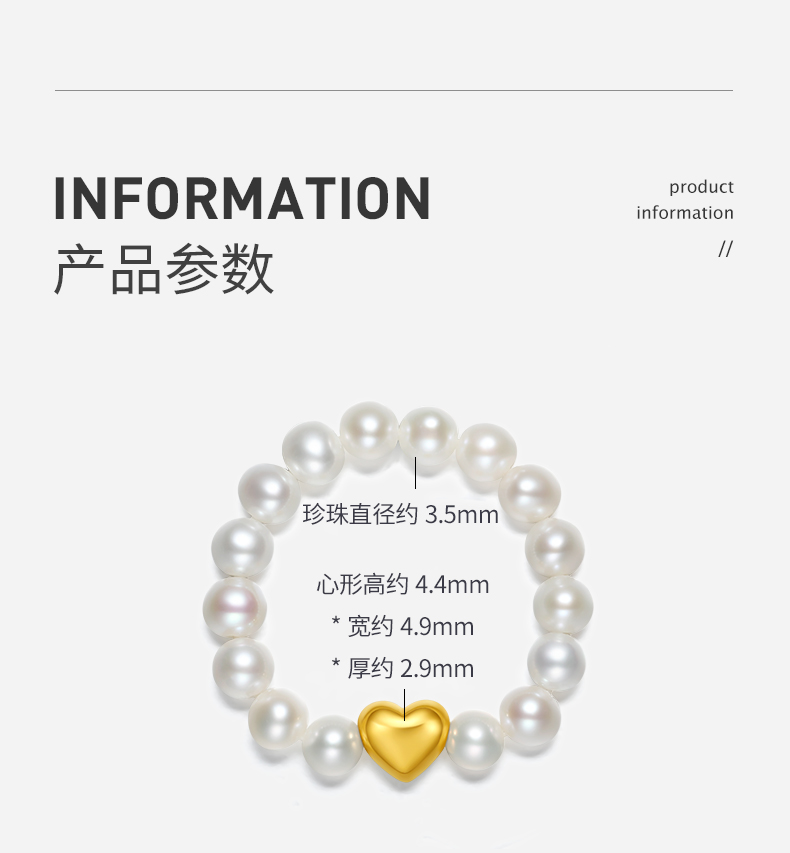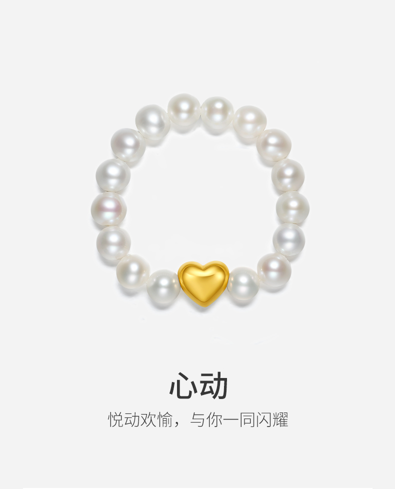 周六福4D黄18K珍珠戒指 彩金淡水珍珠优雅爱心造型时尚可爱送女生