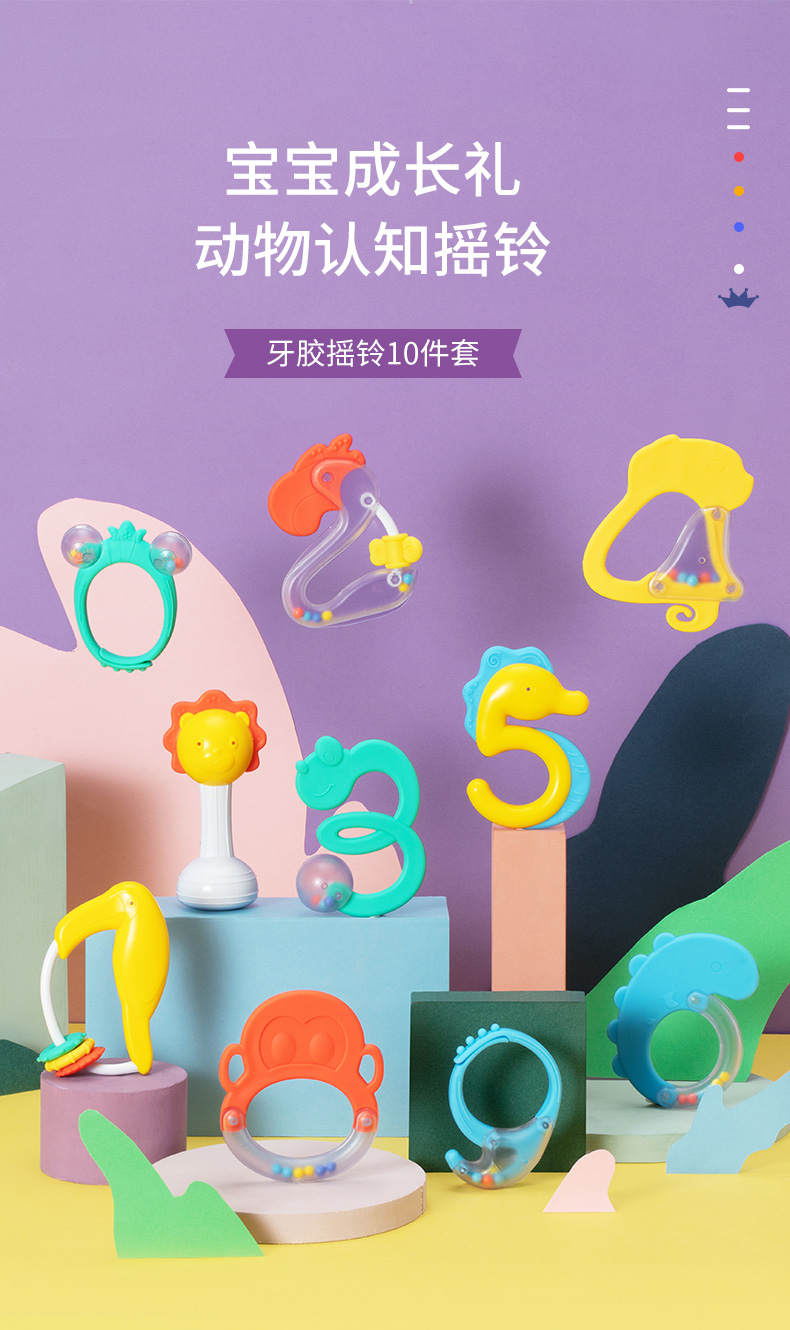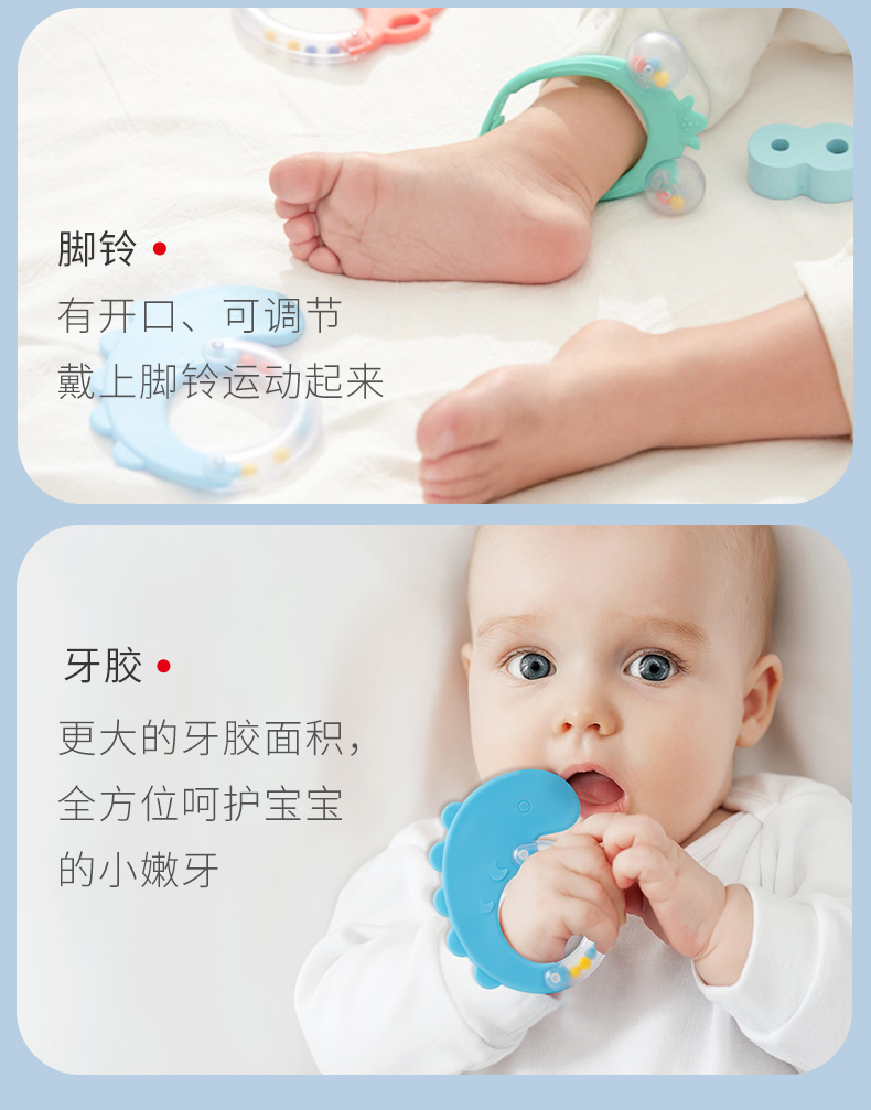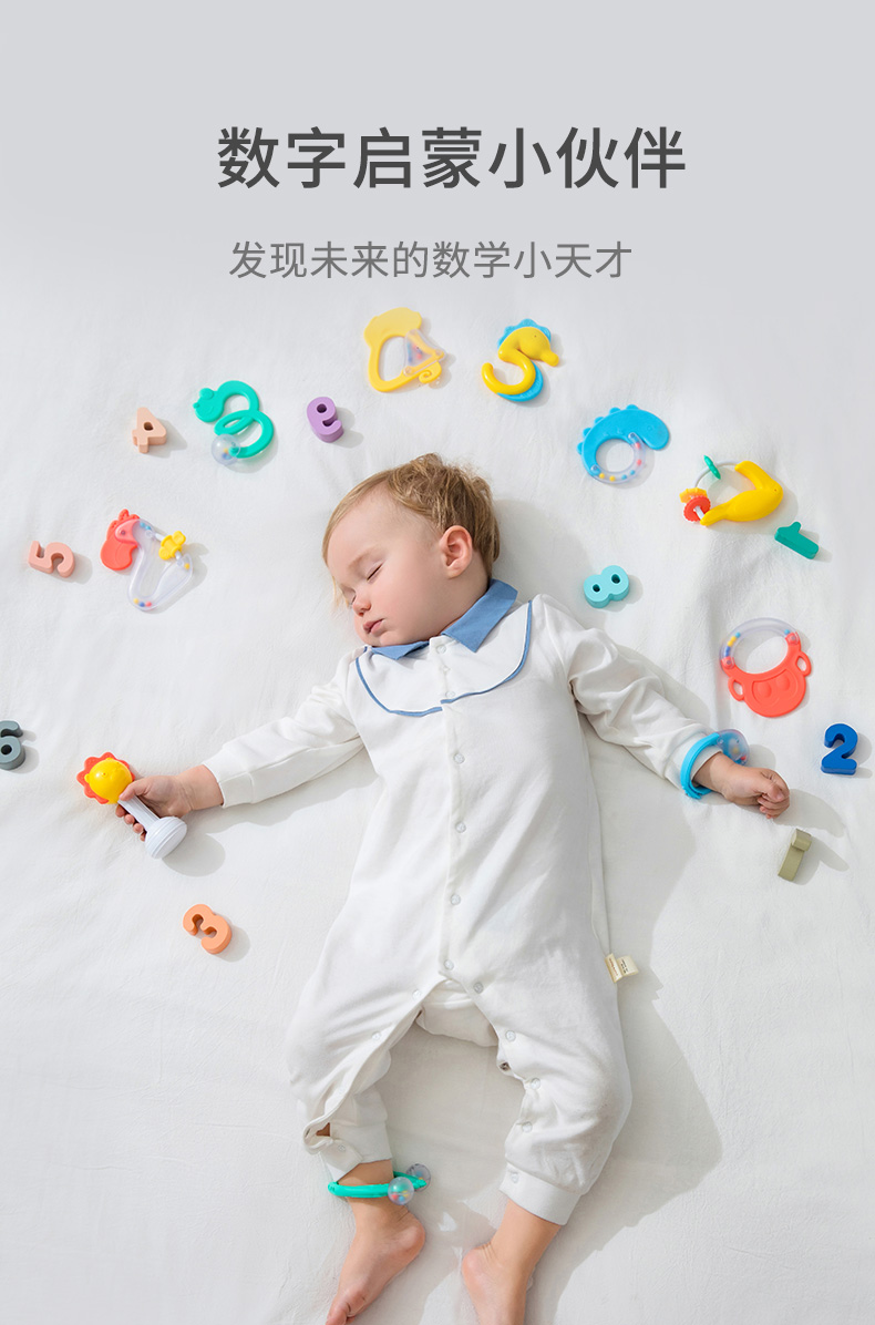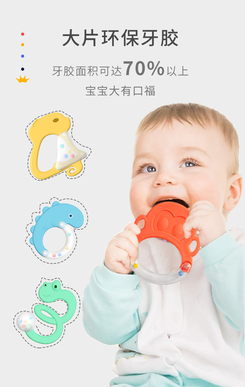 爱萌宝可啃咬婴幼儿水煮牙胶宝摇铃安抚新生创意套装