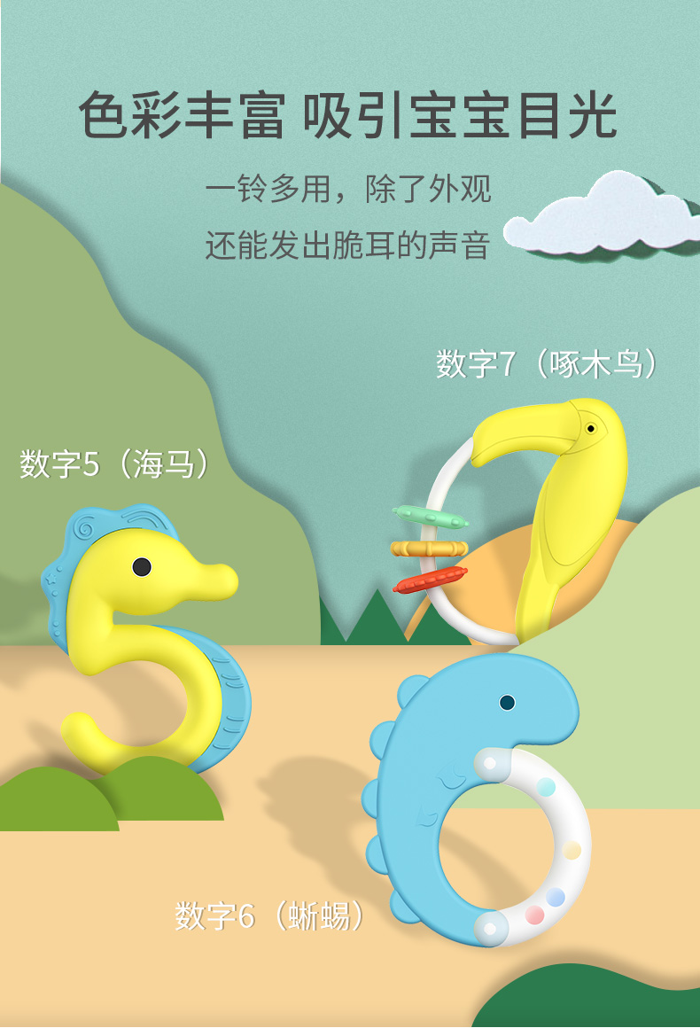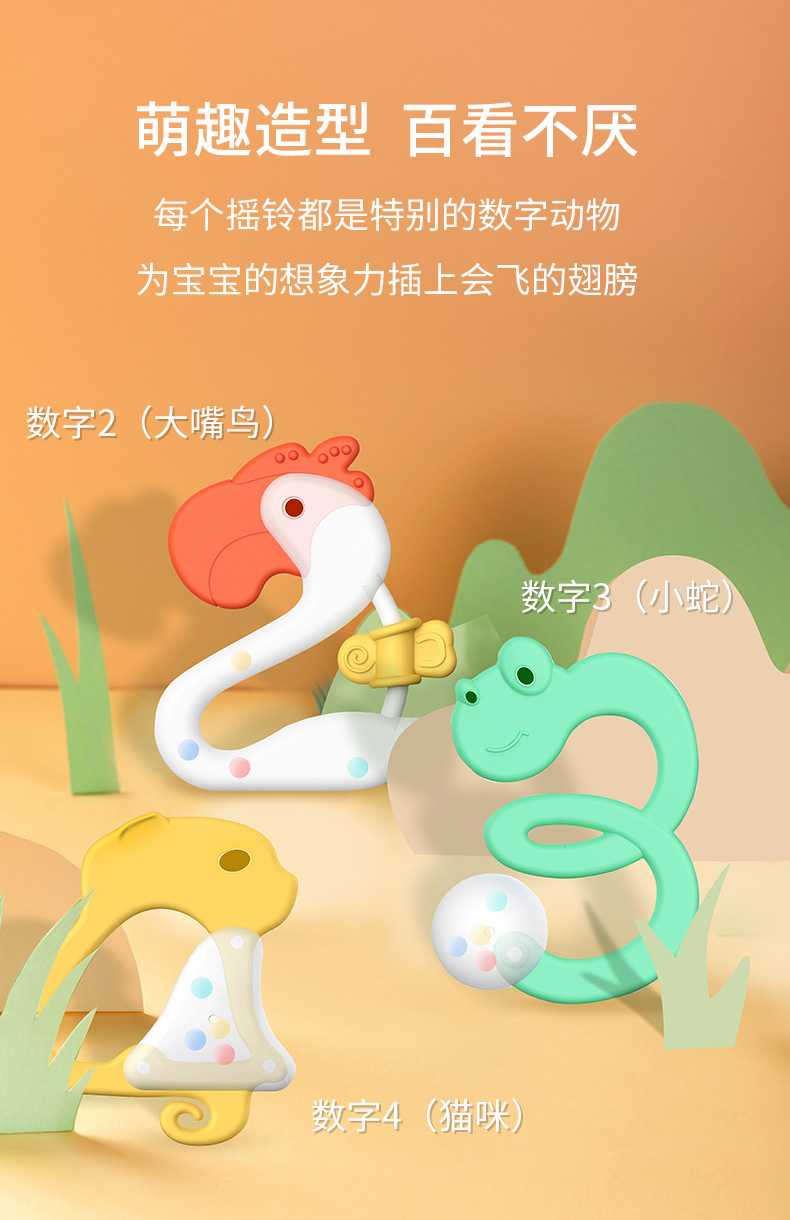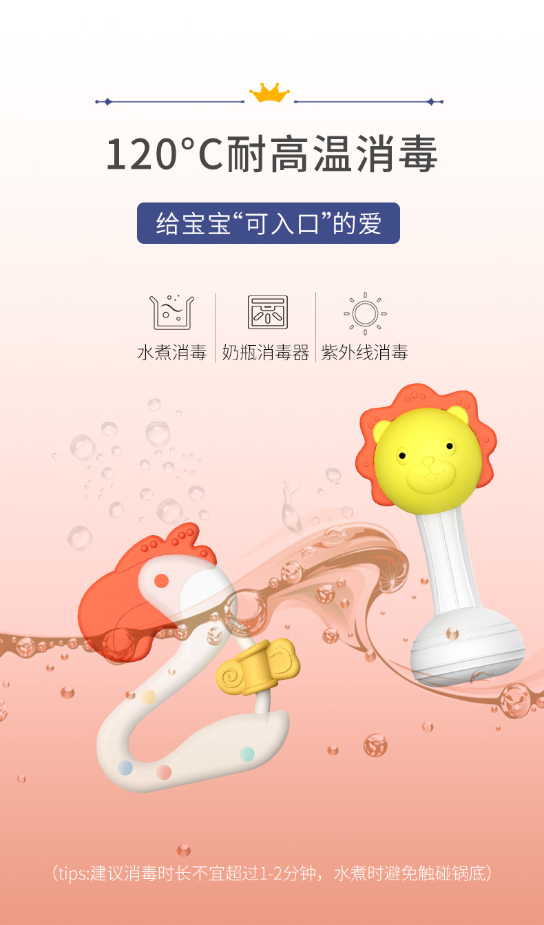 爱萌宝可啃咬婴幼儿水煮牙胶宝摇铃安抚新生创意套装