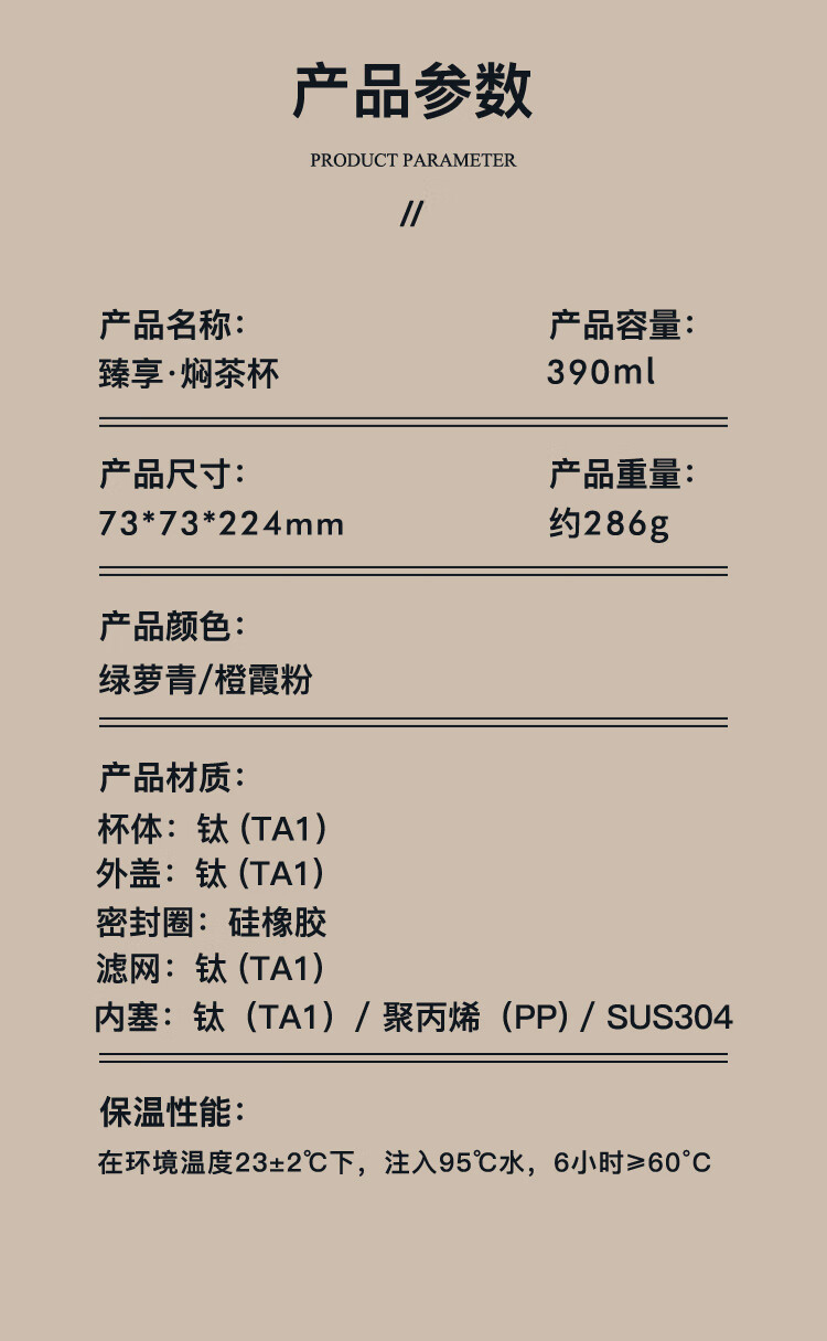 TAIC太可纯钛保温杯焖茶杯钛杯高档茶水分离水杯带杯套礼物送礼
