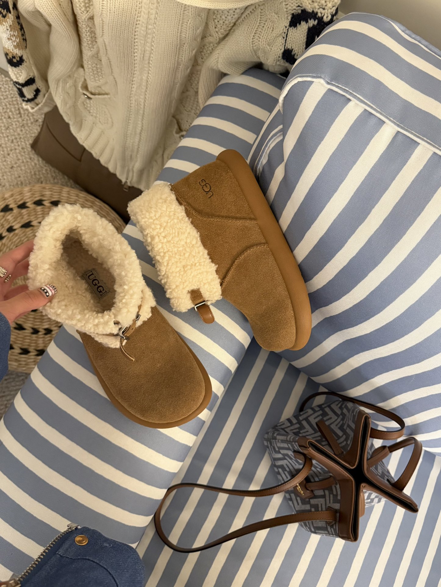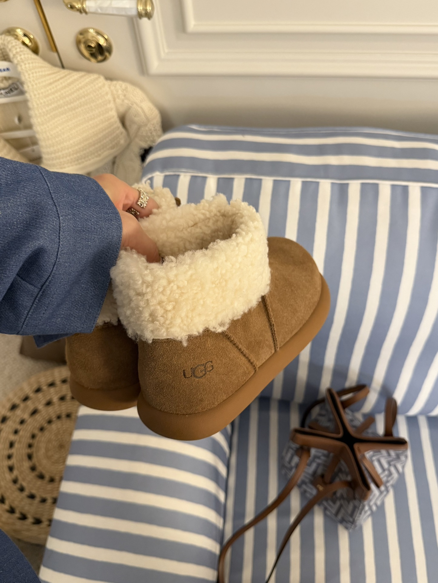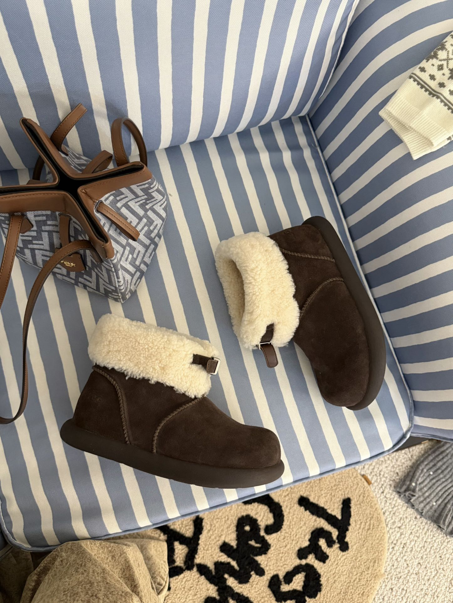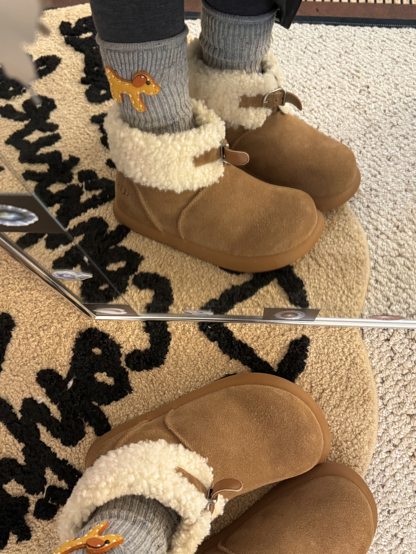 【全球第二好的】UGG羊卷毛扣饰雪地靴 秋冬治愈系搭配 承包你一整个冬天的温柔与暖意 当复古风遇上暖冬刚需,这双扣带雪地靴直接把氛围感拉满! 牛绒鞋面搭配蓬松羊毛领口,自带温柔滤镜