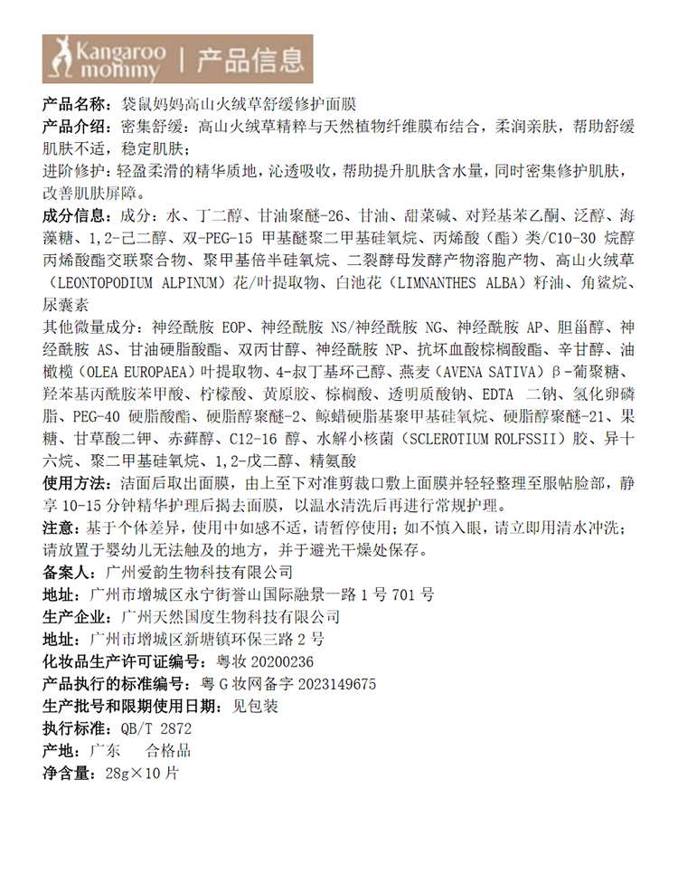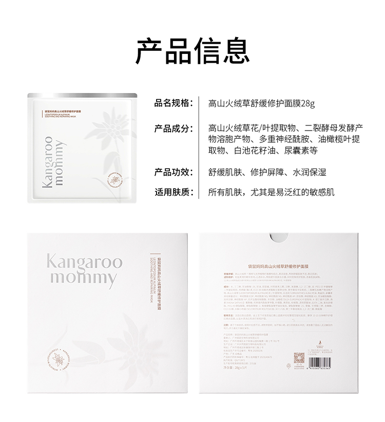 【修护面膜】 敏感泛红肌适用 7天淡红 15min快速舒缓 补水保湿 高山火绒草舒缓修护面膜5片