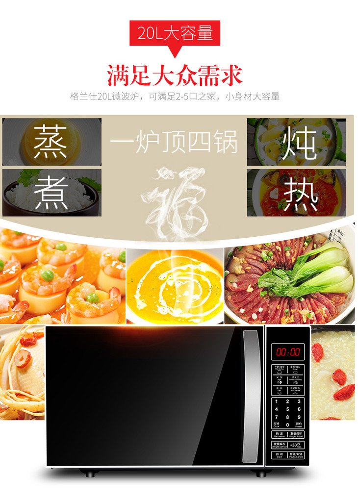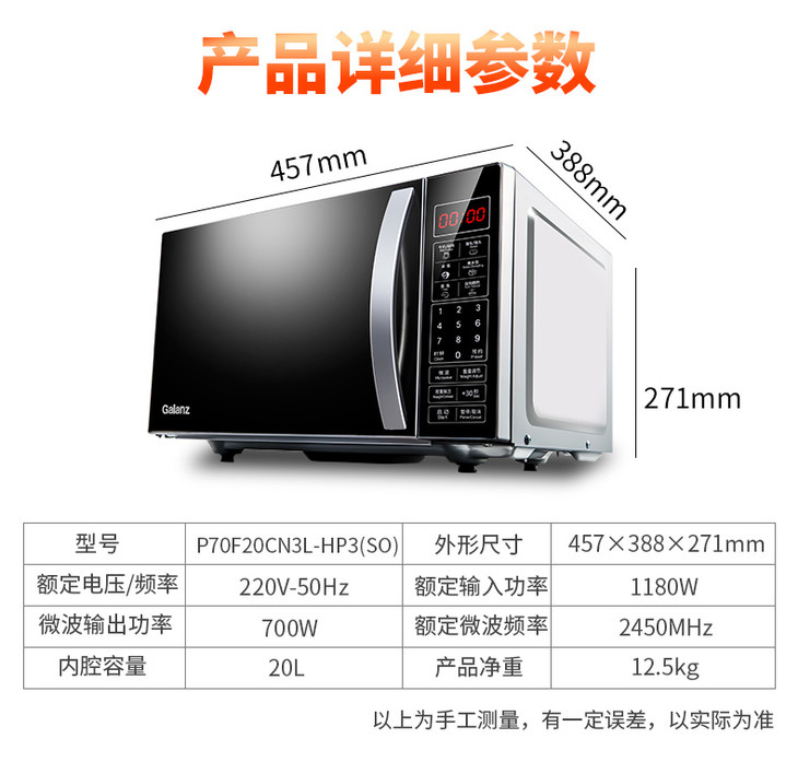格兰仕 微波炉 P70F20CN3L-HP3(S0) 20L 新款平板智能 微电脑式家用 微波炉