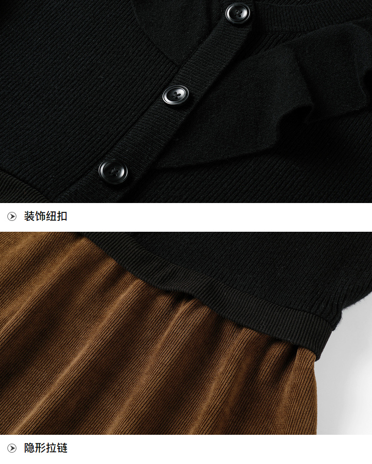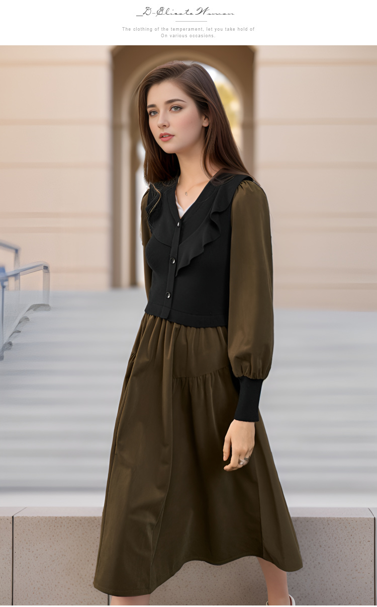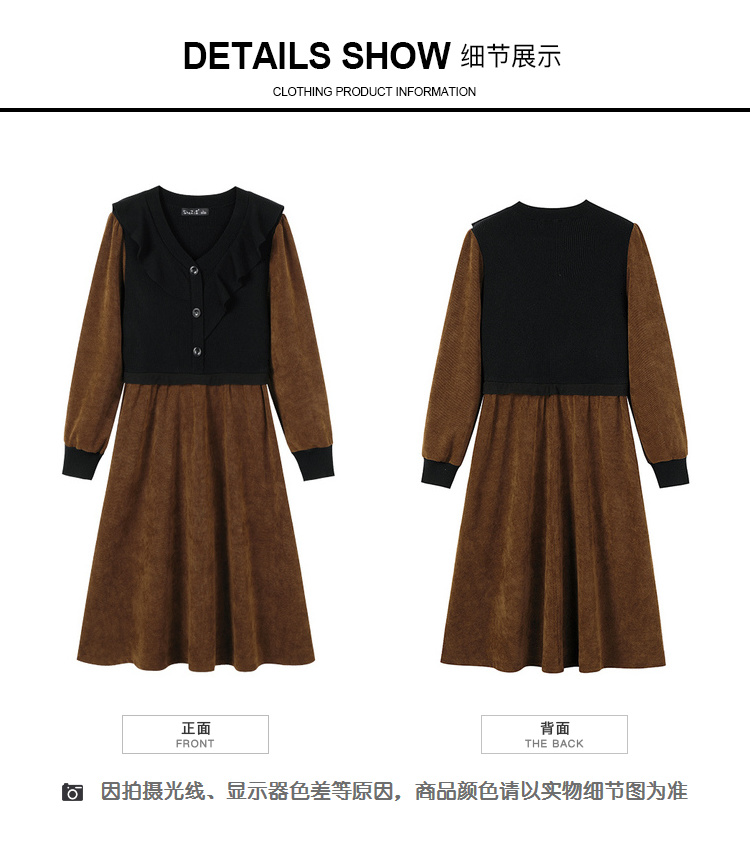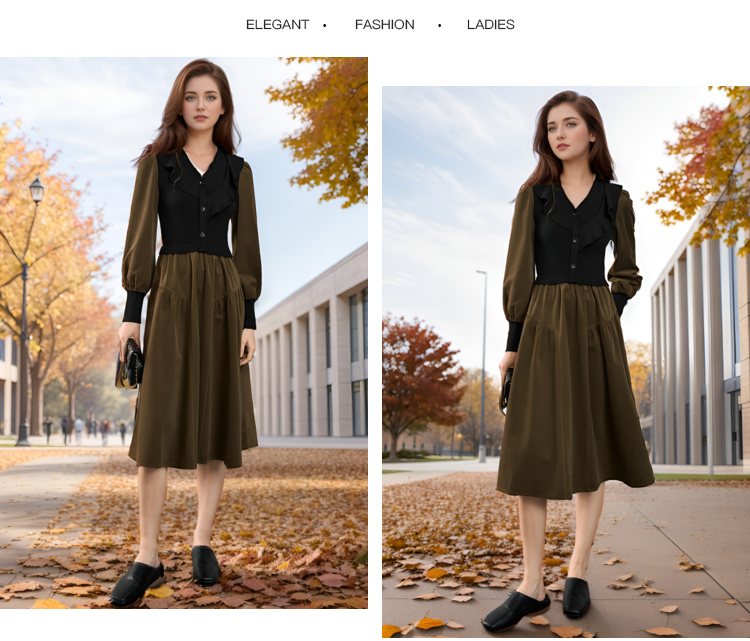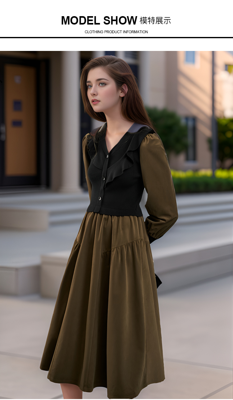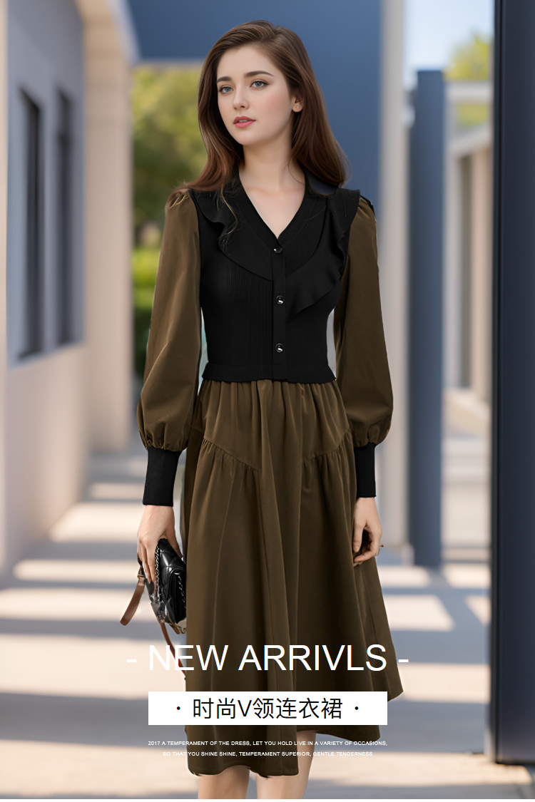 8/22奢姿大码女装2024秋季气质V领裙子胖妹妹时尚荷叶边拼接连衣裙9943855149