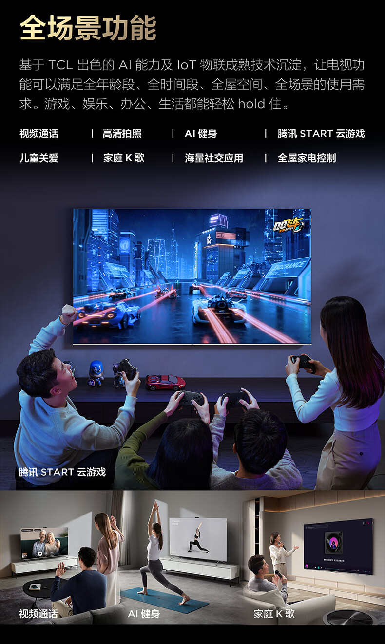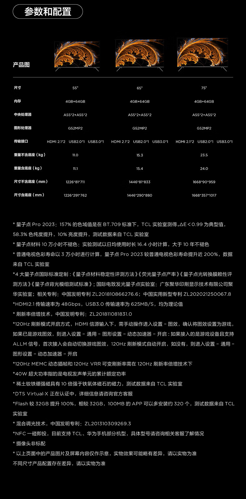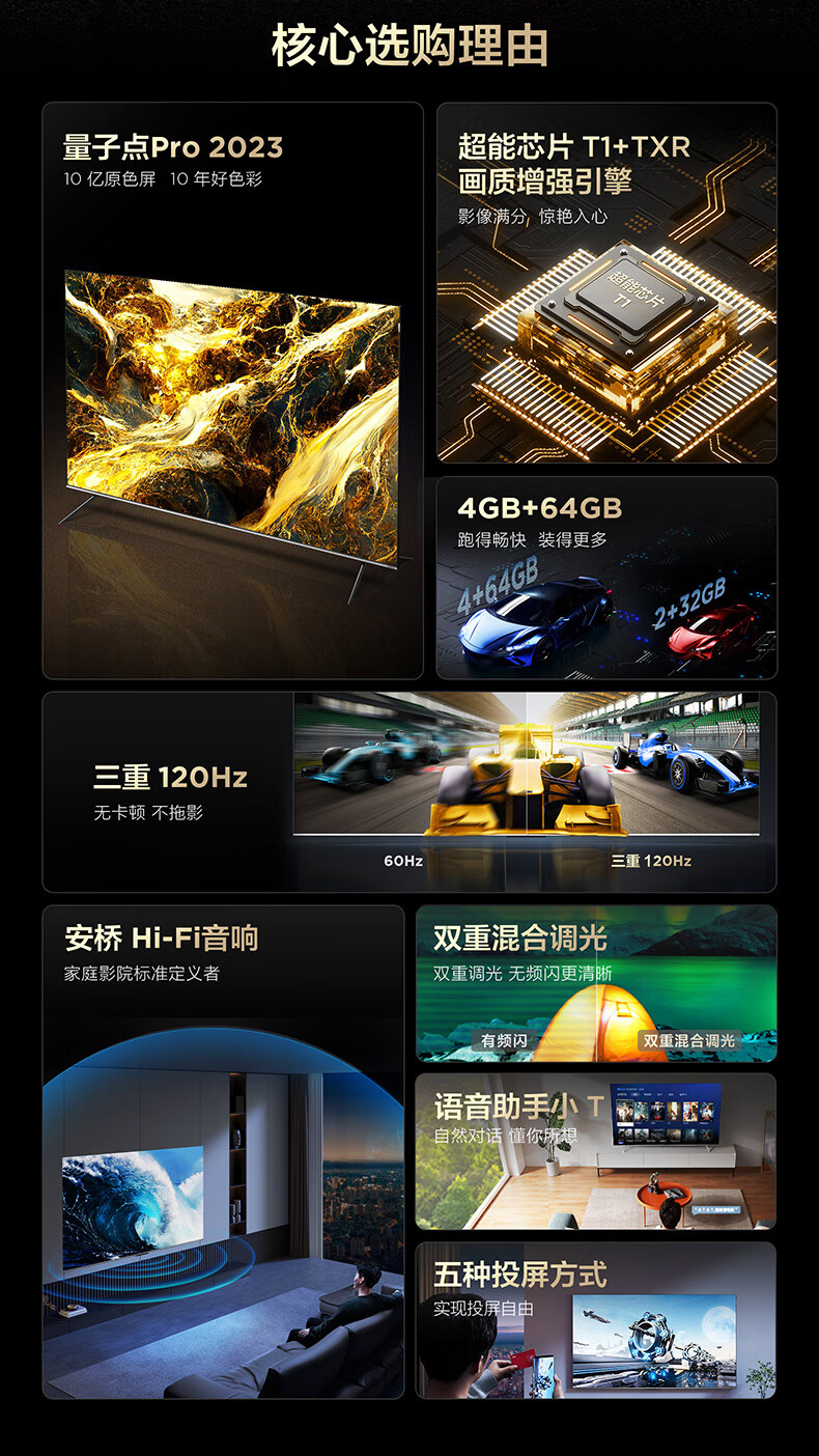 TCL 75P12G 量子点Pro 2023 三重120Hz 安桥Hi-Fi音响 4GB+64GB 杜比视界 莱茵双认证 75英寸