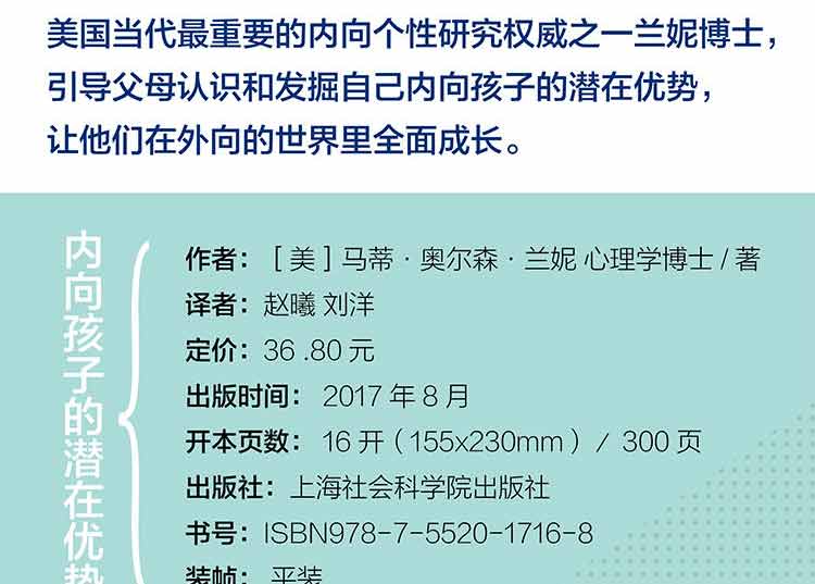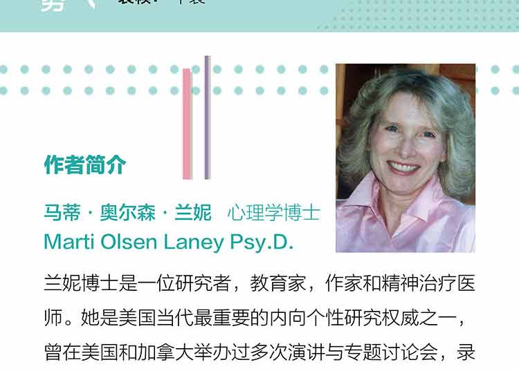 作者简介:马蒂·奥尔森·兰妮 心理学博士( Marti Olsen Laney Psy.D. )
