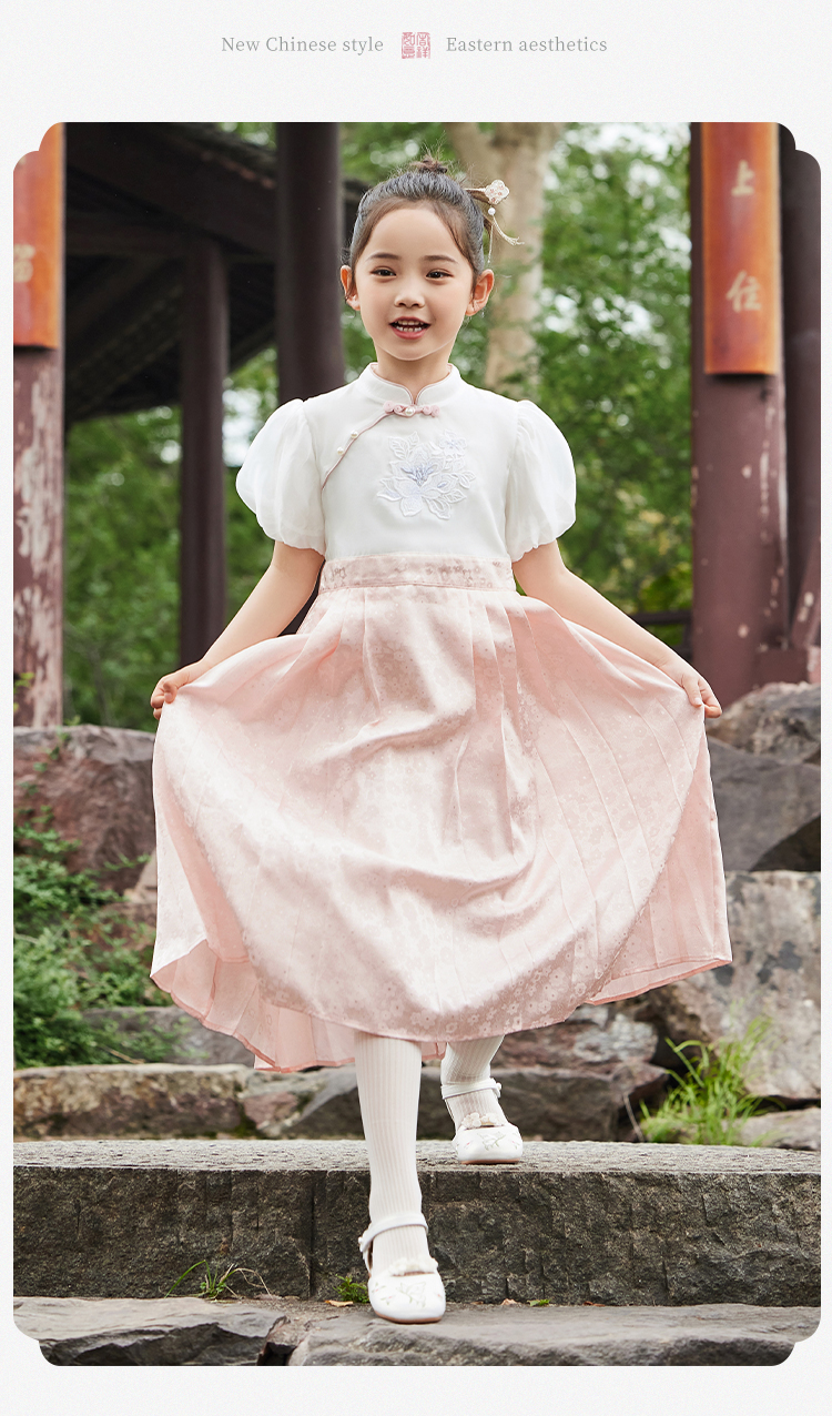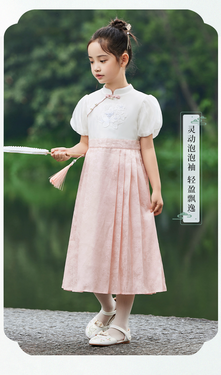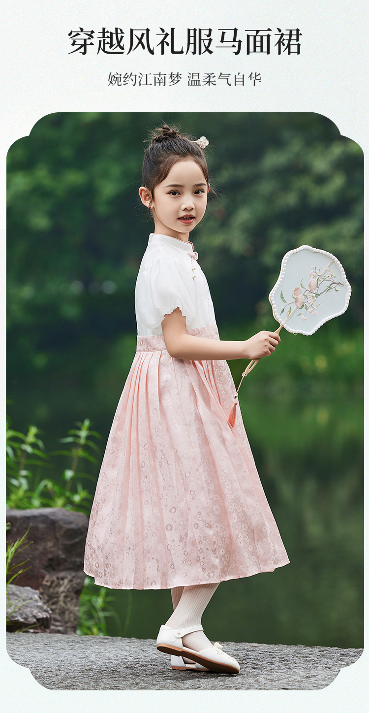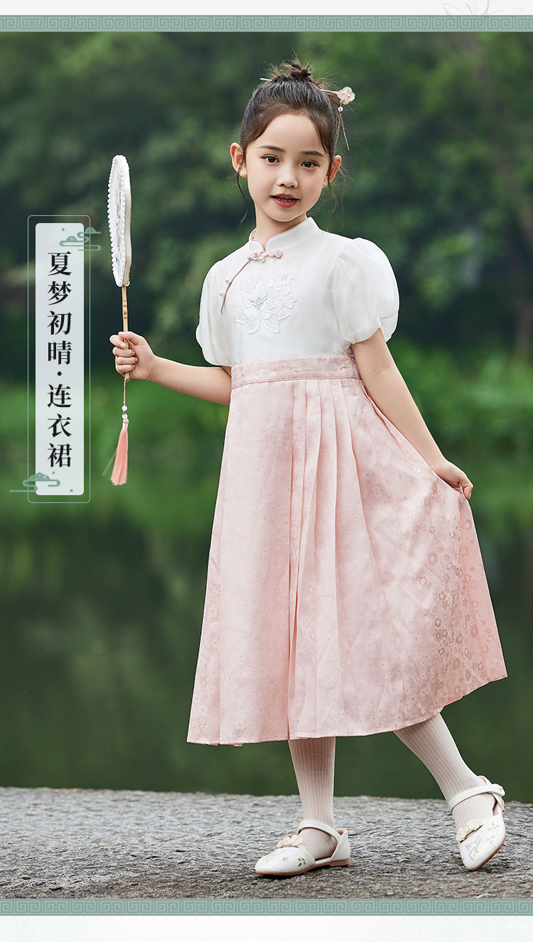 【英氏限时清仓】【改良马面连衣裙】【120-165】女童新中式夏季连衣裙儿童国风复古汉服