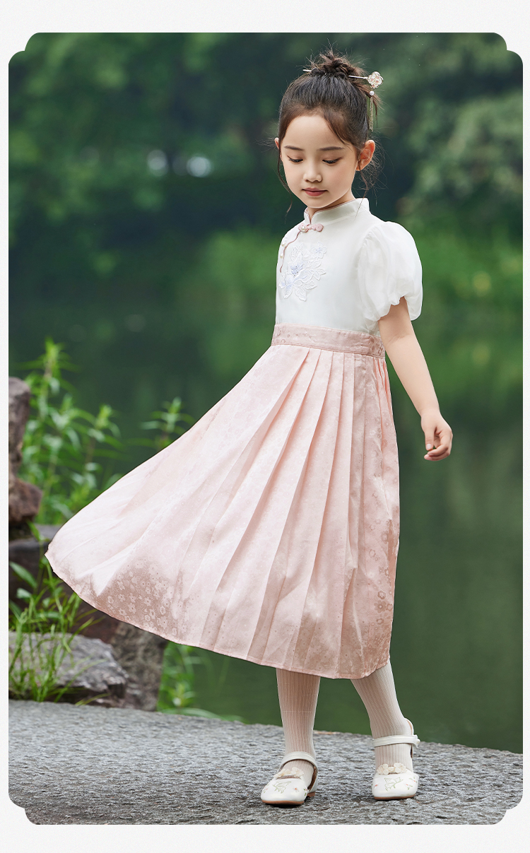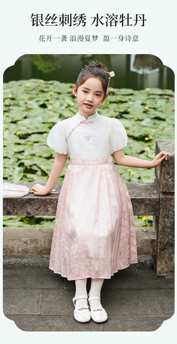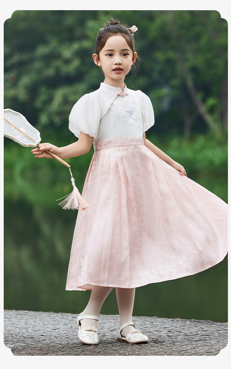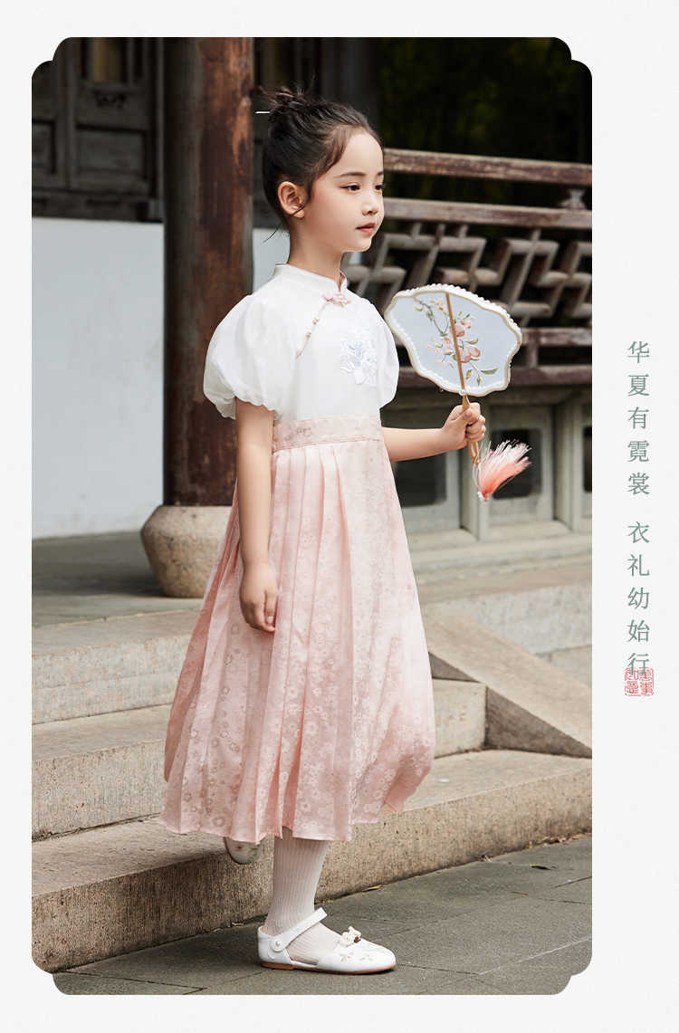 【英氏限时清仓】【改良马面连衣裙】【120-165】女童新中式夏季连衣裙儿童国风复古汉服