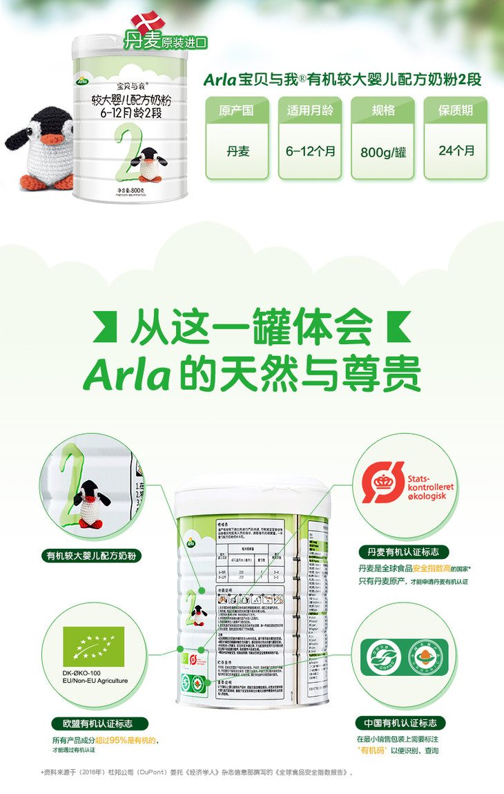 丹麦Arla宝贝与我有机婴儿配方奶粉2段6-12个月800g