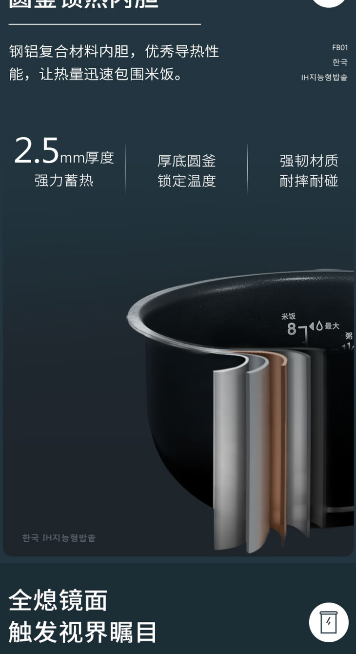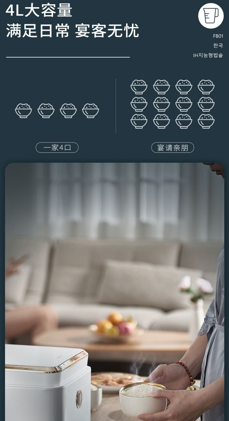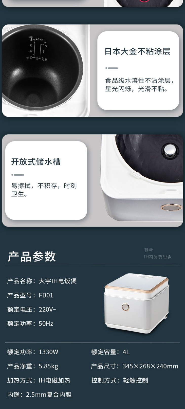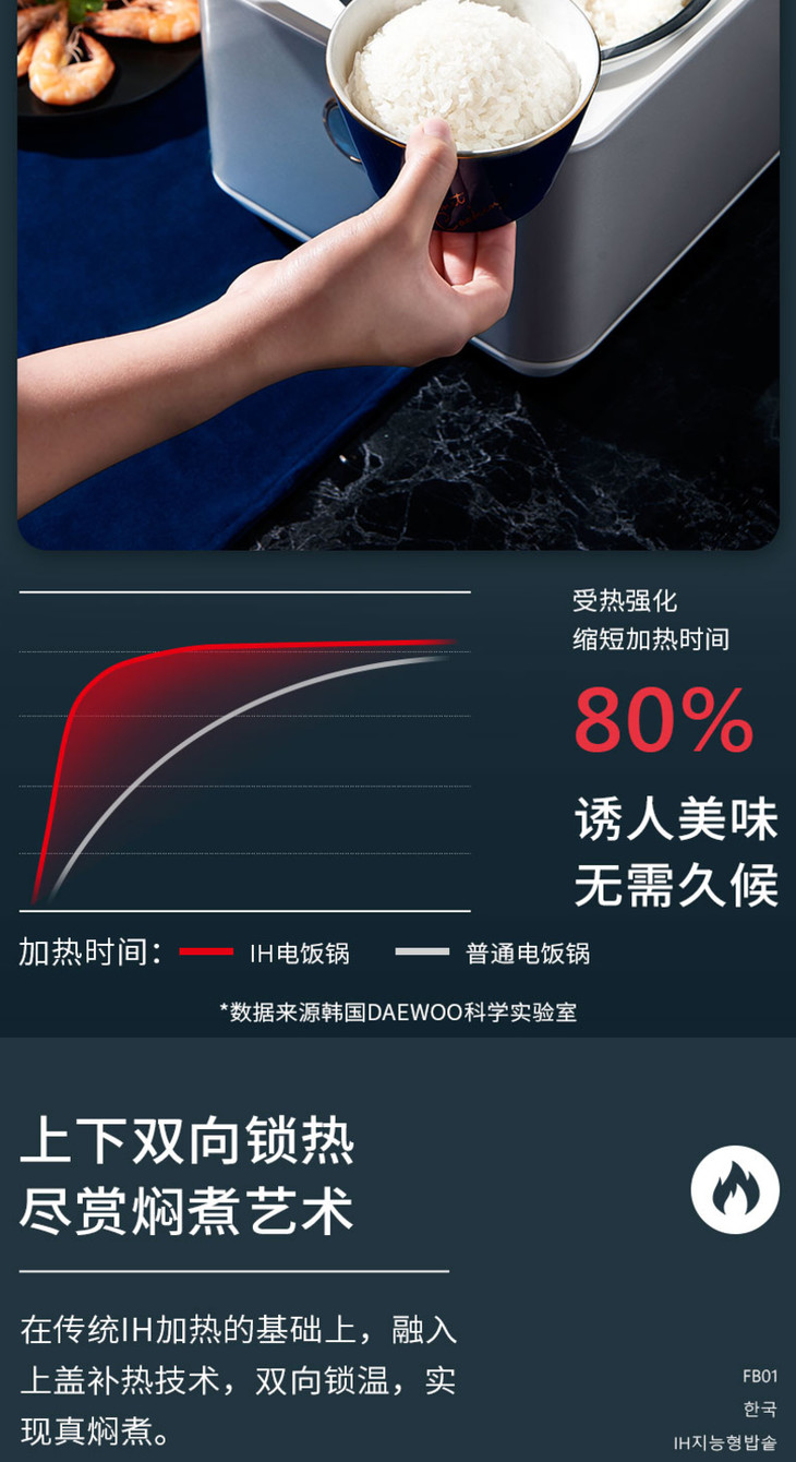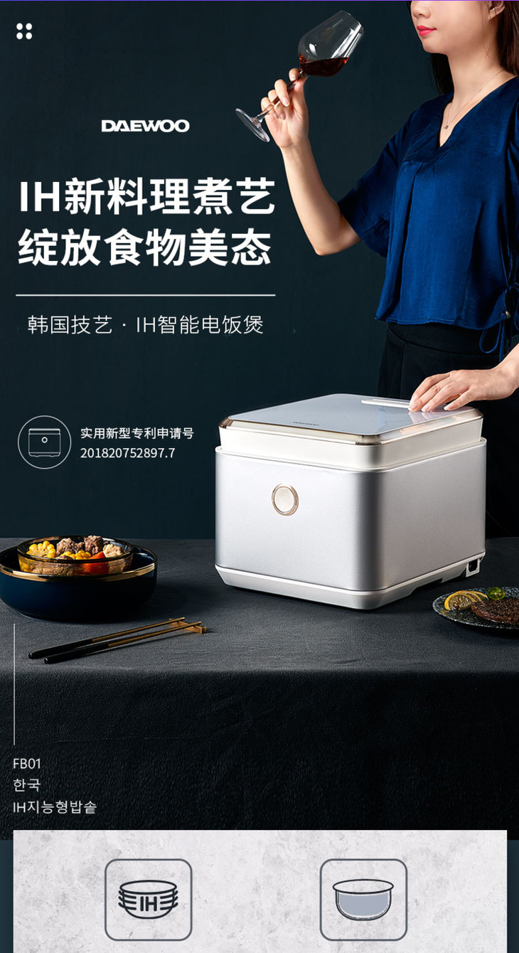 【大宇】韩国大宇IH家用小型电饭煲智能多功能全自动健康养生2-5人煮饭锅fb01
