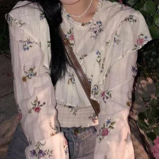 夏季【复古荷叶边 短款衬衫上衣女】韩系甜美 洋气减龄 夏季甜蜜再恋 长袖小衫
