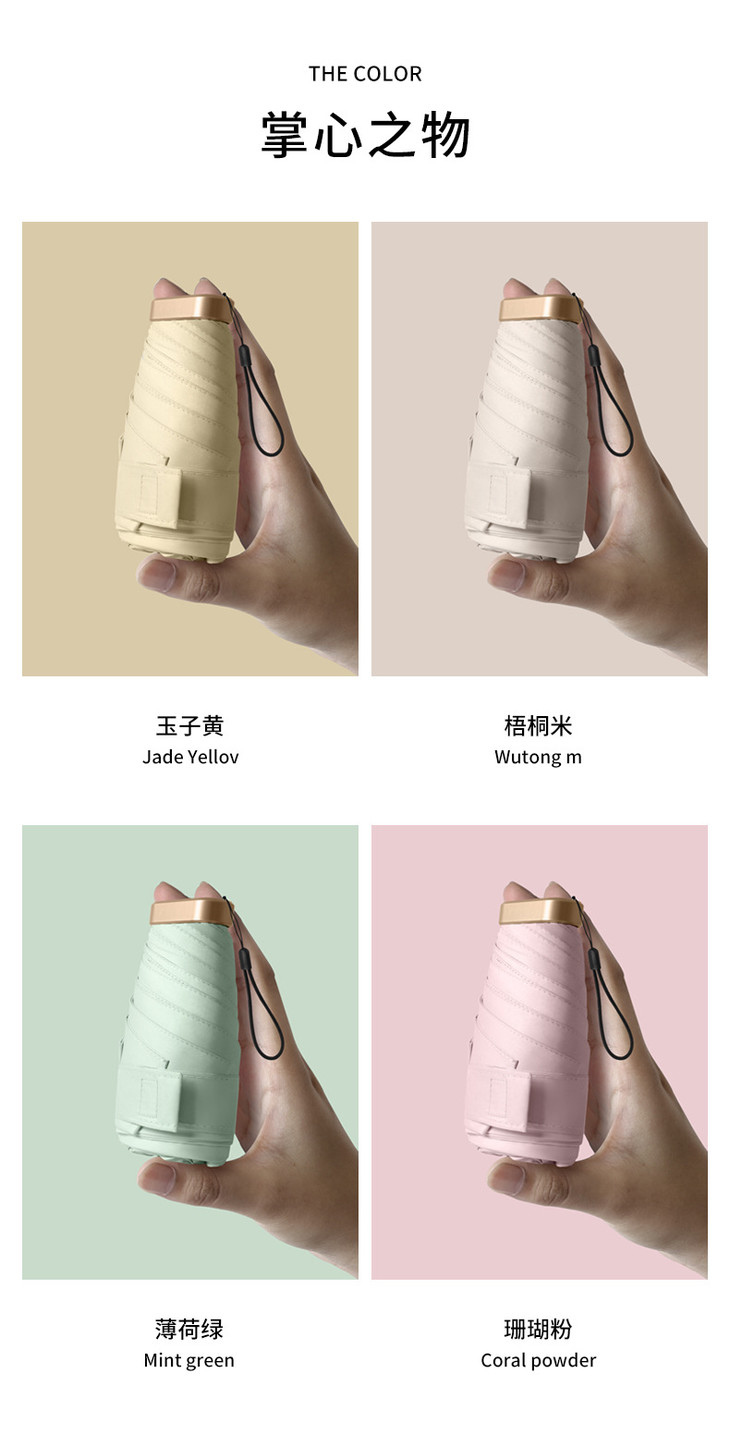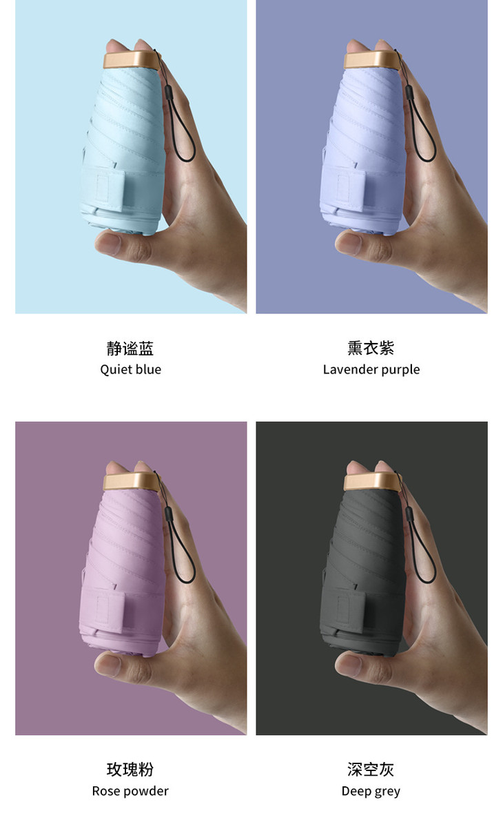 「袖珍小扁伞 八种颜色任你挑选」迷你六折扁伞 防晒口袋伞 防紫外线 晴雨两用