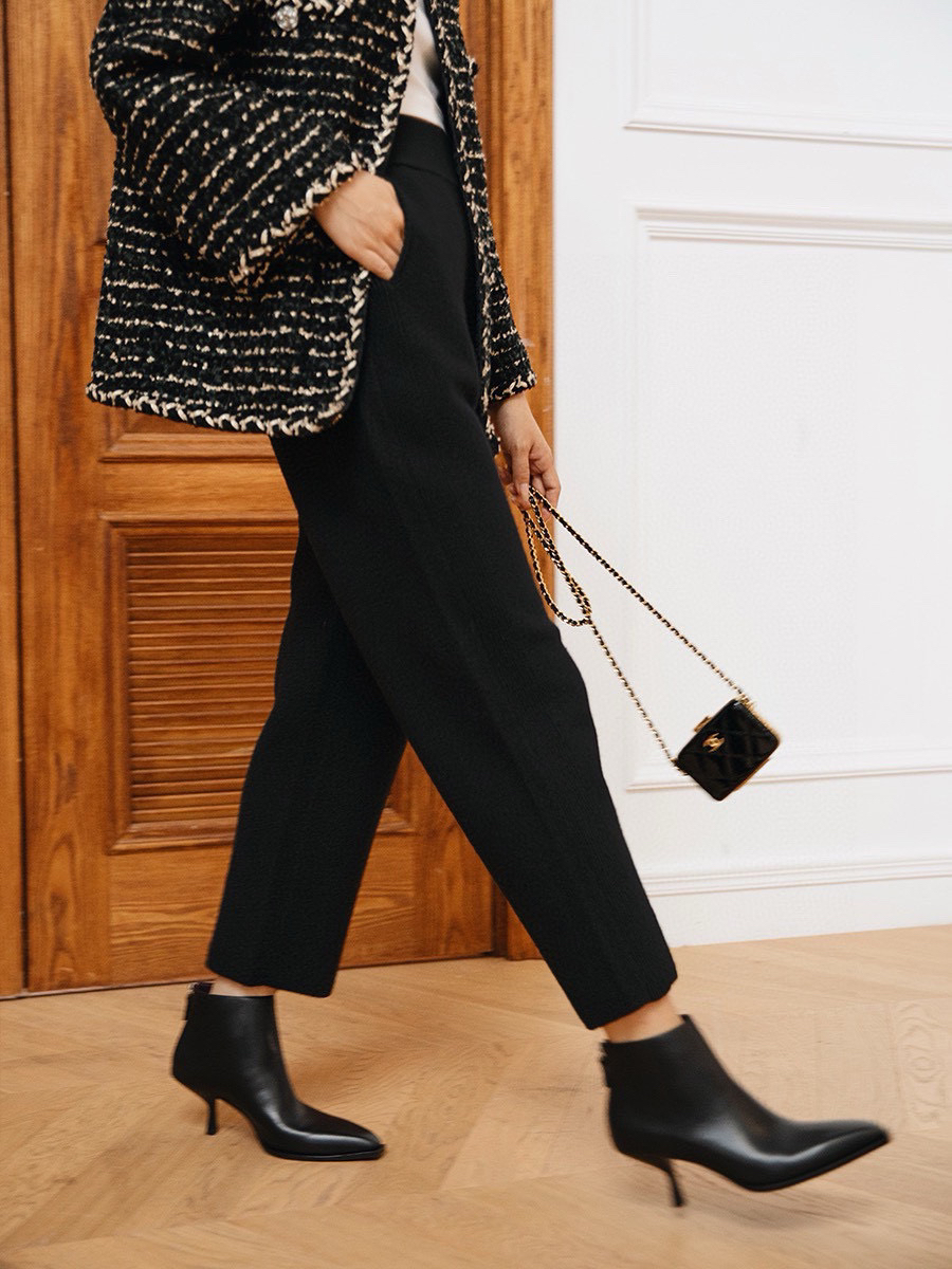 简洁,优雅,高级,大方,同时也有着不容质疑的力量。搭配半身裙,露出整个靴子,好看。搭配阔腿裤,露出鞋头,帅气。不管是整体还是细节,无可挑剔。