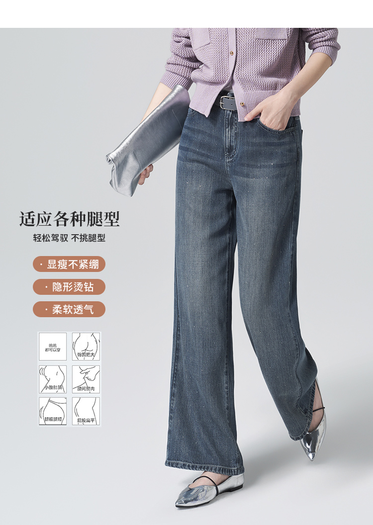 【商场同款】CNT6352 “ 光影牛仔 ” 天丝牛仔软垂舒适 精致贴钻雅致好看