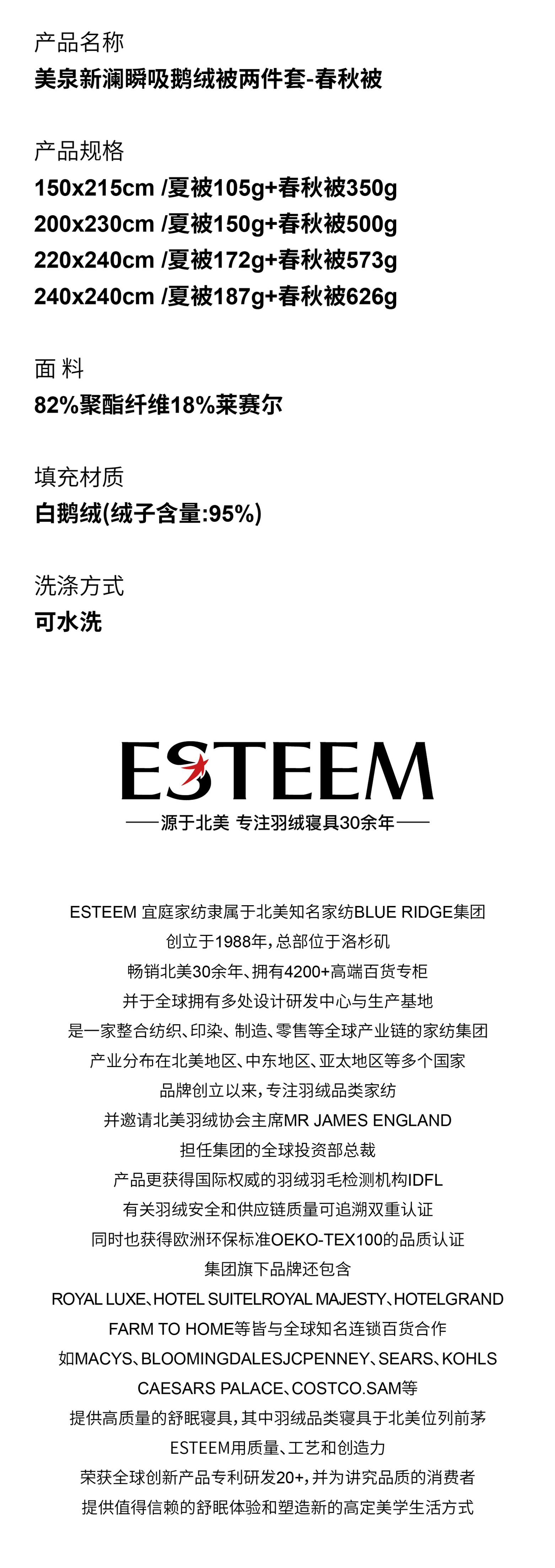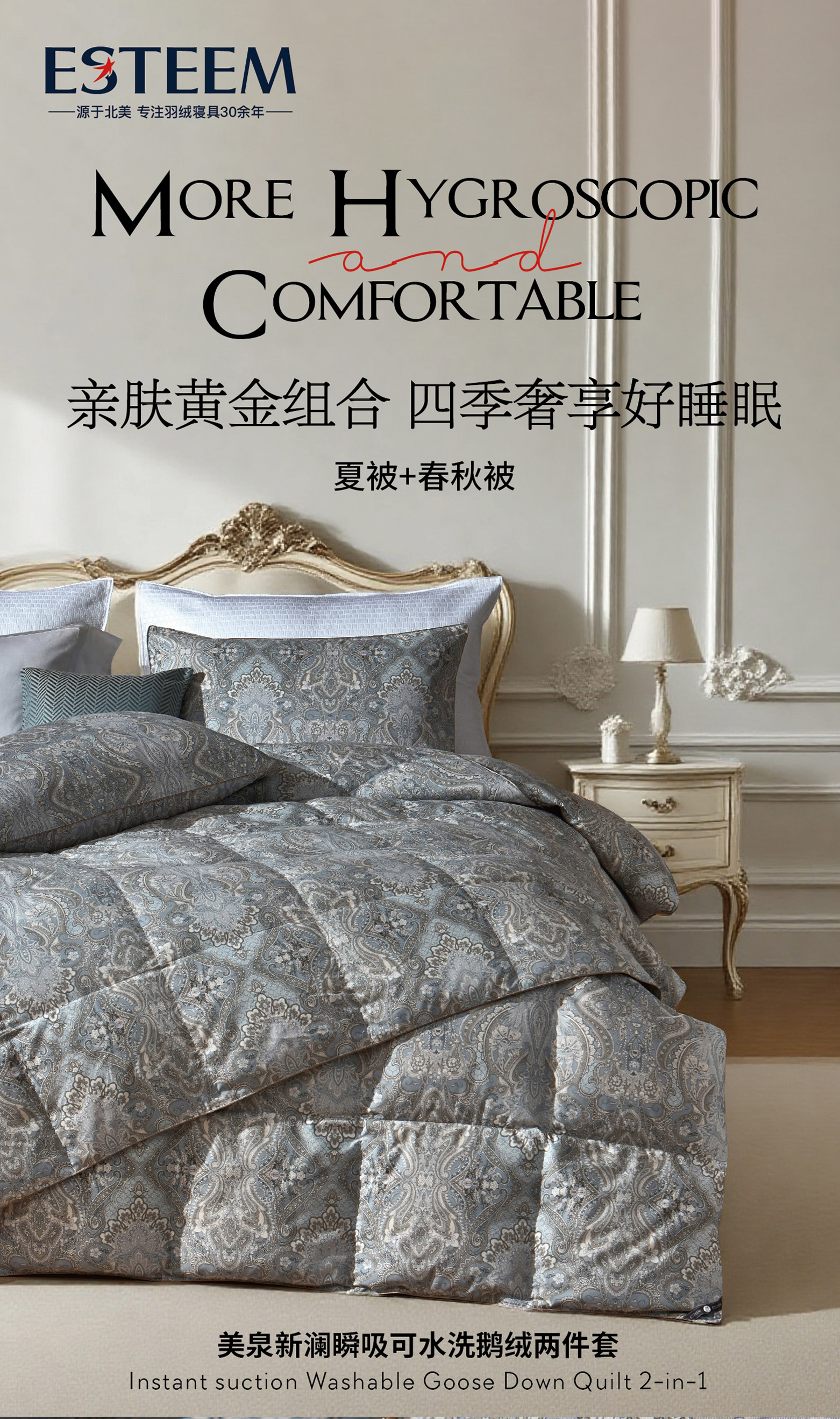 美泉新澜瞬吸可水洗鹅绒被两件套