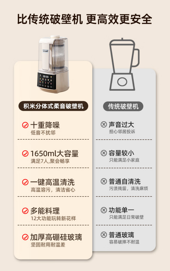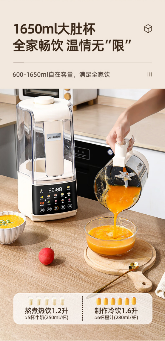 🍒【积米分体式柔音破壁机多功能辅食豆浆机YM-P2】 🤩【轻音破壁】免泡免滤,🌸醇享丝滑,细腻好滋味! 🎈整机分体更方便!彩屏智控,12大功能,1.6L大容量全家享用!💯