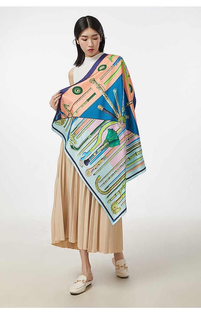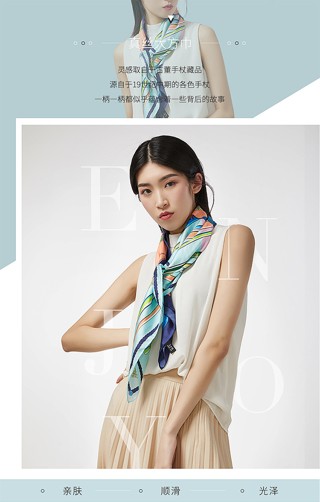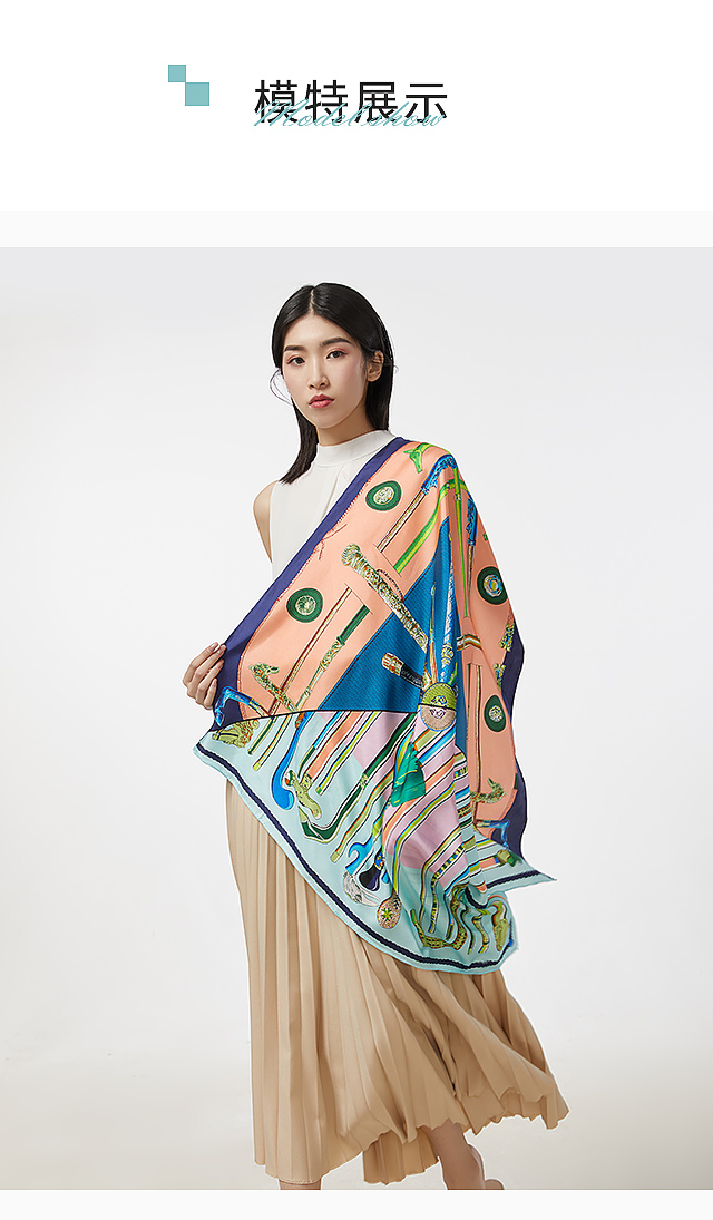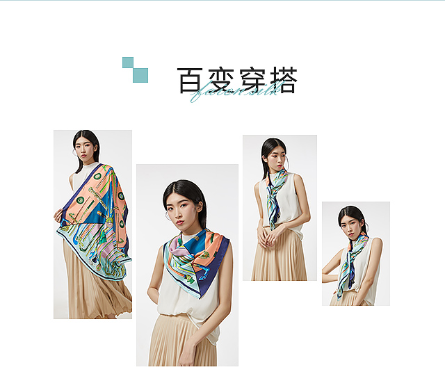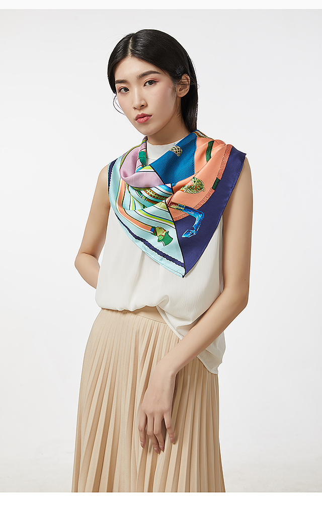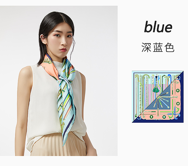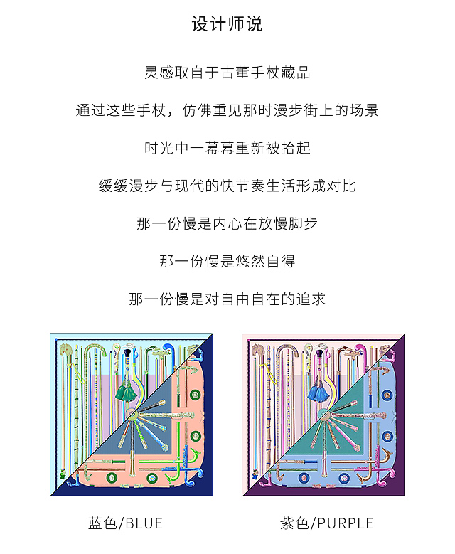 SAINTJOY/上久楷 真丝方巾 物语良品紫色&蓝色FJS19005