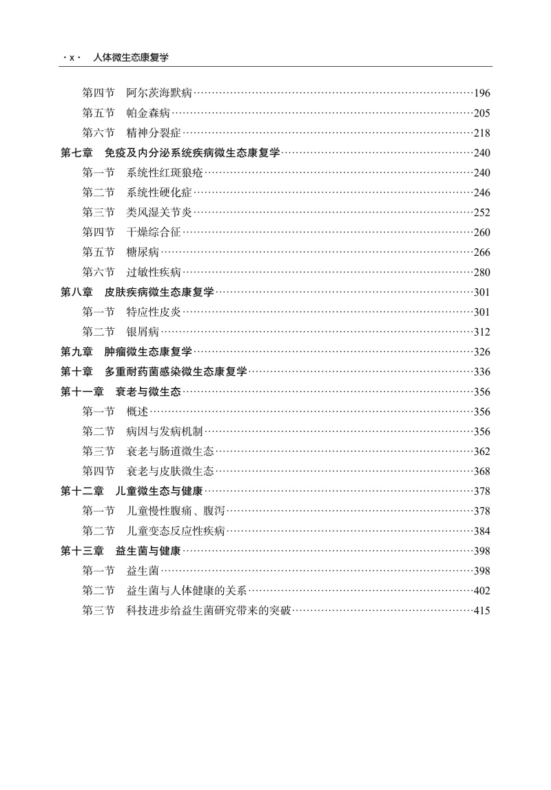 本书全面系统地阐述了微生态与多种系统疾病之间的复杂关系,从消化系统疾病、呼吸系统疾病、循环系统疾病、泌尿生殖系统疾病、神经精神疾病、免疫及内分泌系统疾病、皮肤疾病、肿瘤到多重耐药菌感染等,深入剖析了微生态疗法在各类疾病治疗中的临床应用与实践。此外,书中还介绍了衰老与微生态、儿童微生态与健康、益生菌与健康等内容,以帮助读者更好地理解人体微生态与疾病康复的密切关系。