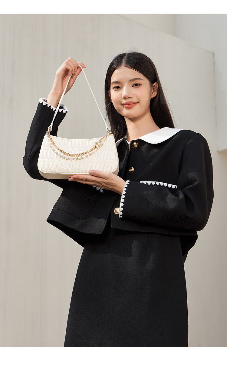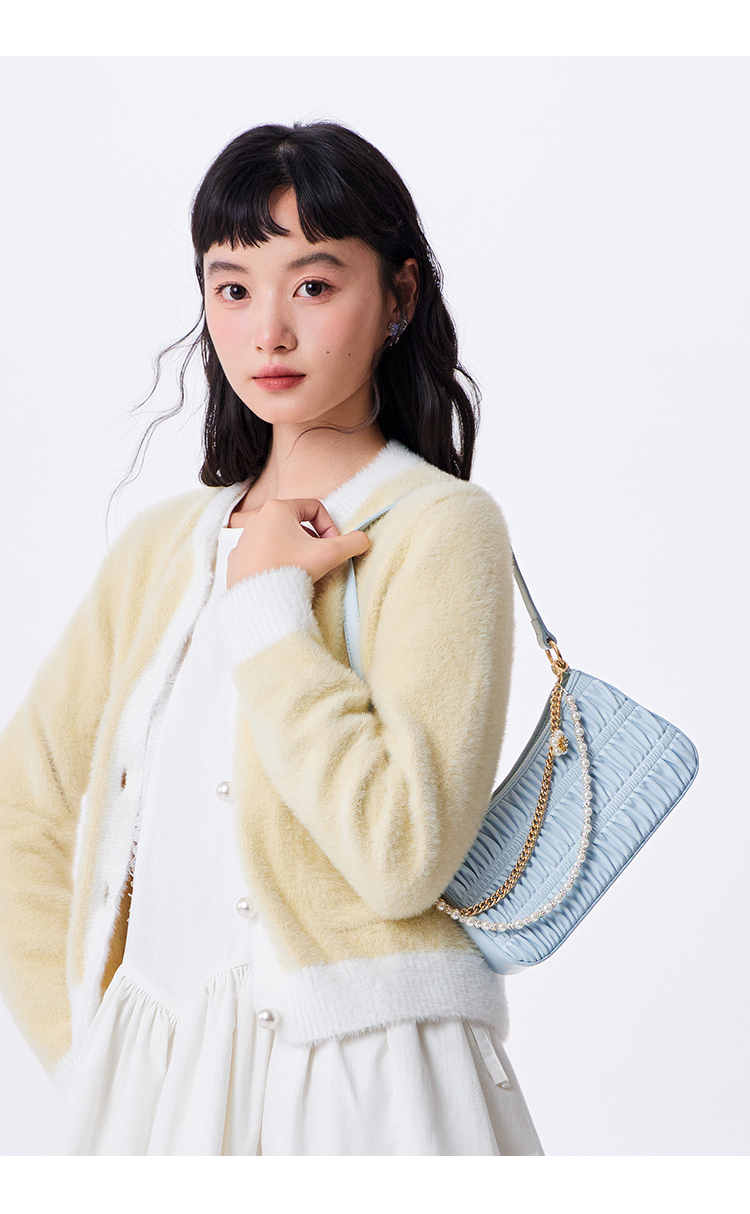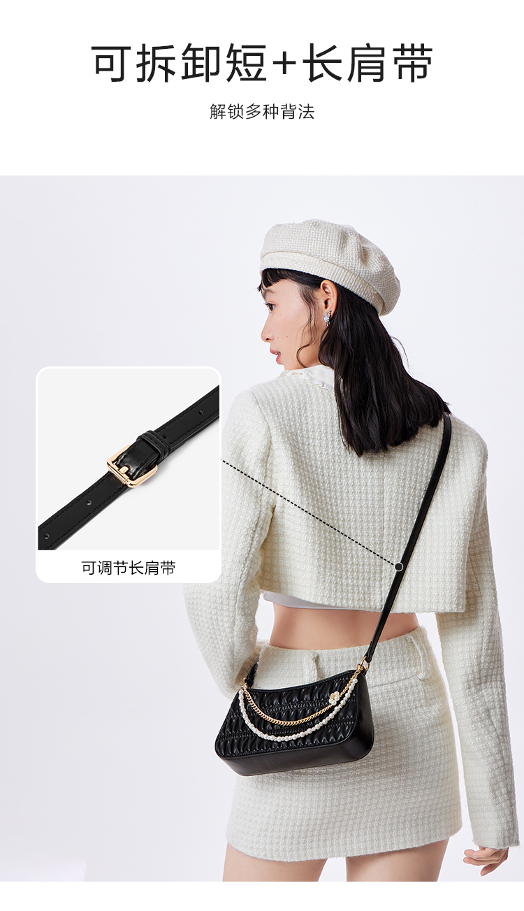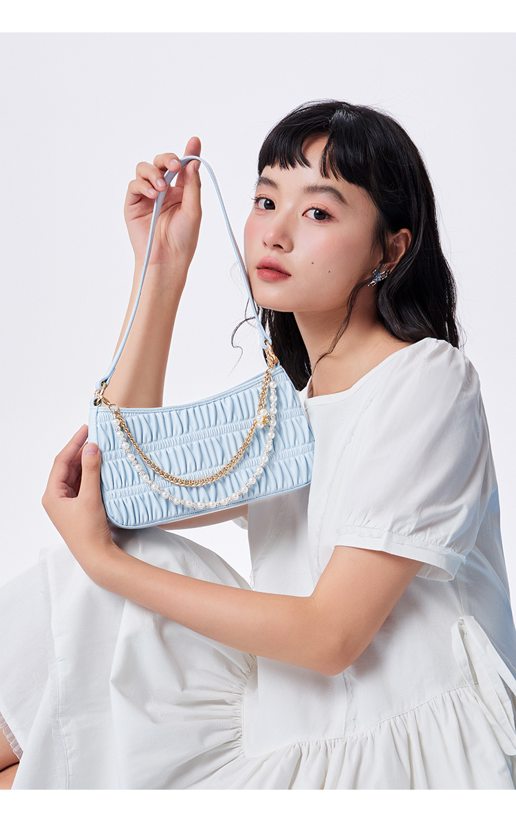 森马包包腋下包女新款褶皱单肩包小众手提包休闲轻便斜挎包