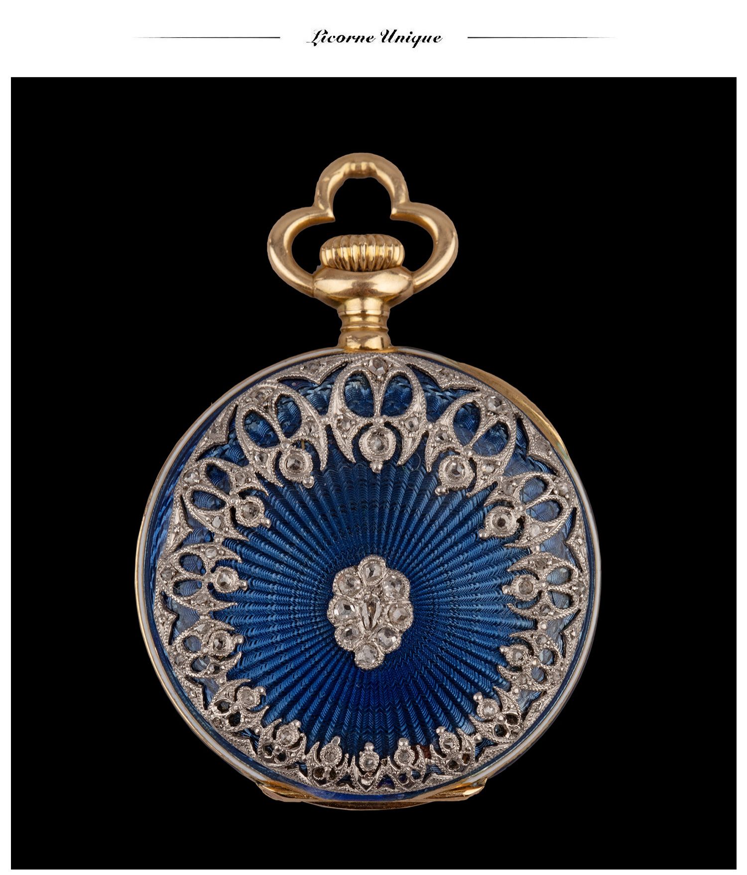 独角鹿西洋古董瑞士钟表世家18K黄金白金镶嵌钻石蓝色玑镂珐琅怀