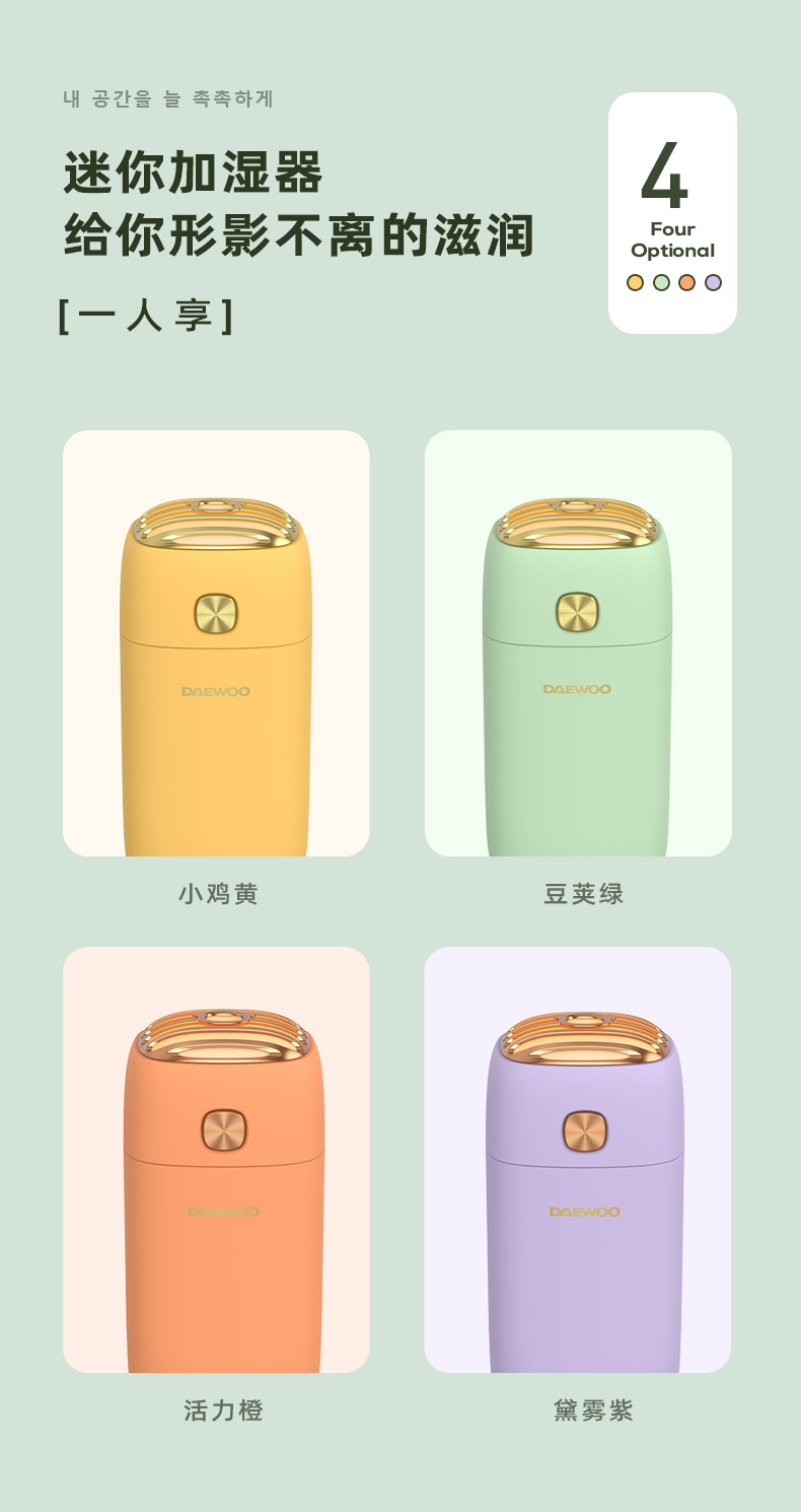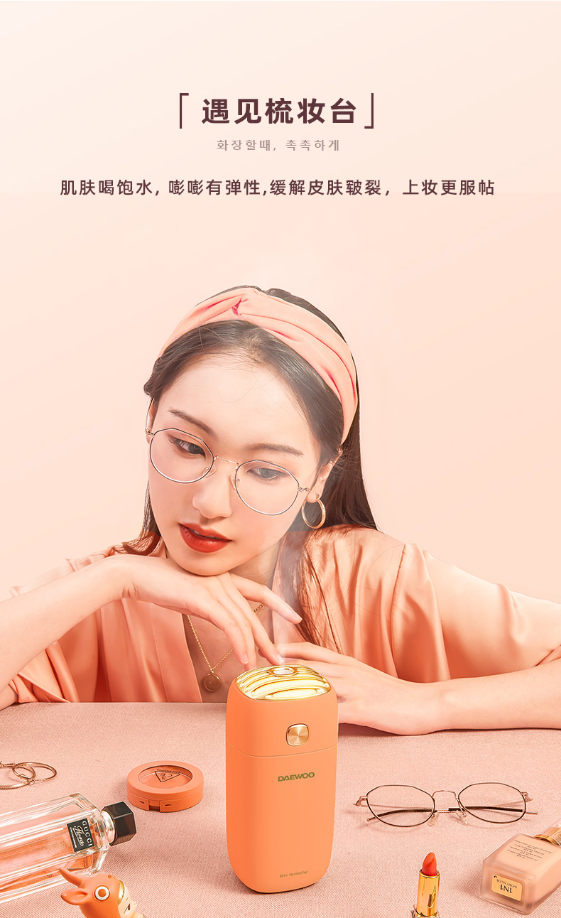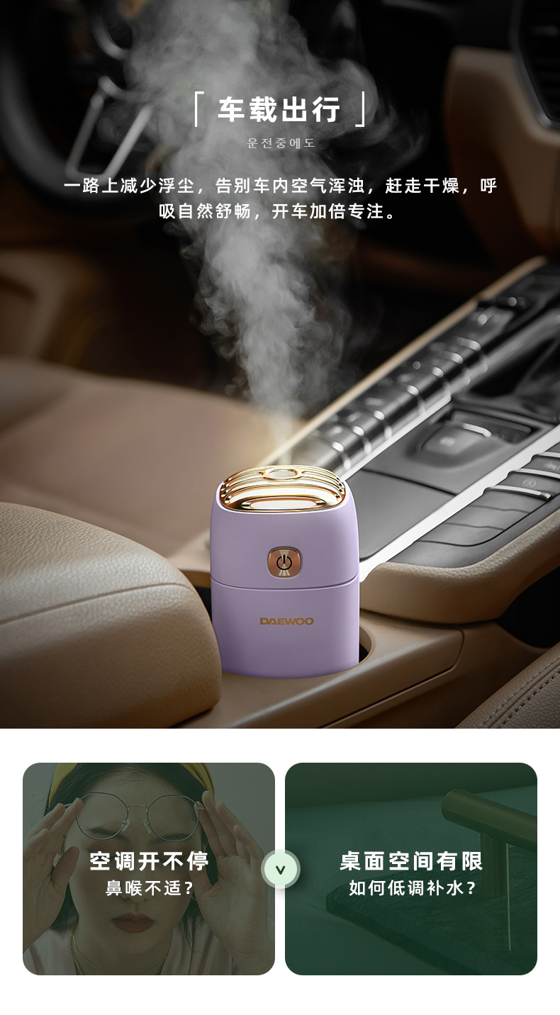 【暖光夜灯,纳米喷雾】大宇迷你加湿器家用卧室办公室车载喷雾空气净化器
