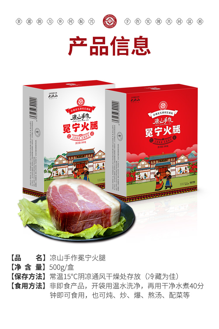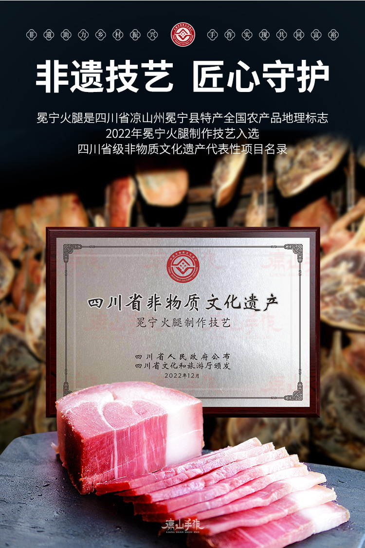 【冕宁火腿500g盒装】四川凉山特产手作冕宁火腿 精选优质猪后腿火腿肉 自然发酵风干 真空包装【非物质文化遗产】