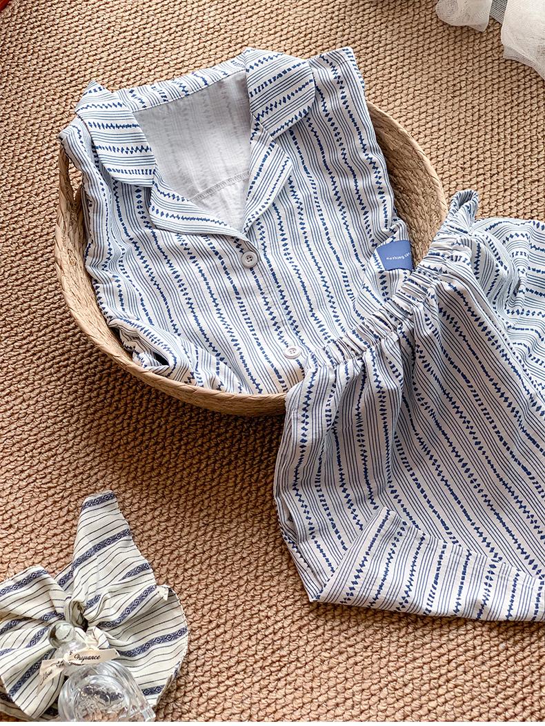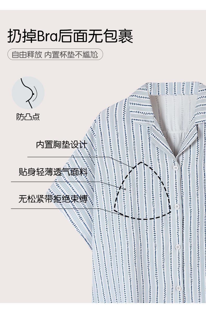可人儿小众设计师新款泡泡绵女士睡衣夏季短袖可外出家居服三件套