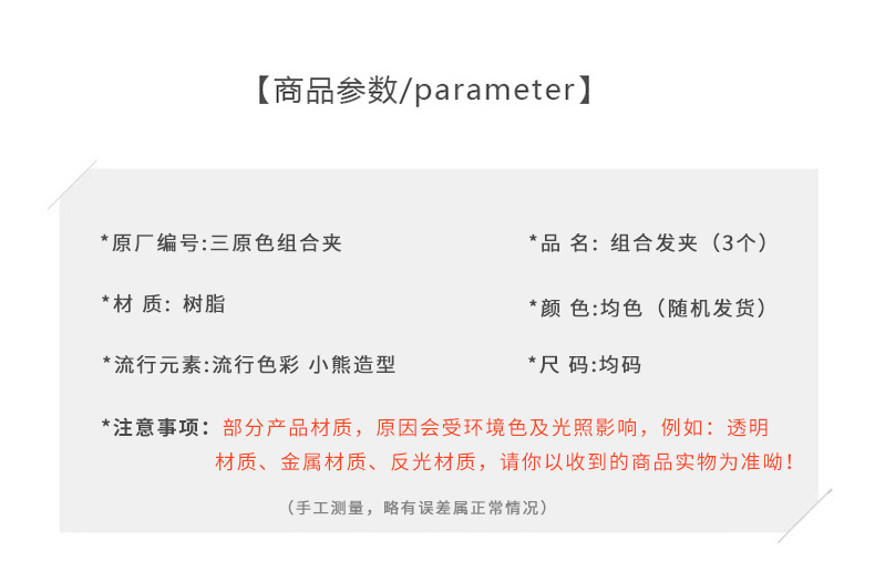 三彩小熊组合发夹(3个)-纪念日百货门店同款169096677