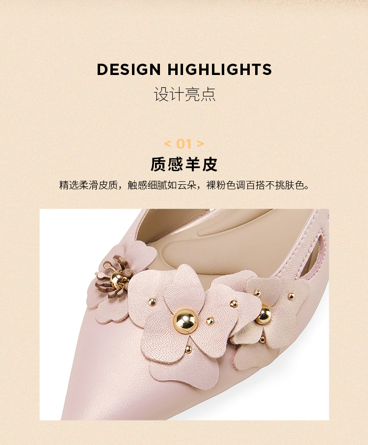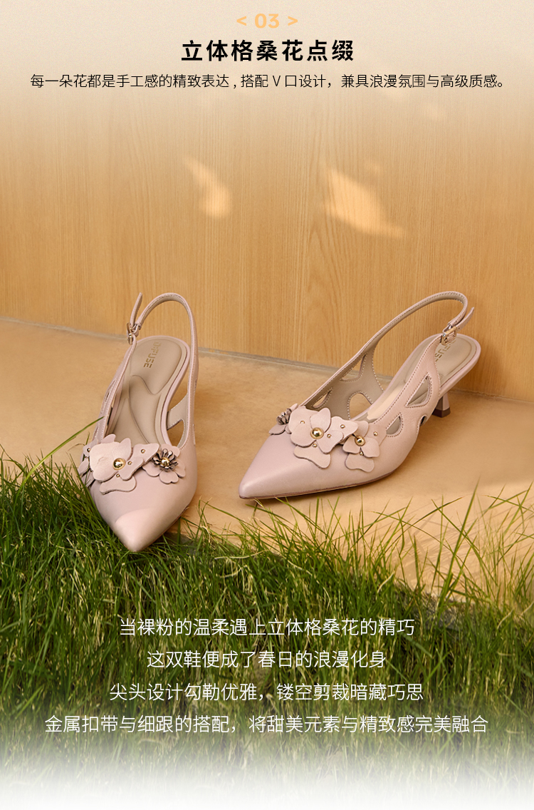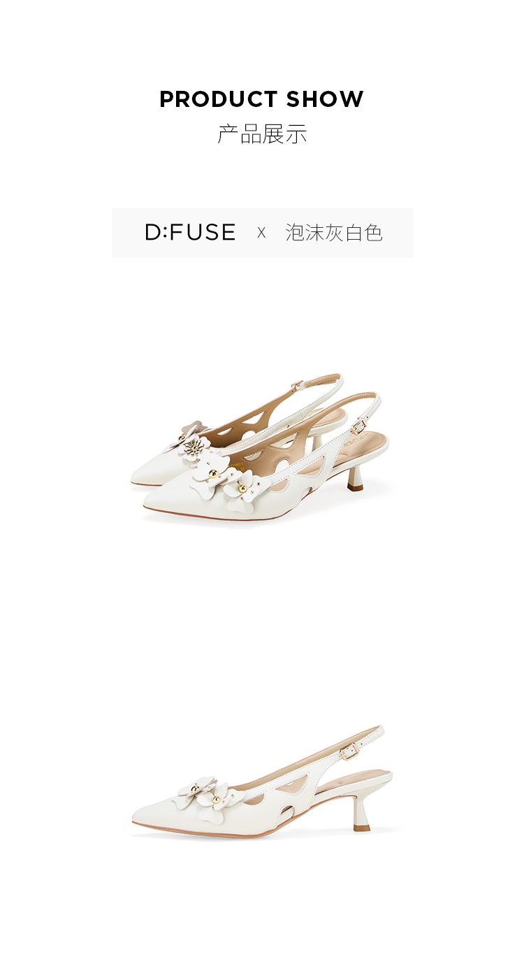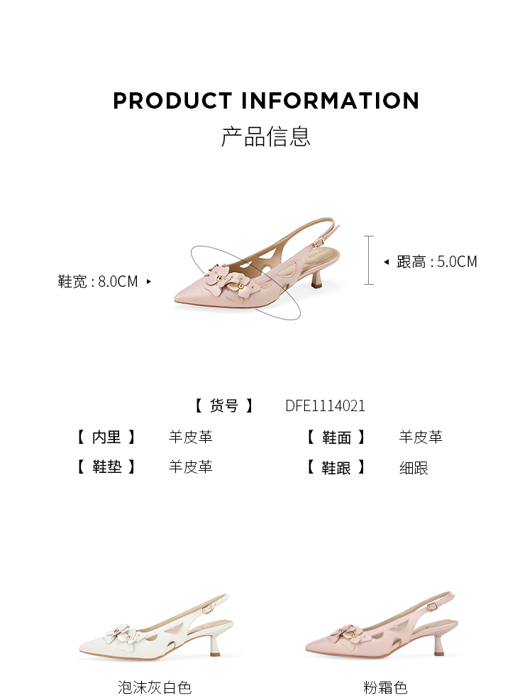 Dfuse迪芙斯2026春季新款尖头细跟格桑花柔软羊皮通勤高跟凉鞋女鞋DFE1114021