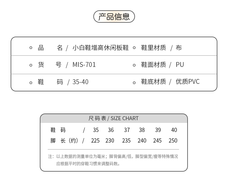 【YW】无忧购25年春季港风复古ins百搭增高休闲运动板鞋MIS-701女(截单后7天发货)