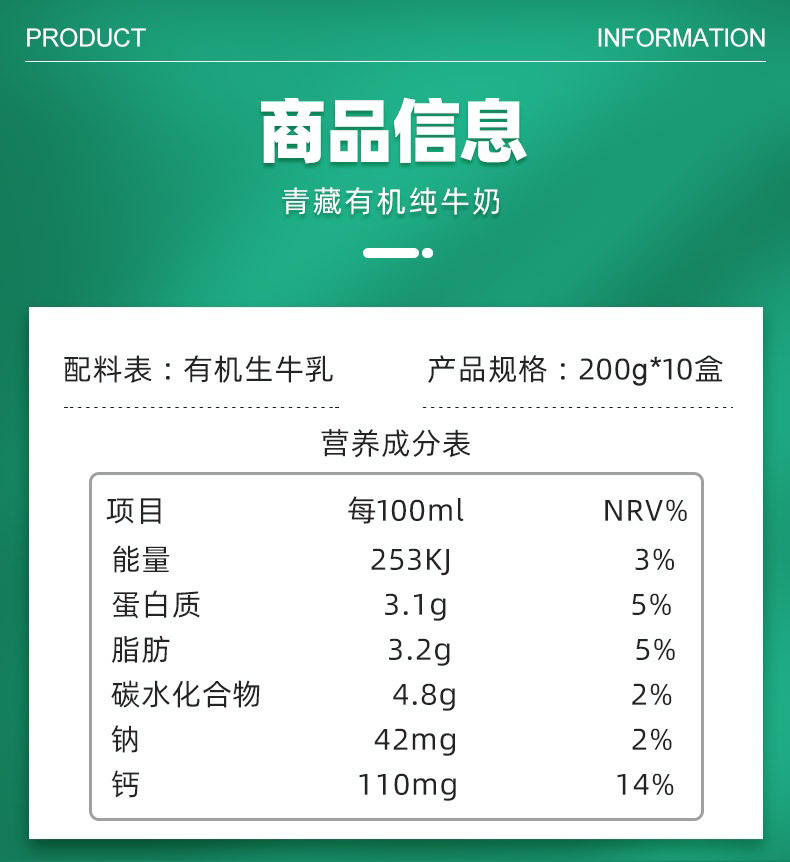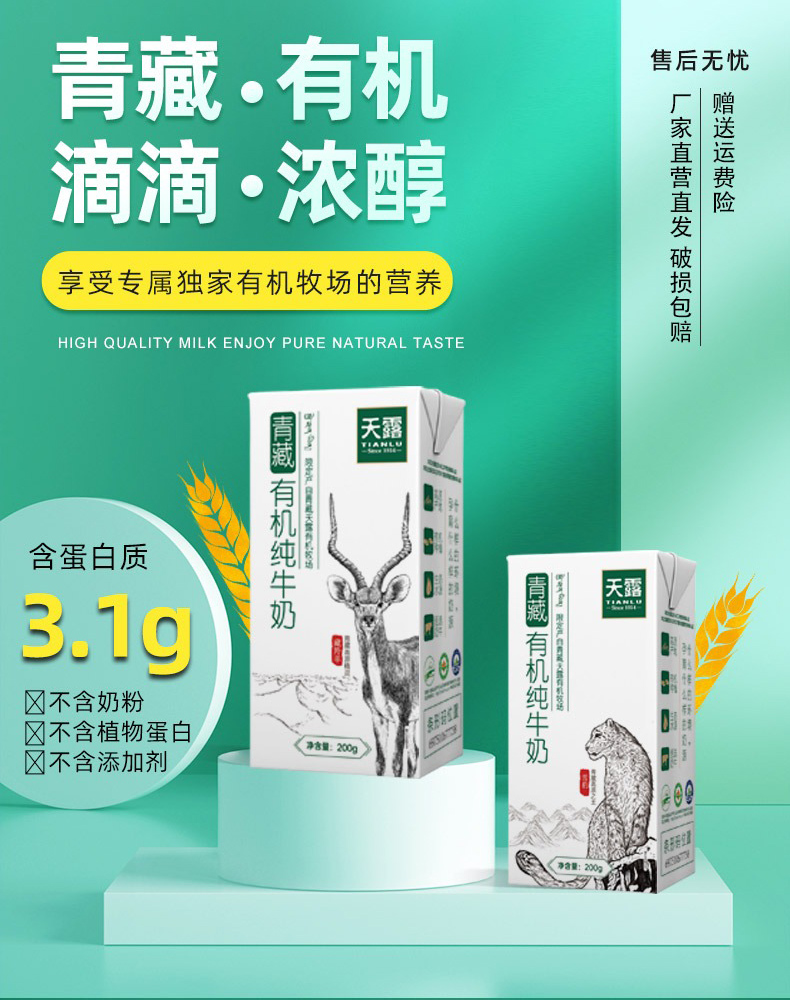 有机|青藏纯牛奶高端好喝全脂有机牛奶200克*10盒/箱儿童孕妇牛奶