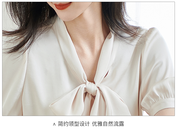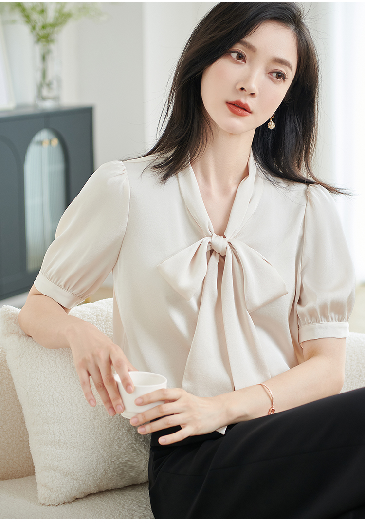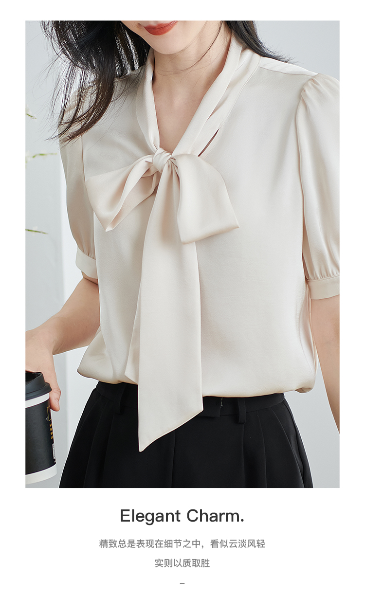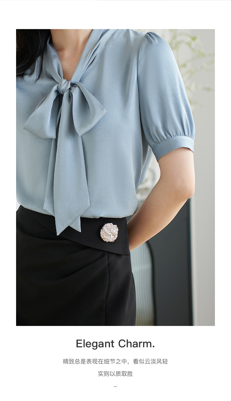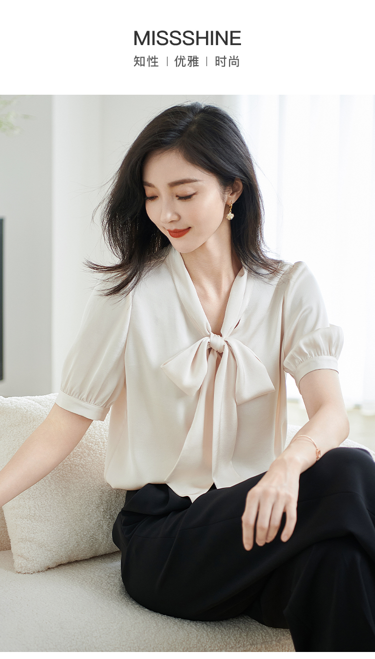 米思阳2026夏季新款职业气质高级感缎面衬衫蝴蝶结短袖上衣女小衫1816/1240