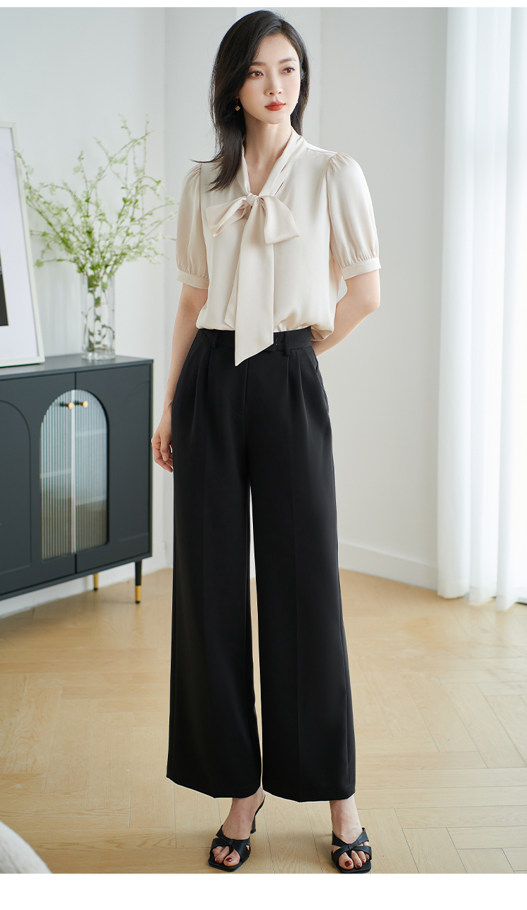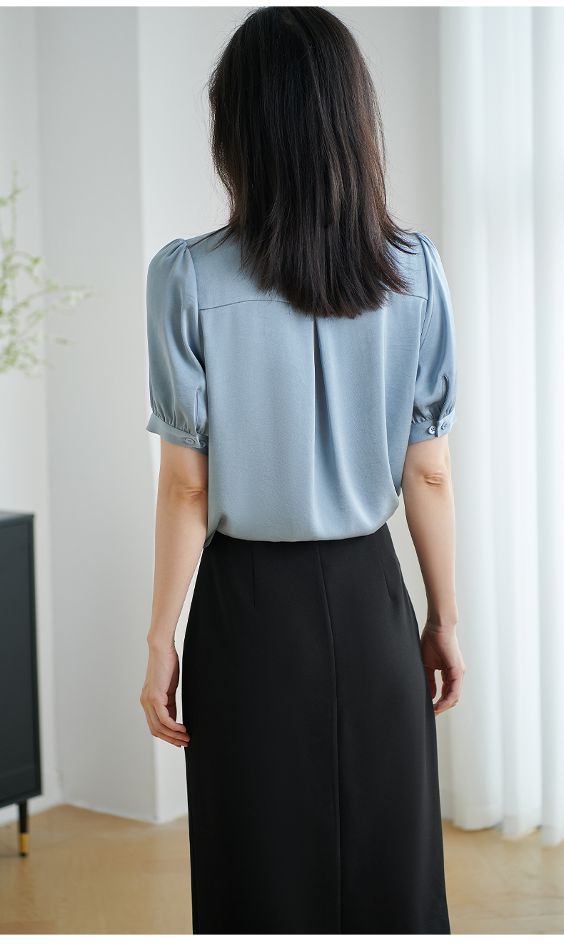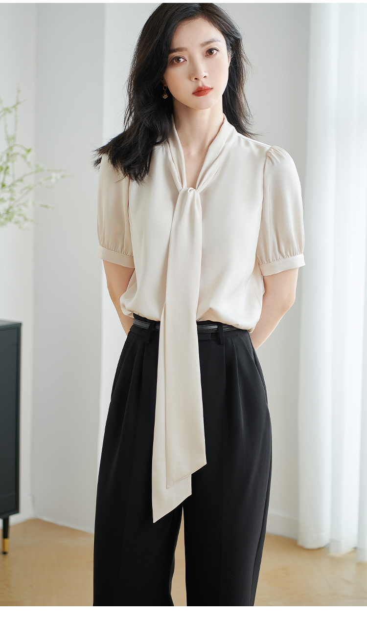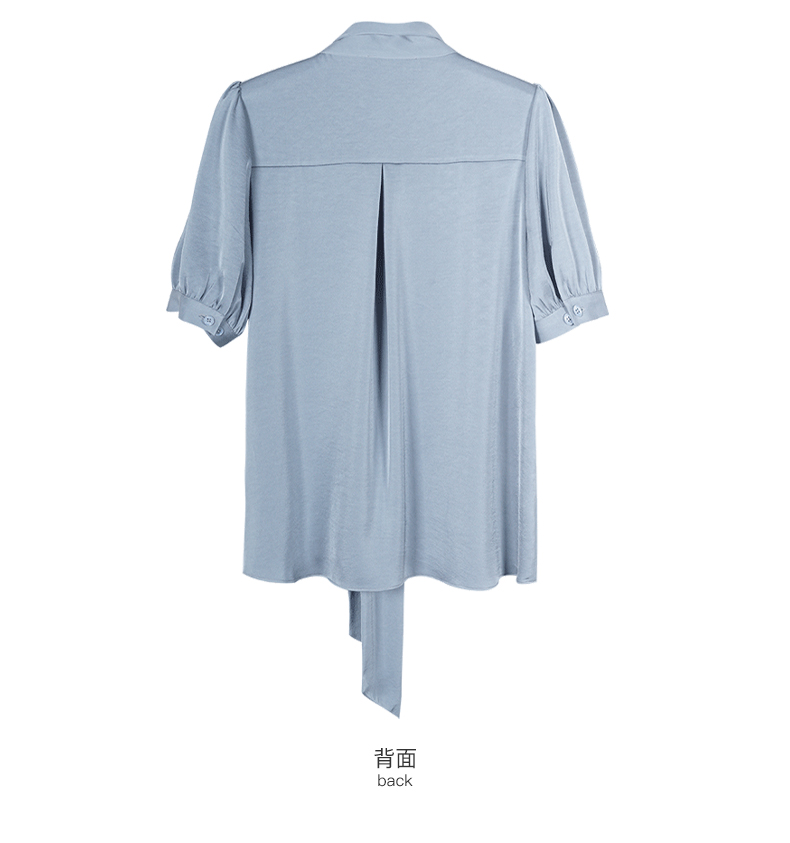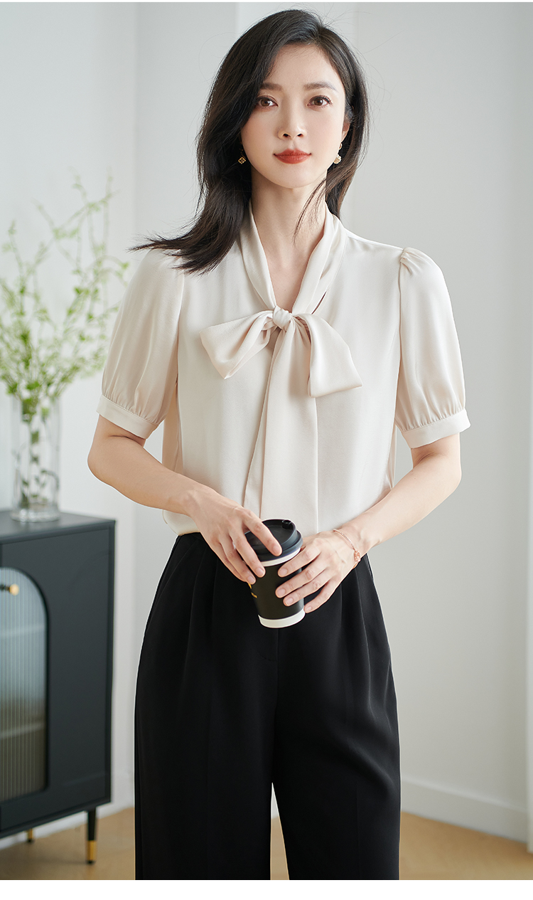 米思阳2026夏季新款职业气质高级感缎面衬衫蝴蝶结短袖上衣女小衫1816/1240