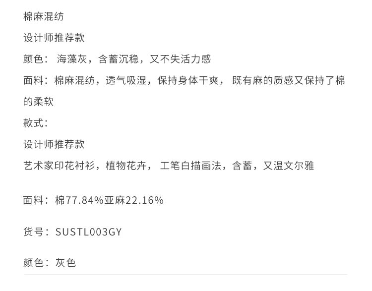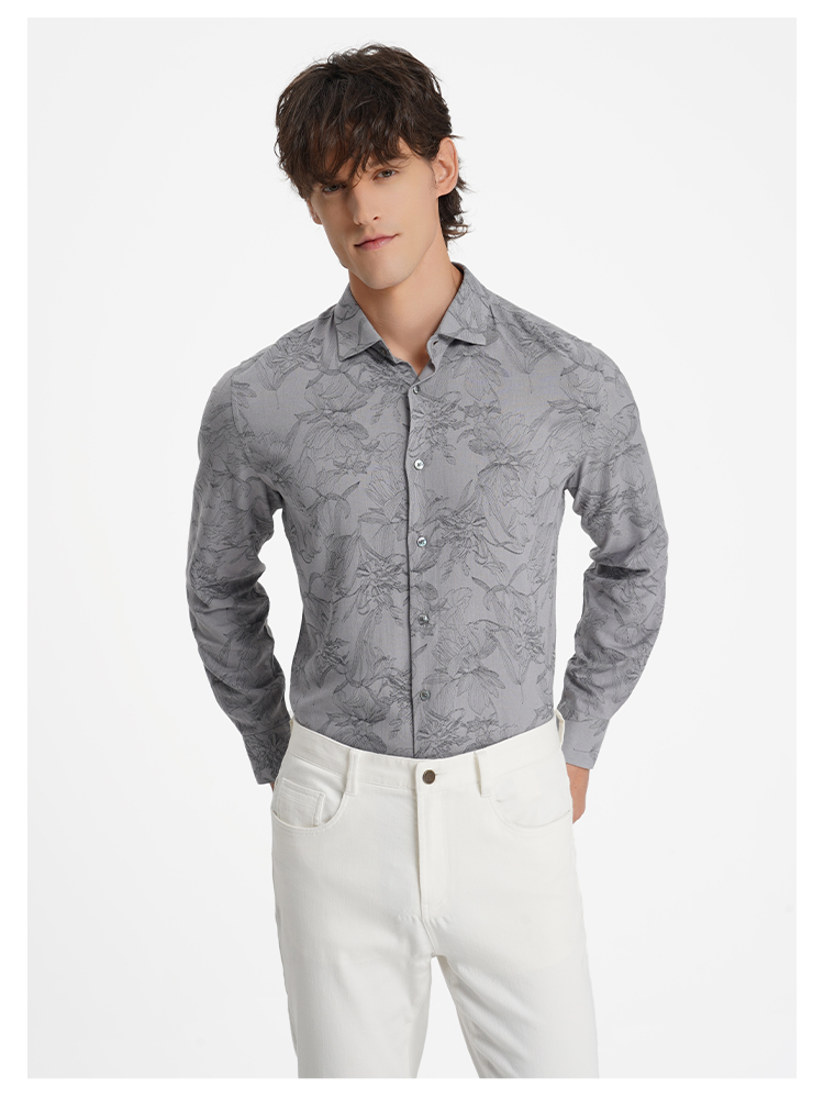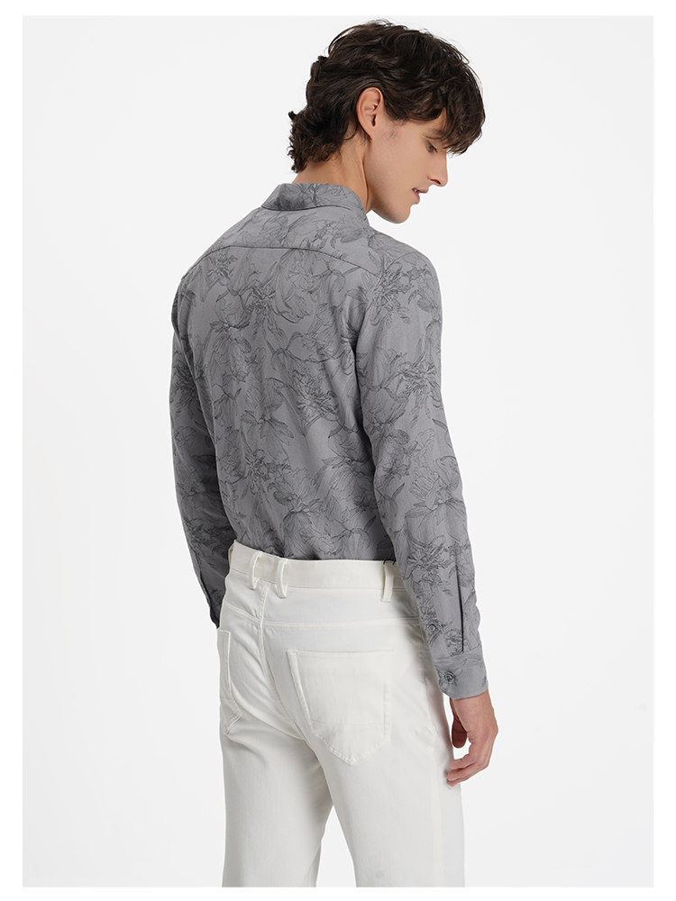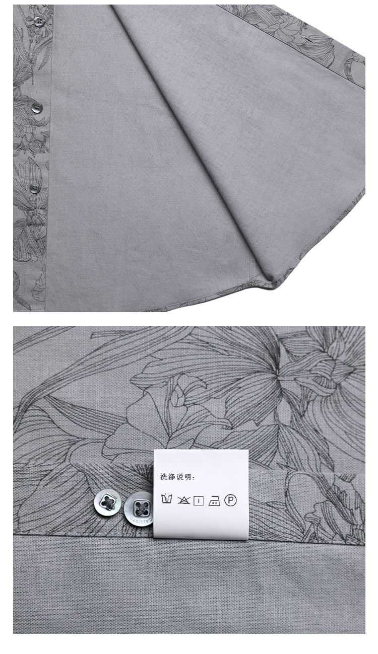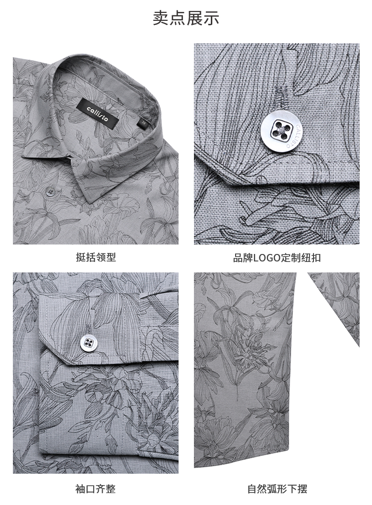 callisto山海系列灰色棉亚麻混纺长袖衬衫