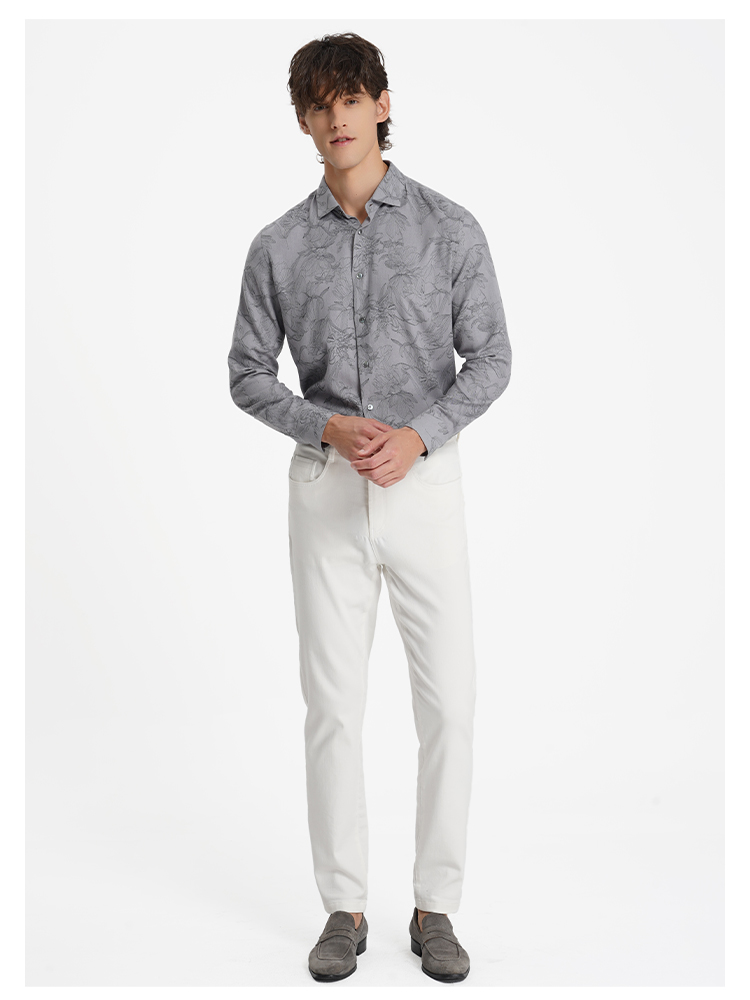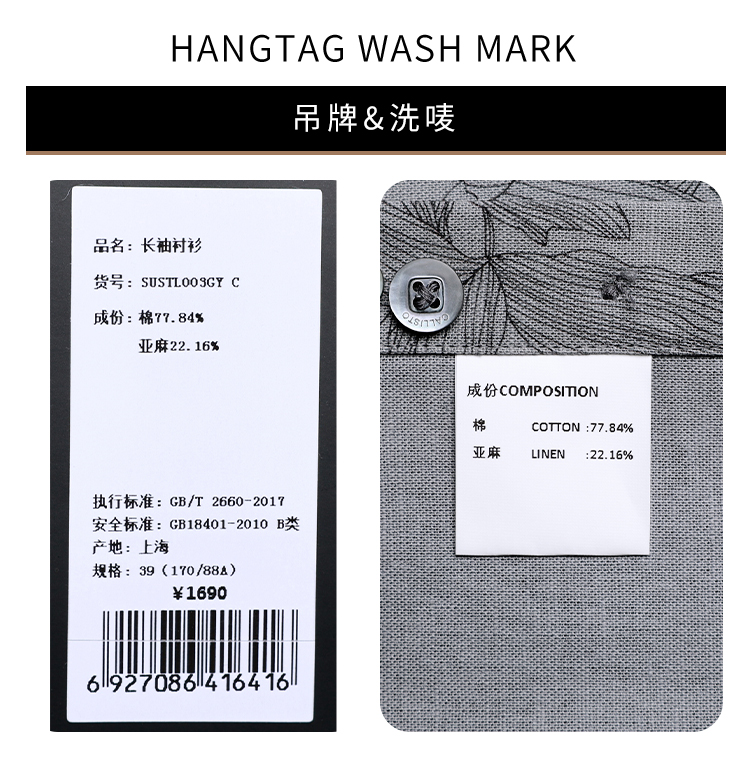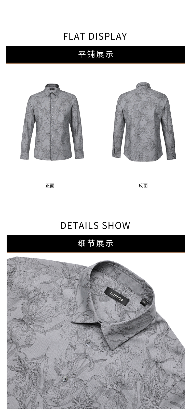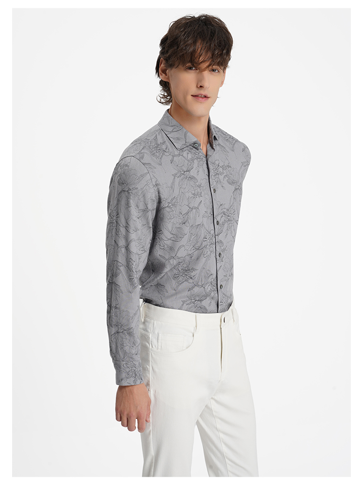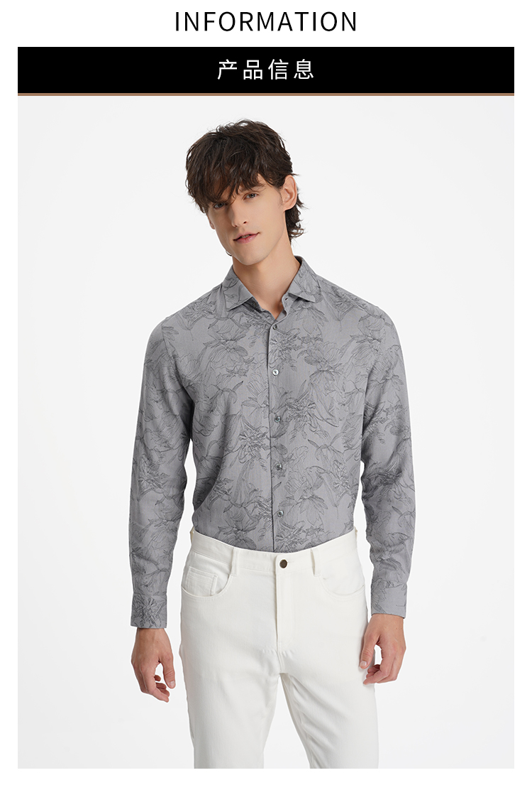 callisto山海系列灰色棉亚麻混纺长袖衬衫