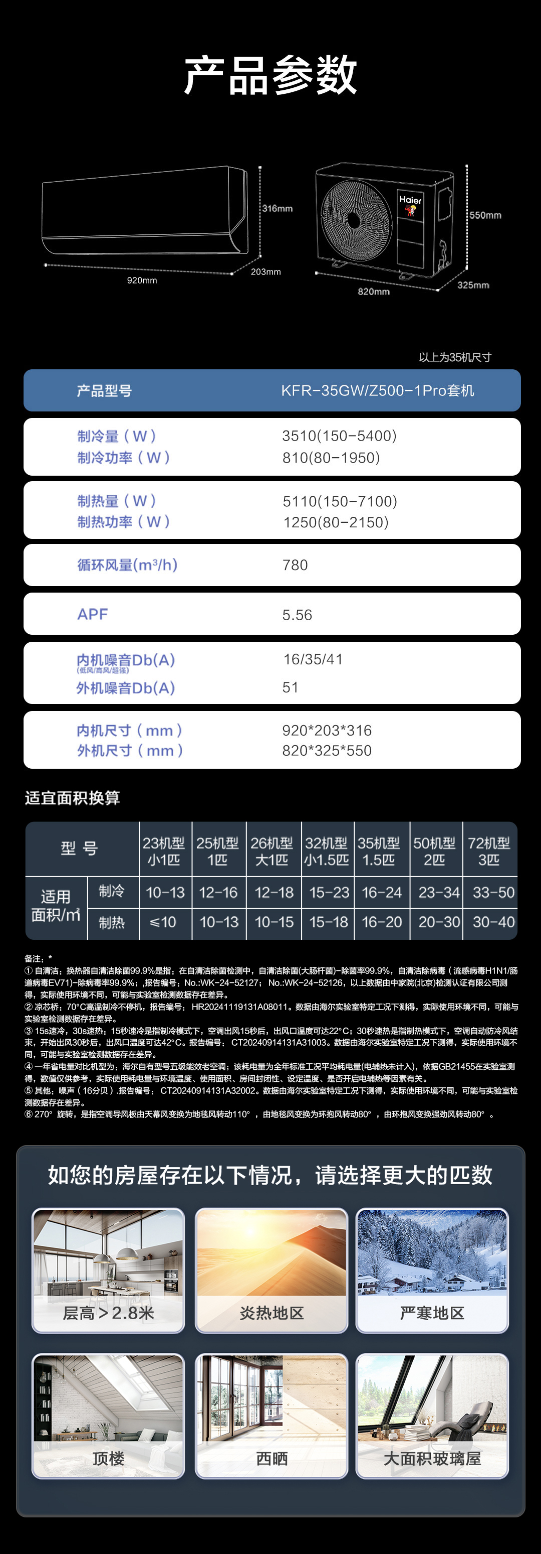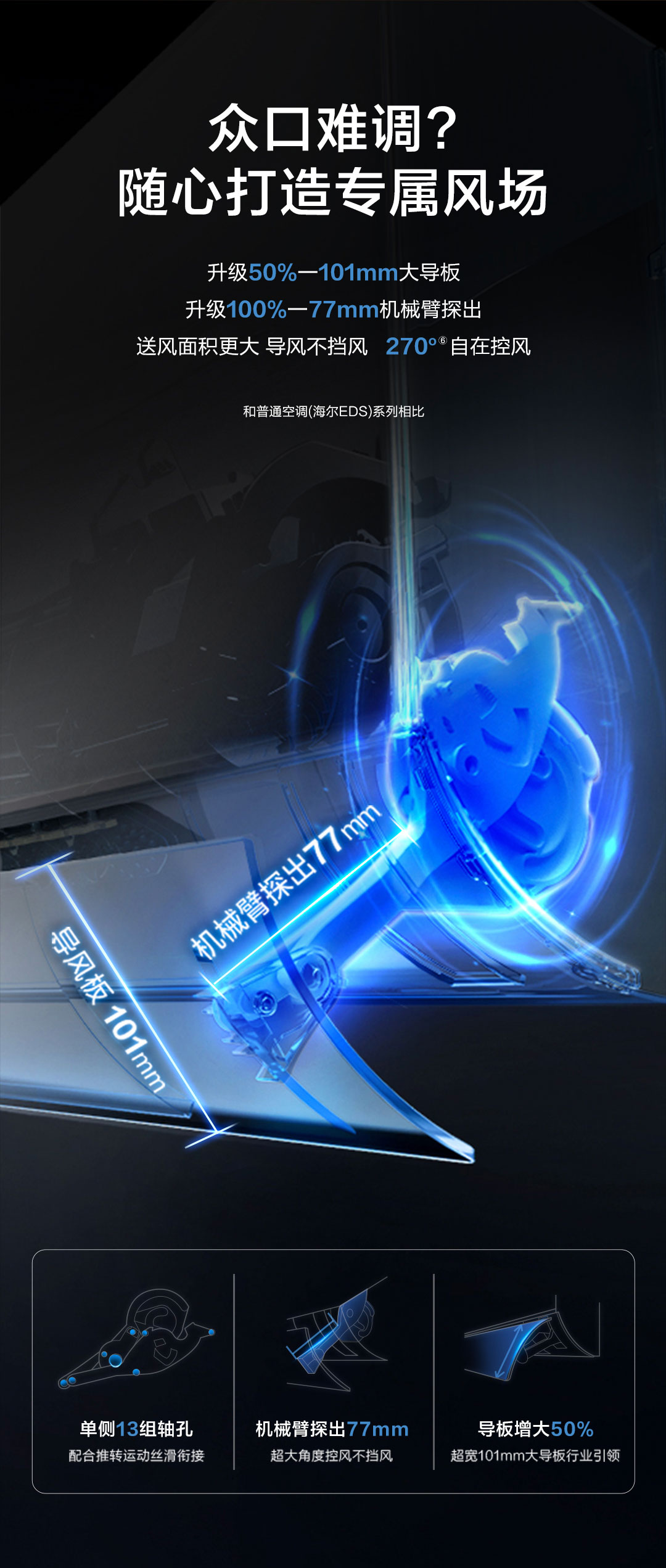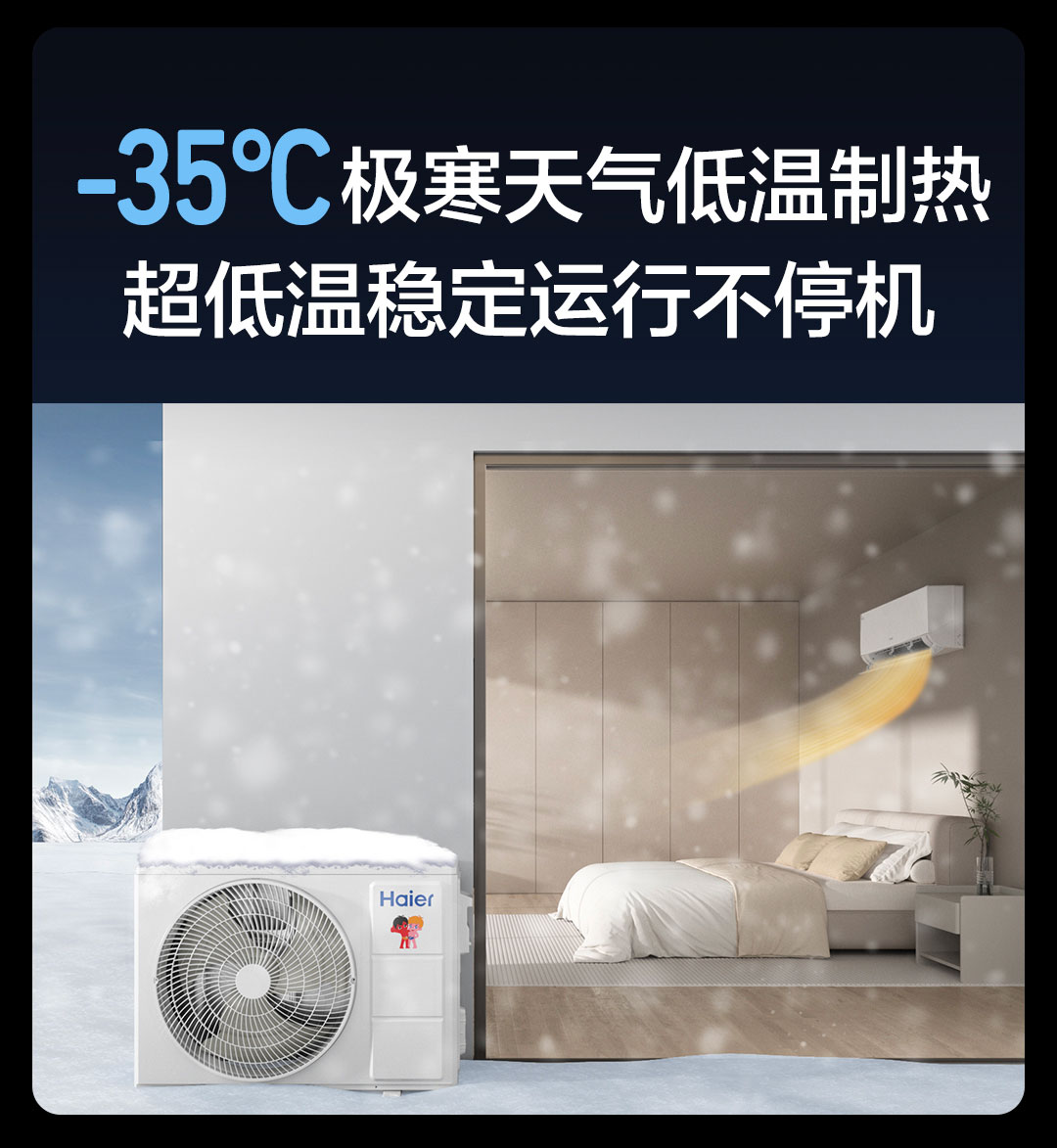 海尔(140190)家用空调KFR-35GW/Z500-1Pro套机健康(冷风不吹人):双动力机械臂,导风板无极可调,随按随停,定制专属舒适区,每个角落,都不担心冷风直吹 强劲(高温强冷)