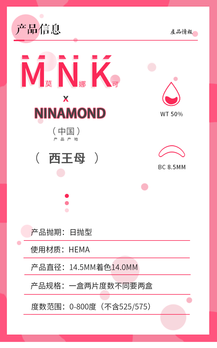 ninamond日抛cos 西王母 直径14.5mm着色14.0mm (两片装) 预计十月中旬到货