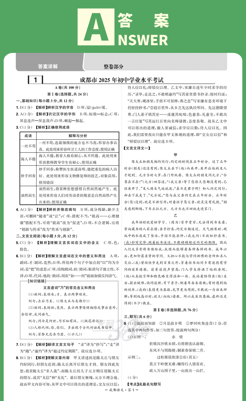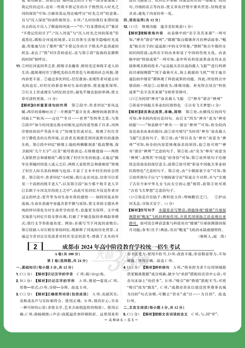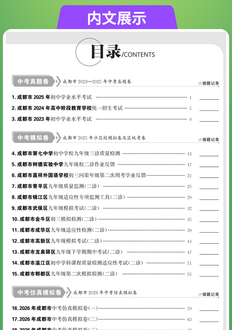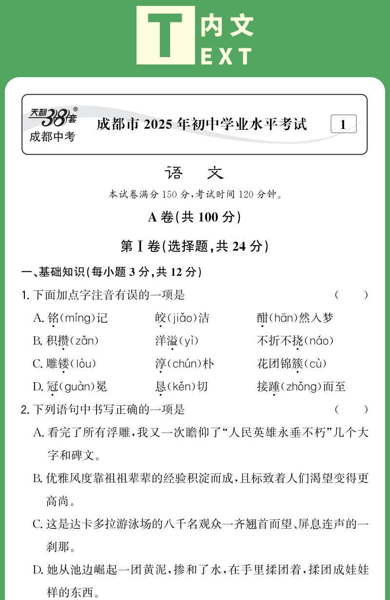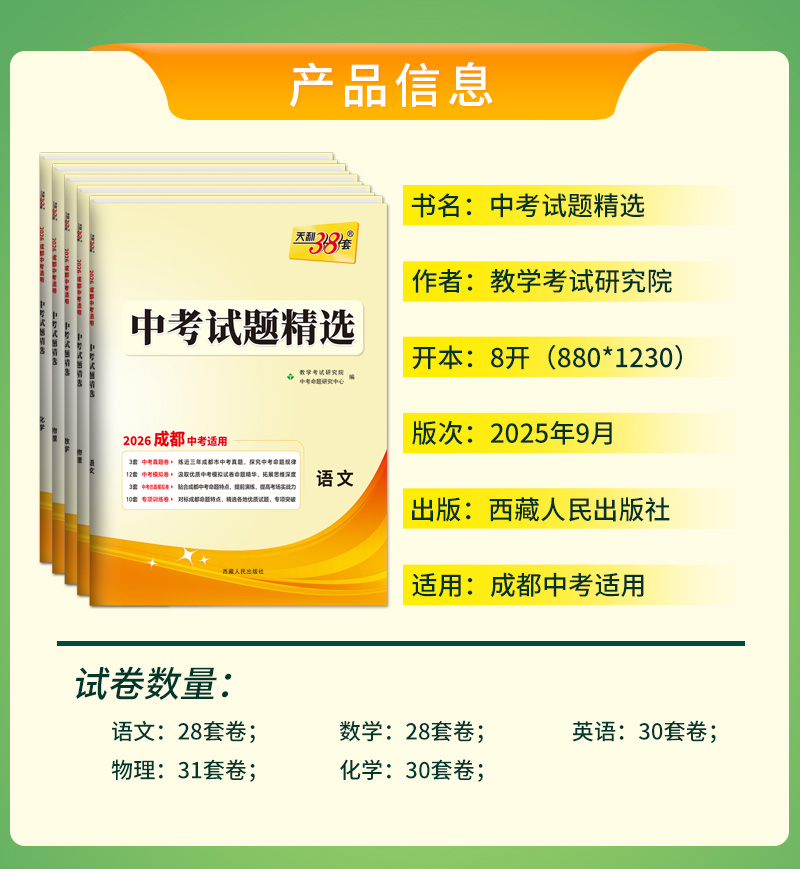 天利38套 2026成都中考试题精选 语文 数学 英语 物理 化学