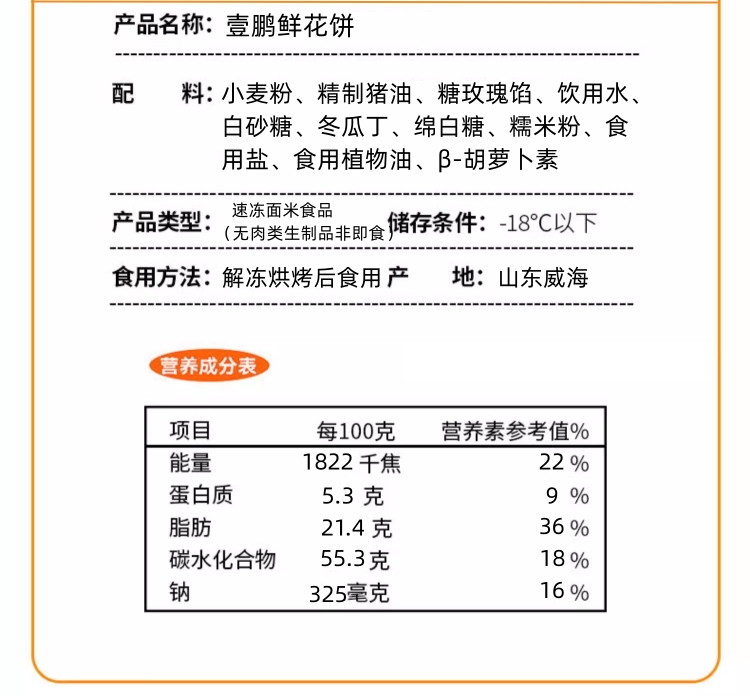 鹏程壹鹏鲜花饼 240个 冷冻半成品 12kg(50g*16个*15托) 冷冻鲜花酥饼 解冻烘烤后食用