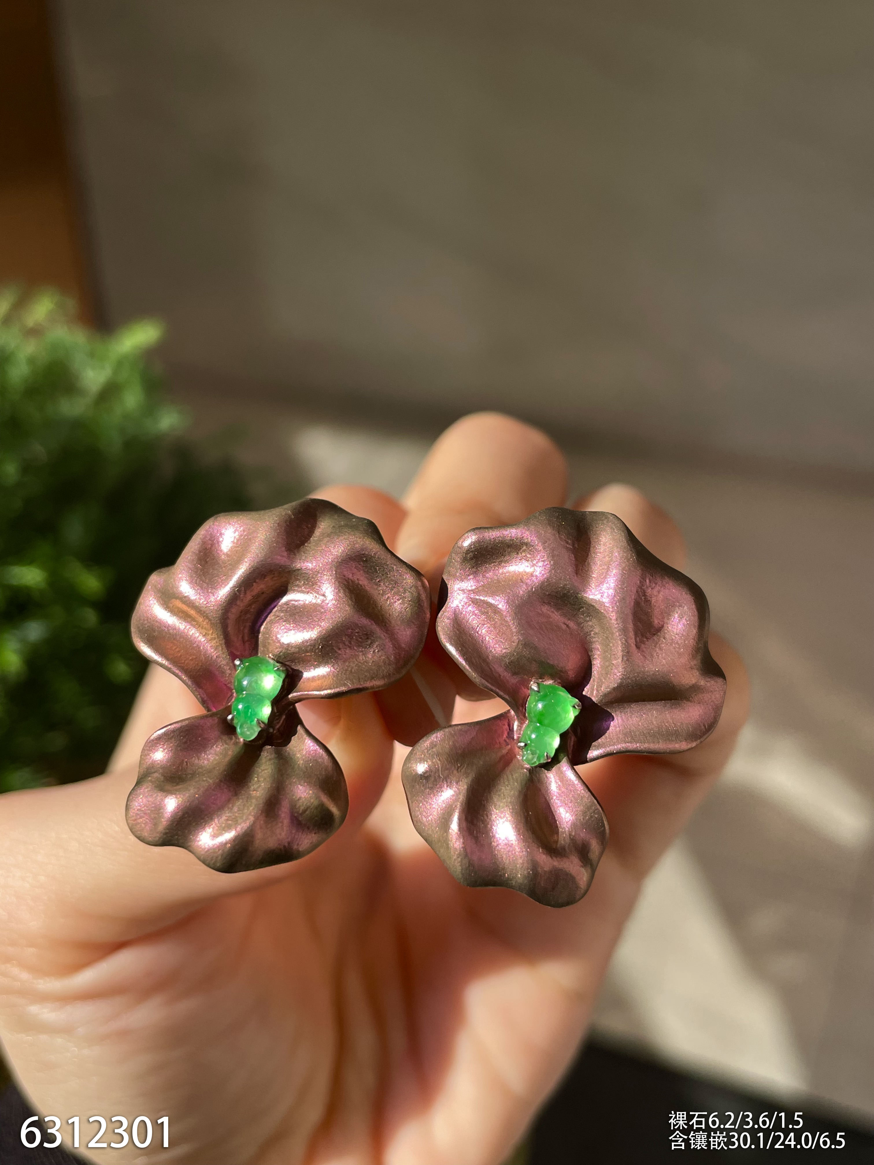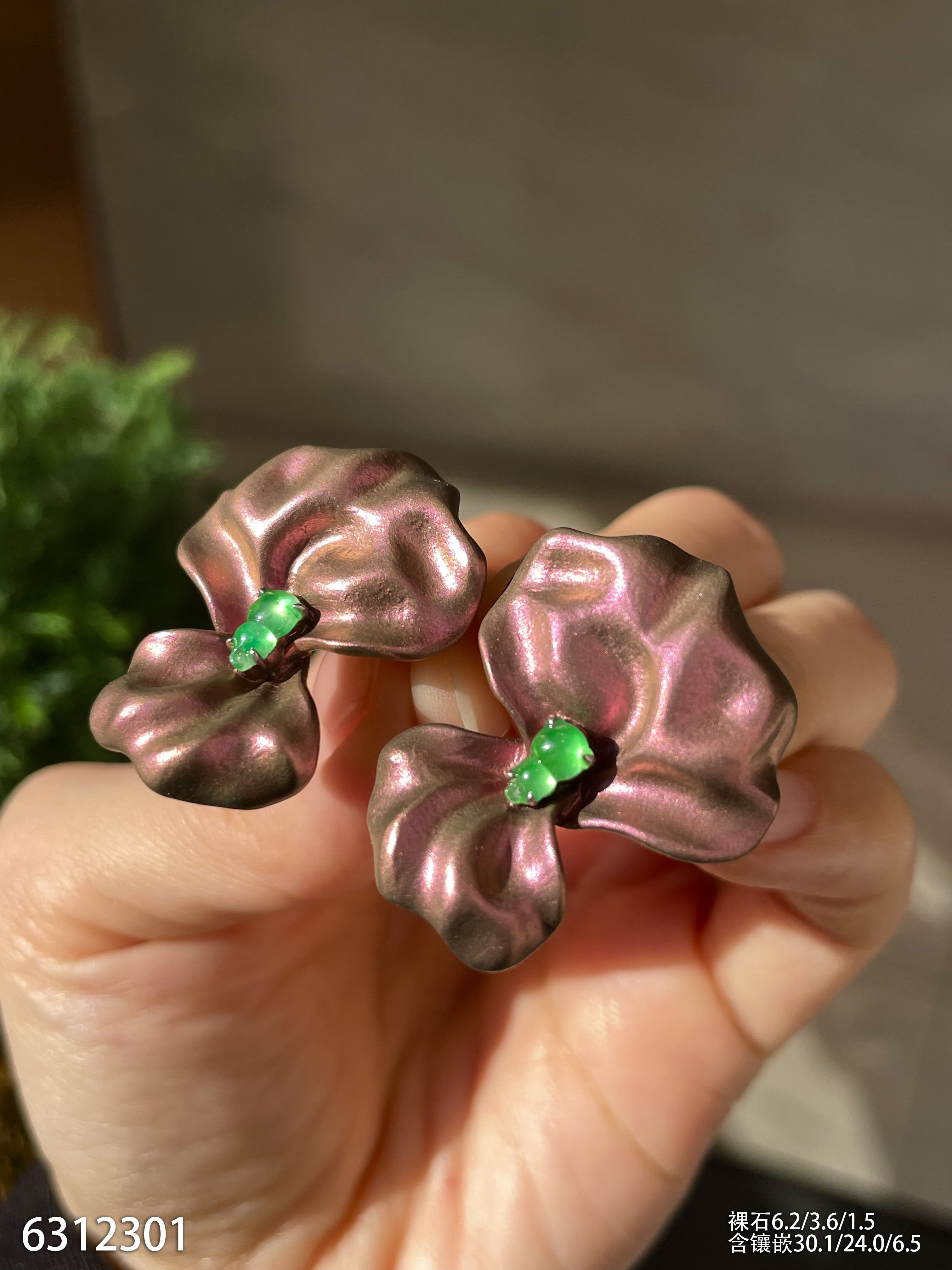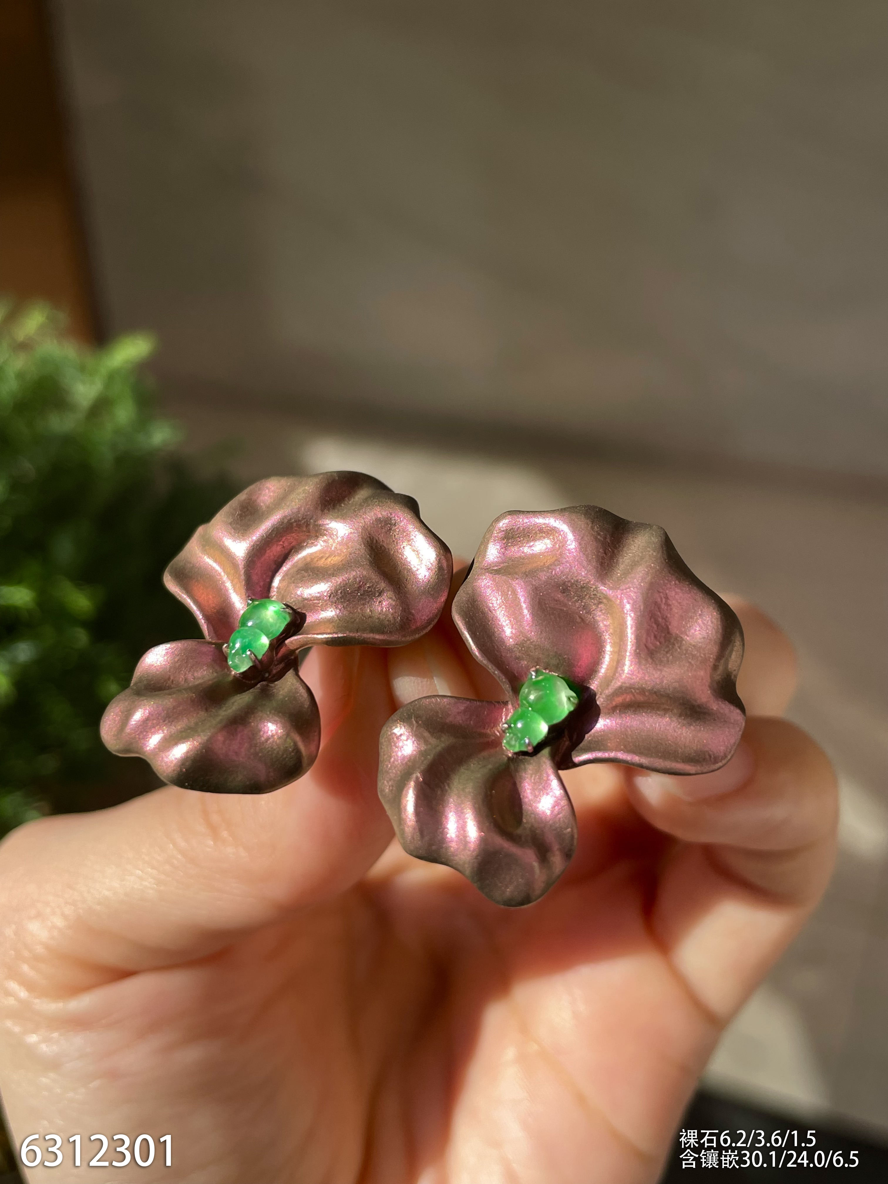 高冰种艳绿蛋面耳钉【6310503】具体价格微信咨询