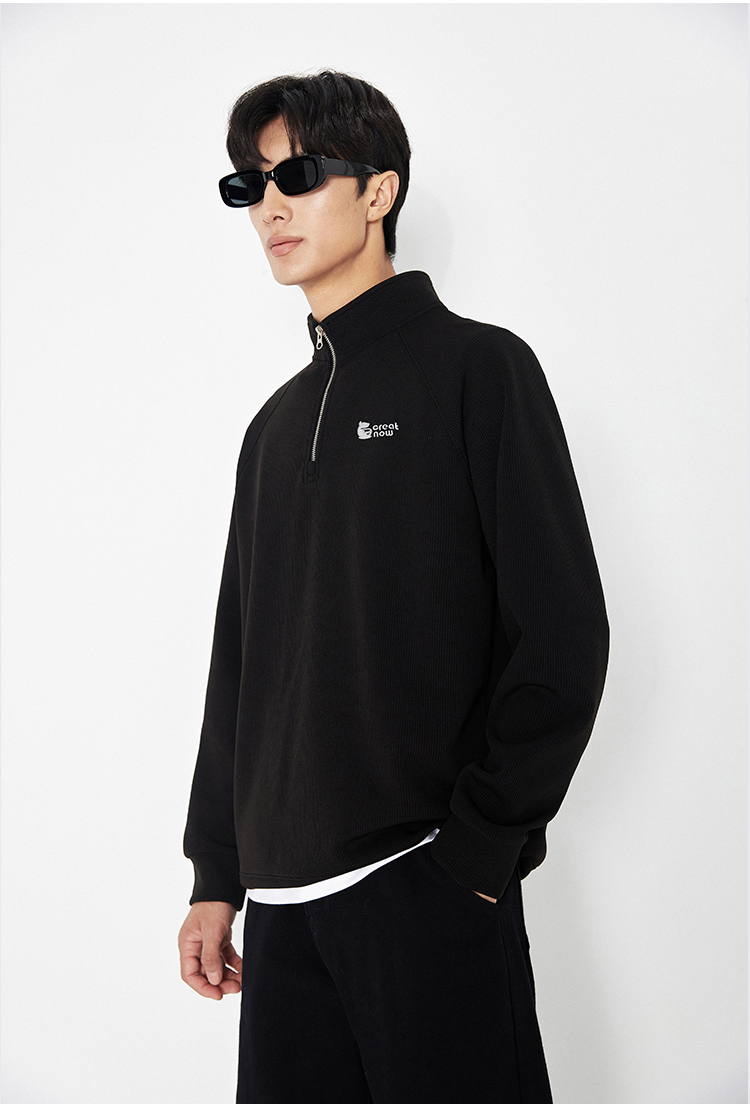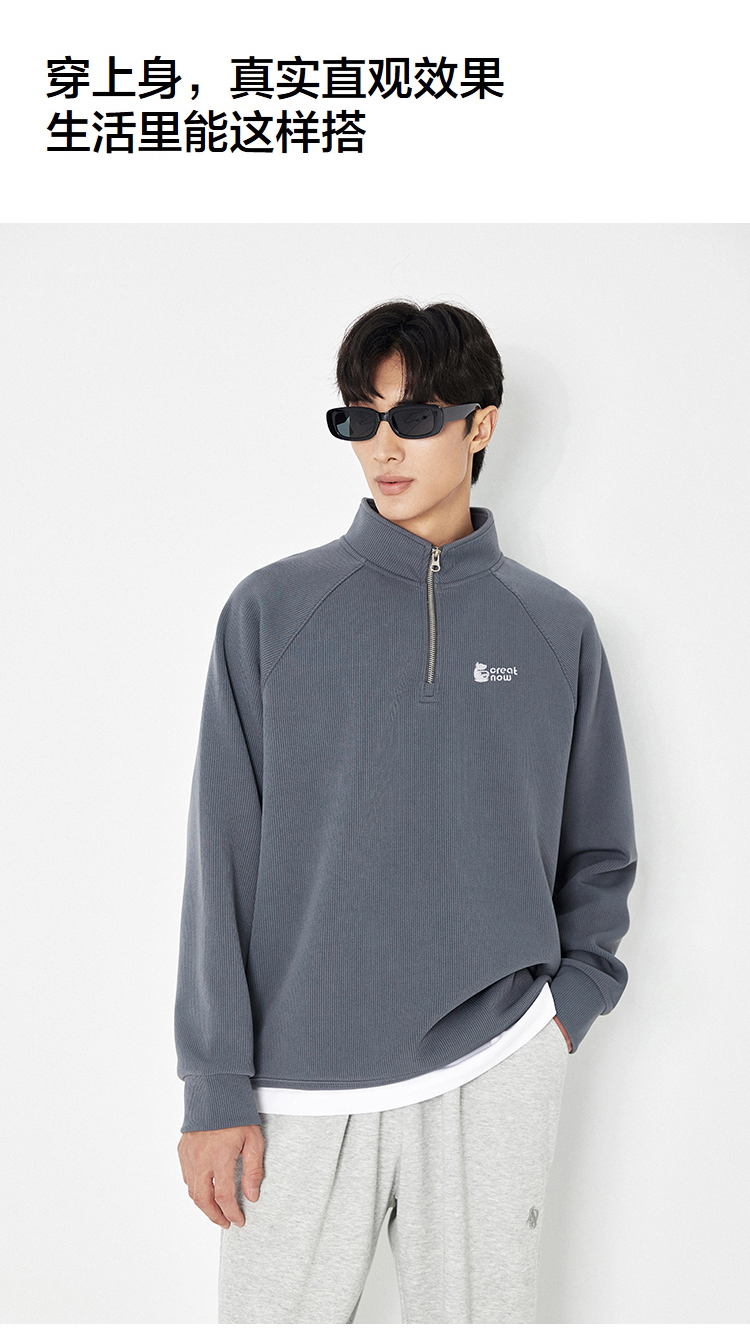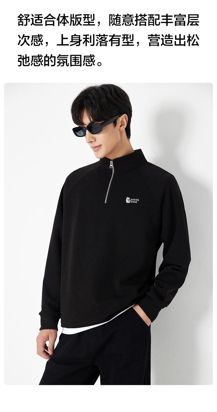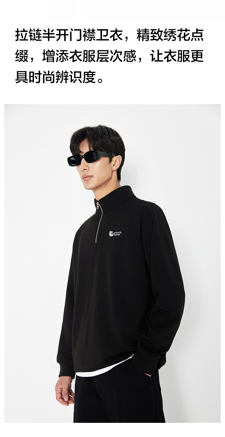 【个性绣花】男士立领卫衣25秋款简约百搭校园通勤打底衫上衣K&C