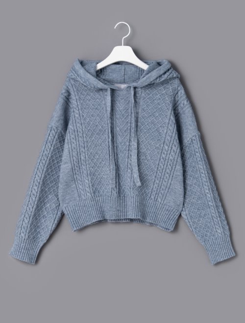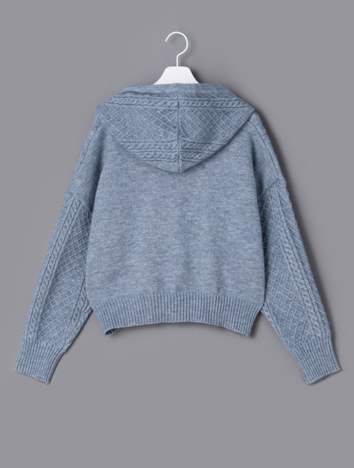 21SS 天蓝色电缆设置连帽针织衫JPY带授权招加盟代理
